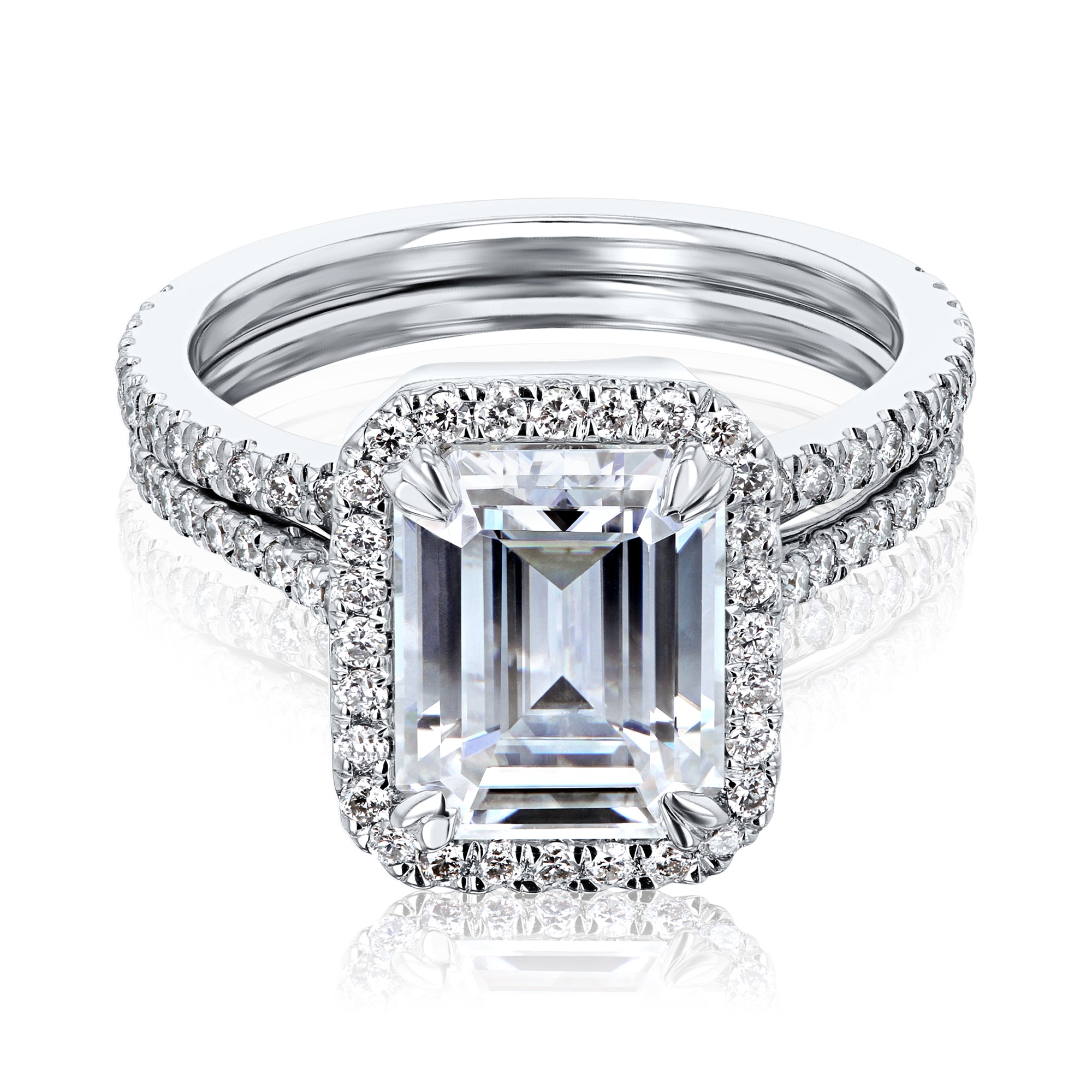 2.45 Carat Moissanite Emerald Original Bridal Set