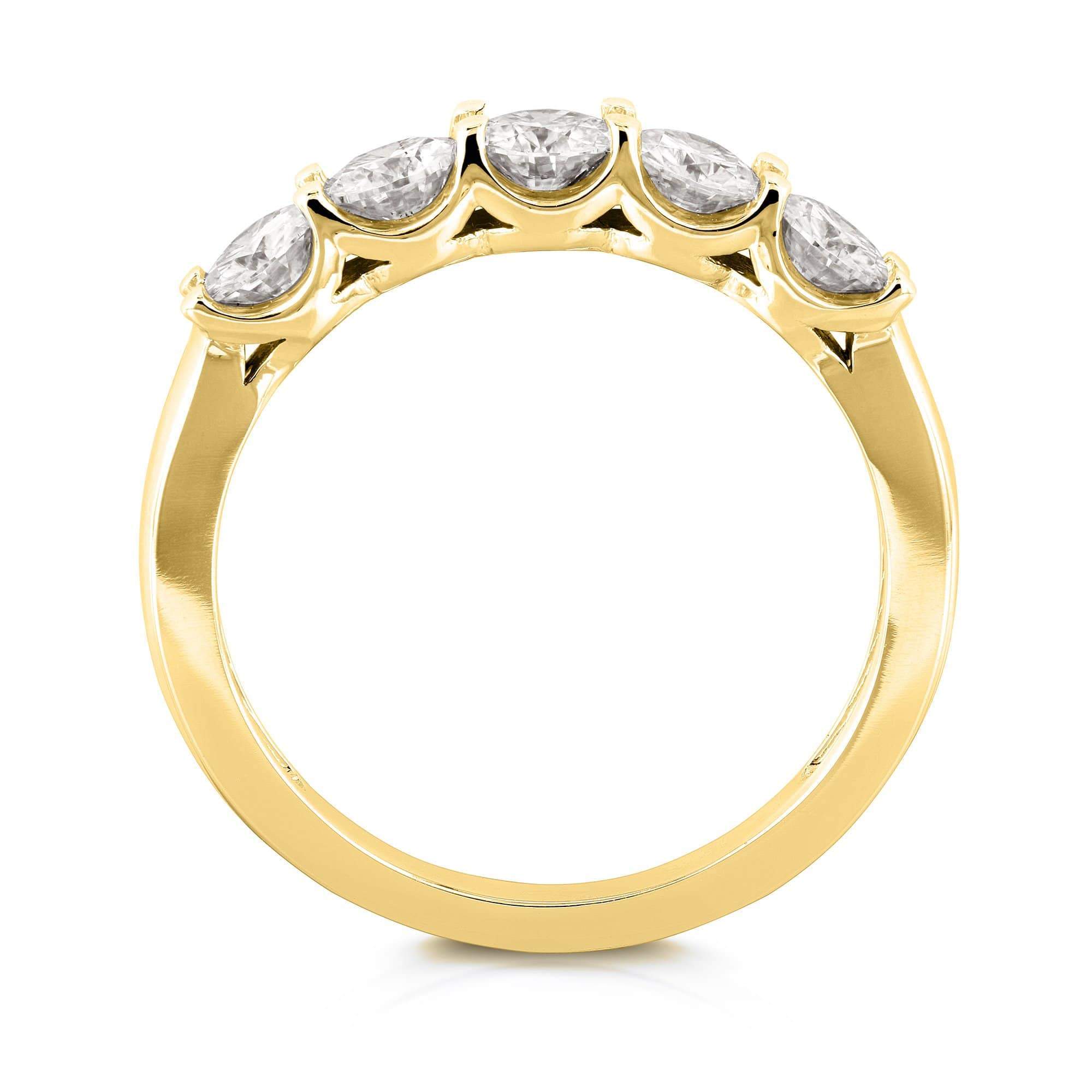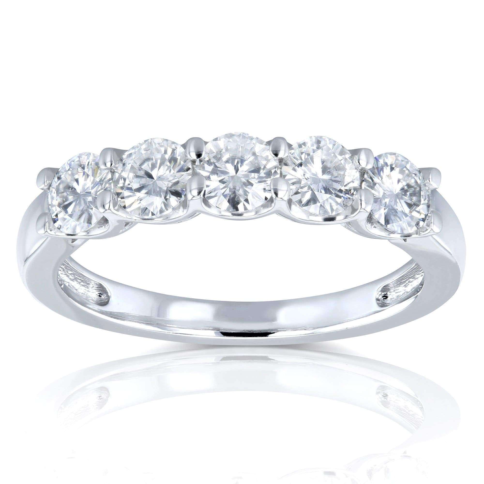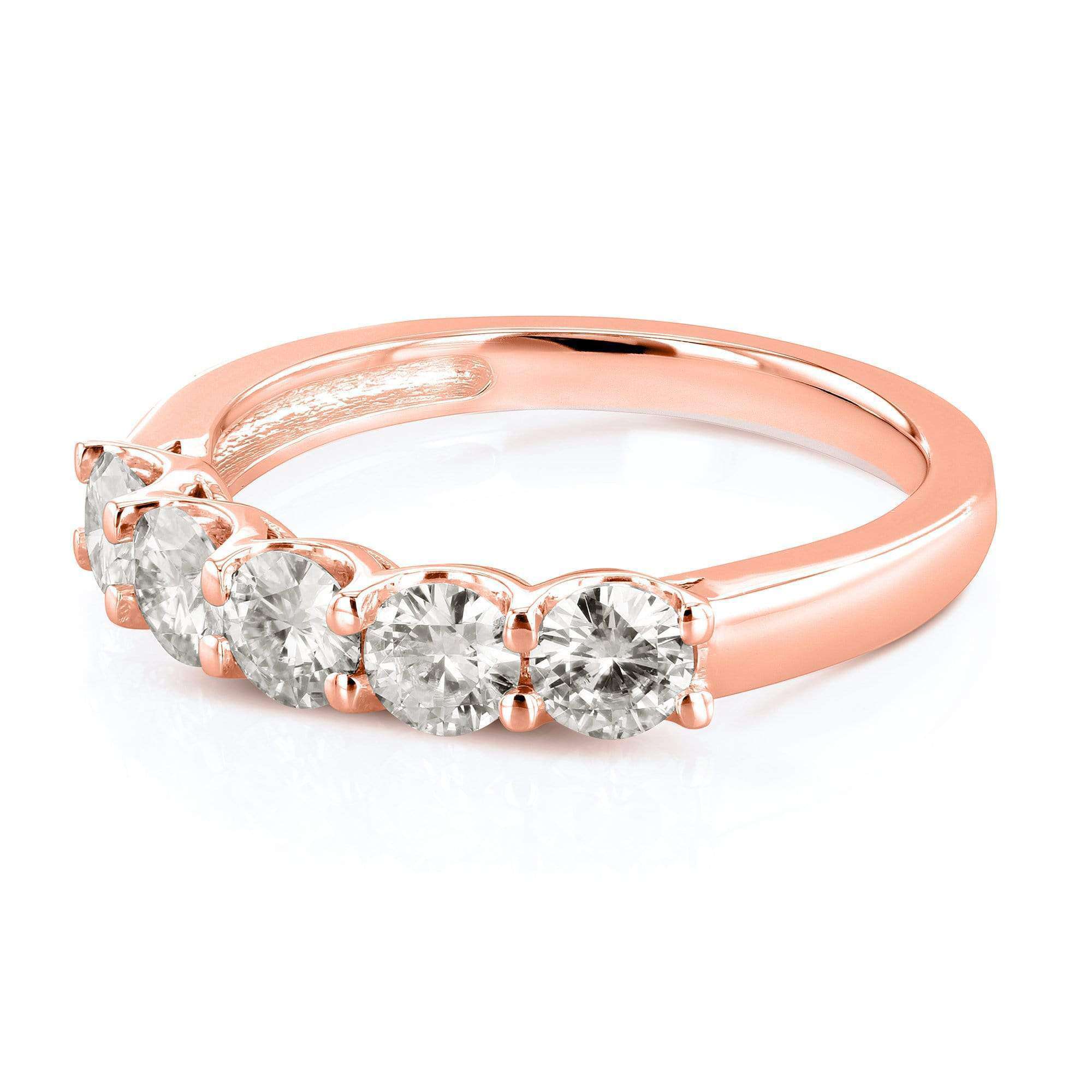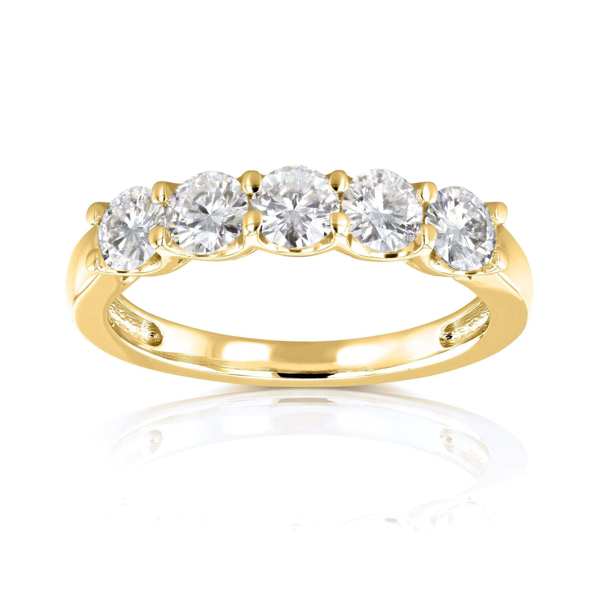Five Stone 4/5 Carat TGW Round Brilliant Near Colorless Moissanite Bridal Wedding Band in 14k Gold