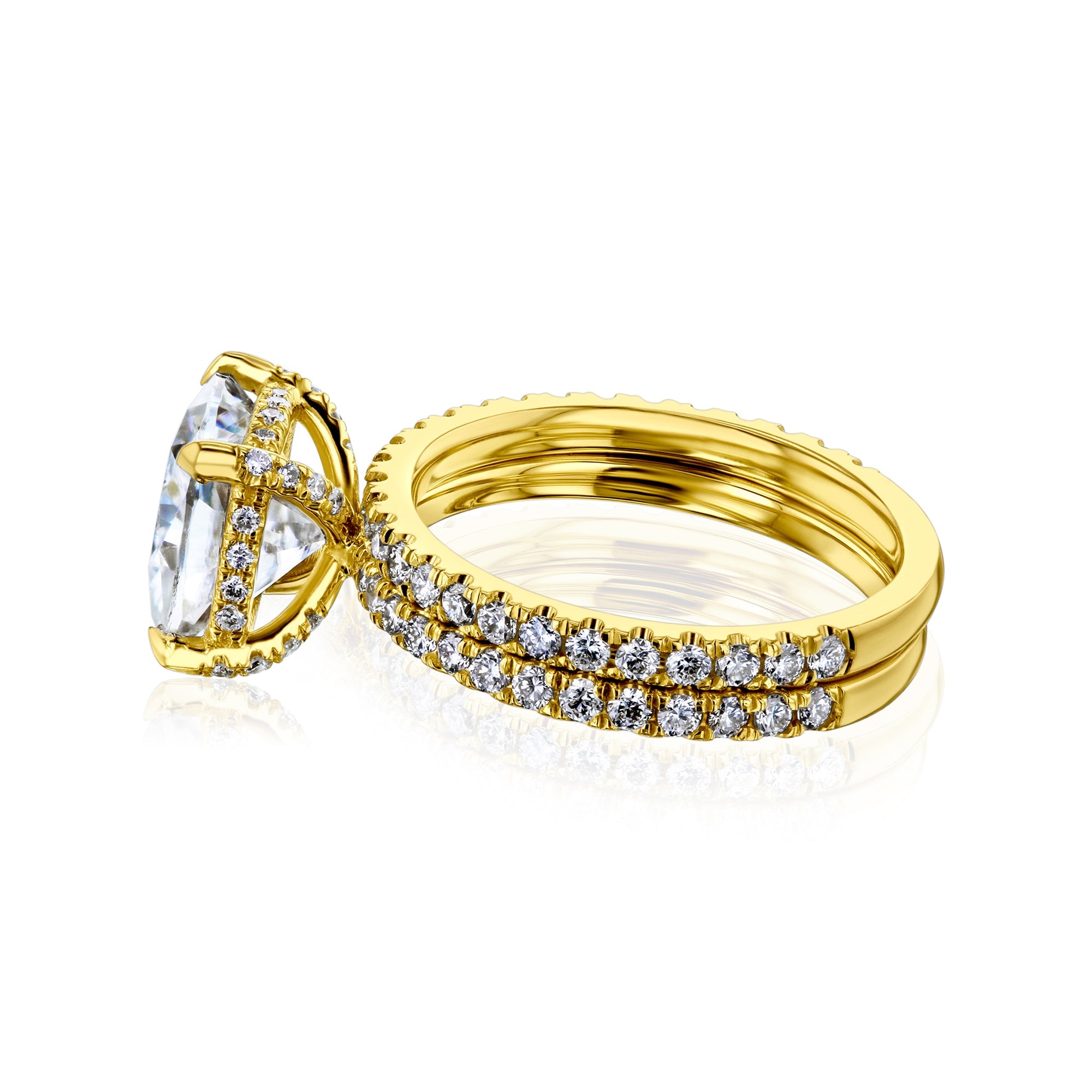Ceri 8.5x8.5 – Cushion Moissanite with Lab-Grown Diamond Hidden Wrap Halo and Pavé Bridal Set