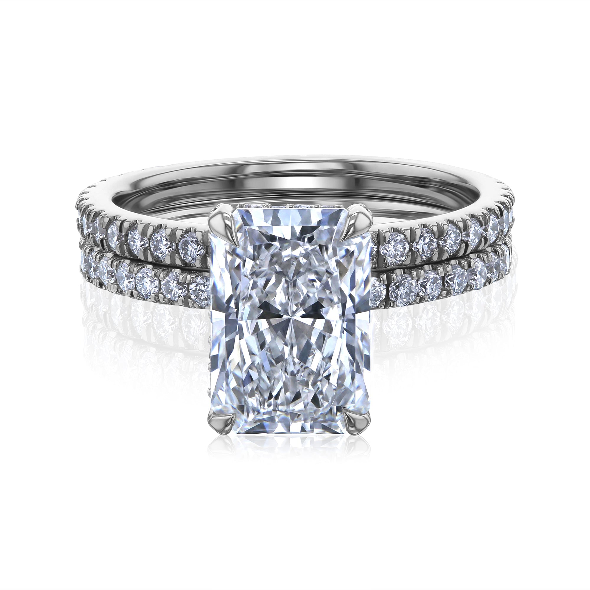 All-Diamond Lab-Grown Radiant Hidden Wrap Halo and Pavé Engagement Ring and Wedding Band 2-Piece Set