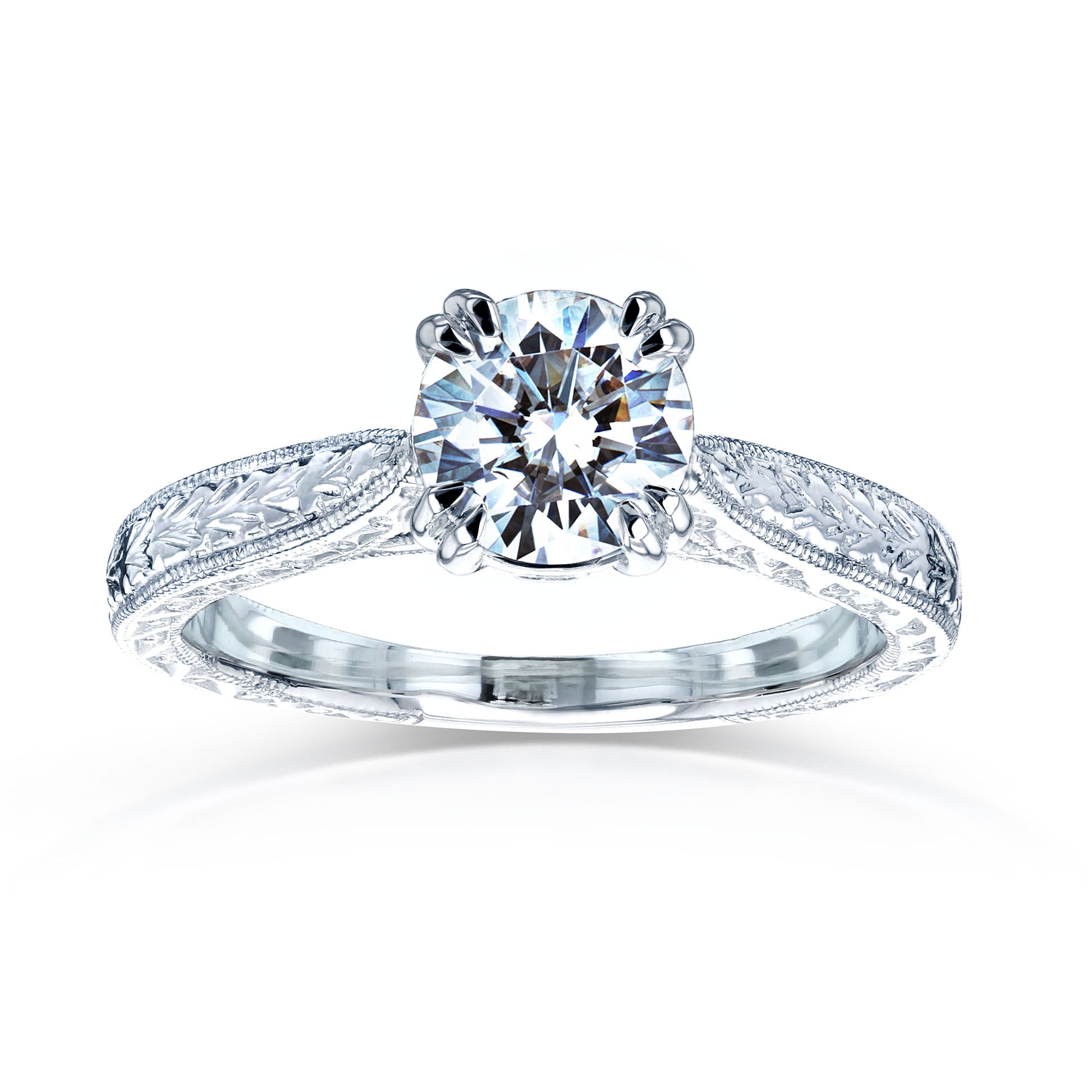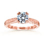 Antique Style 1 Carat Moissanite and Diamond Accented Etched Engagement Ring in 14k Gold