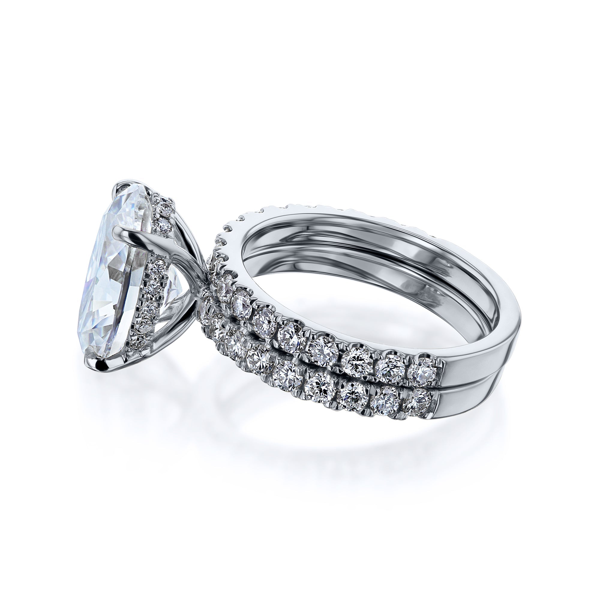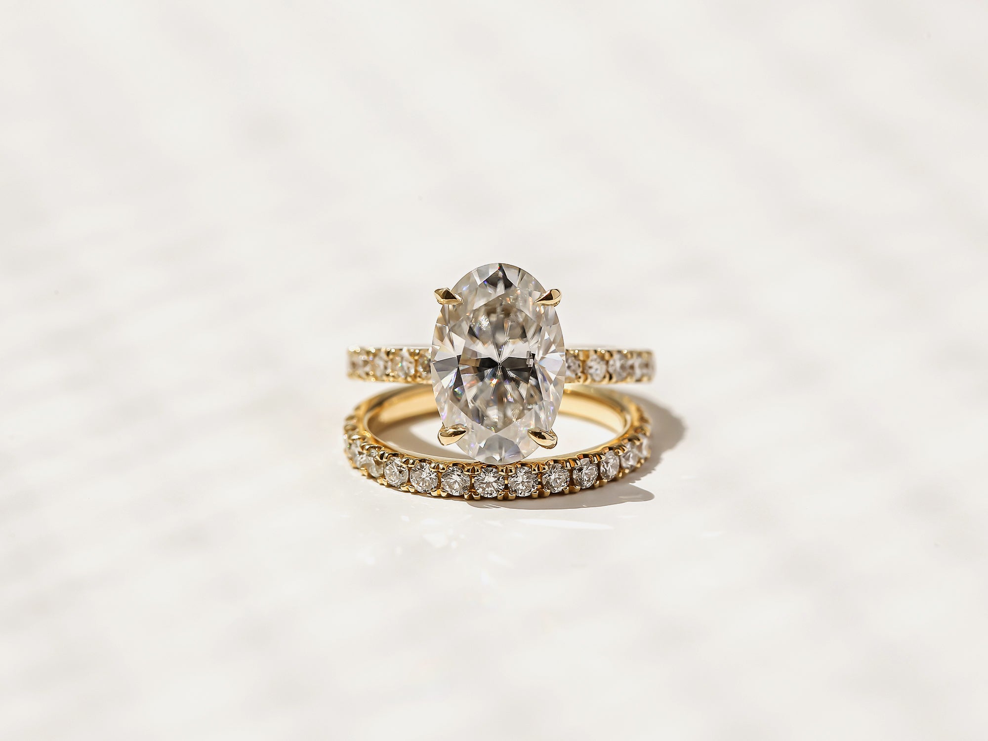 All-Diamond Lab-Grown Oval Halo Engagement Ring & Wedding Band