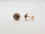 Two 1.16 carat pointed rose-cut black diamonds are set on the centers of these stud earrings. They are held within a circular bezel as well as 3 securing prongs. Surrounding the black diamonds are halos of pave-set white diamonds over 14k rose gold.