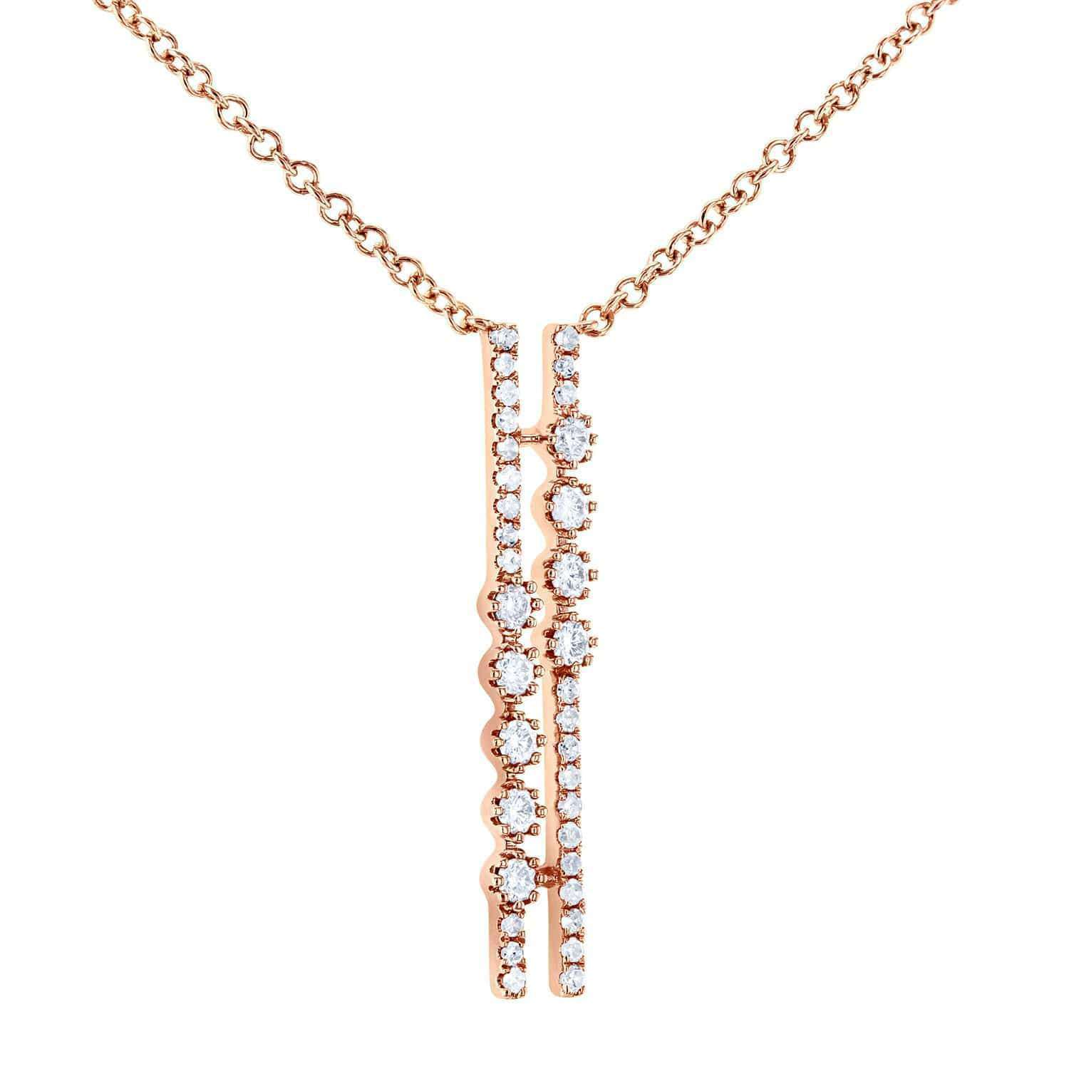 Natural white diamonds decorate the parallel gold pillars across this 10-karat gold necklace. The chain is eighteen inches long and comes affixed to the pendant.