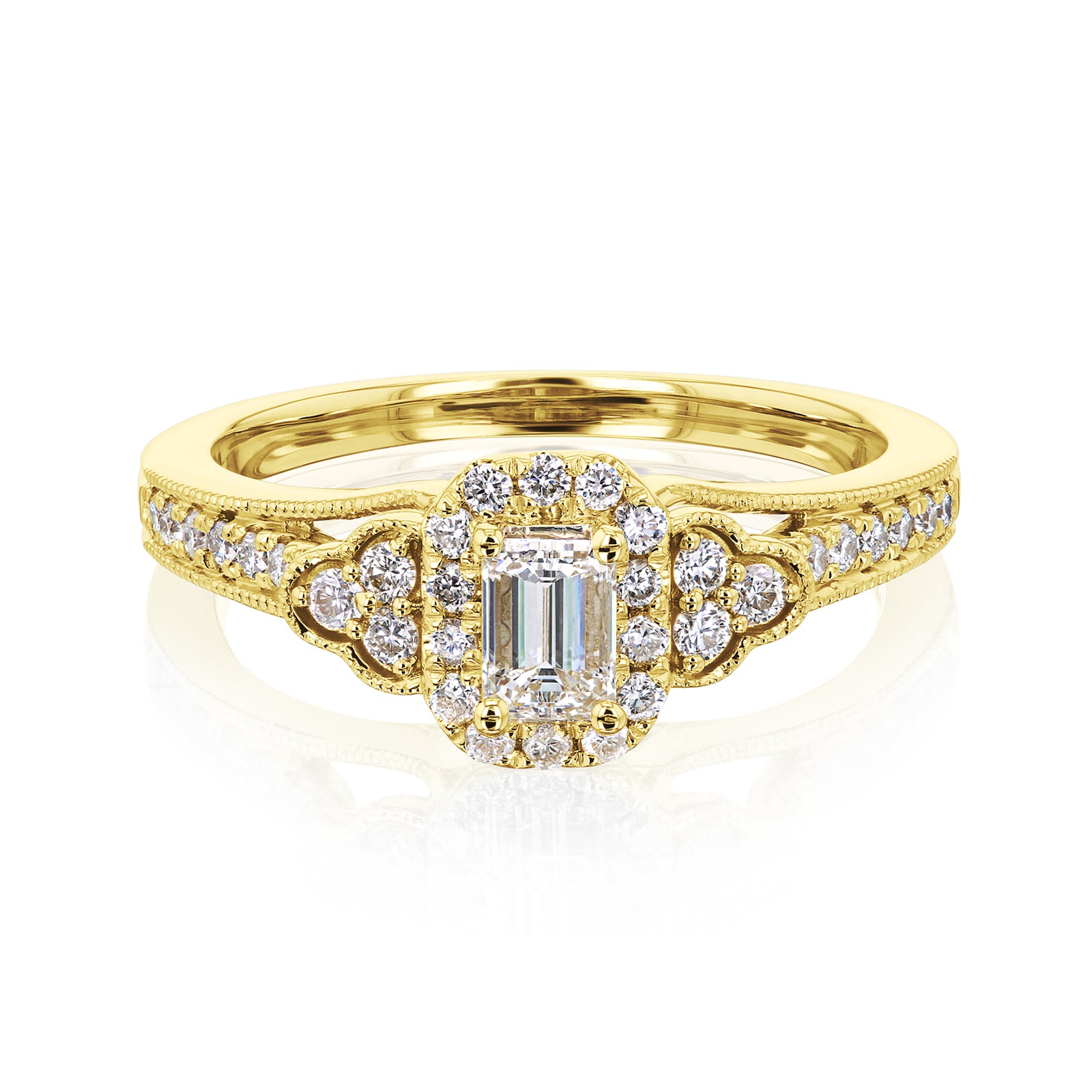 • Emerald-cut Diamond Center (1/3ct)