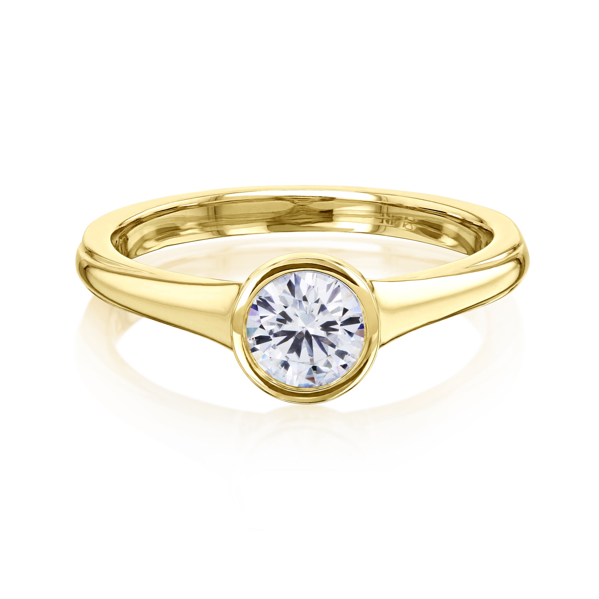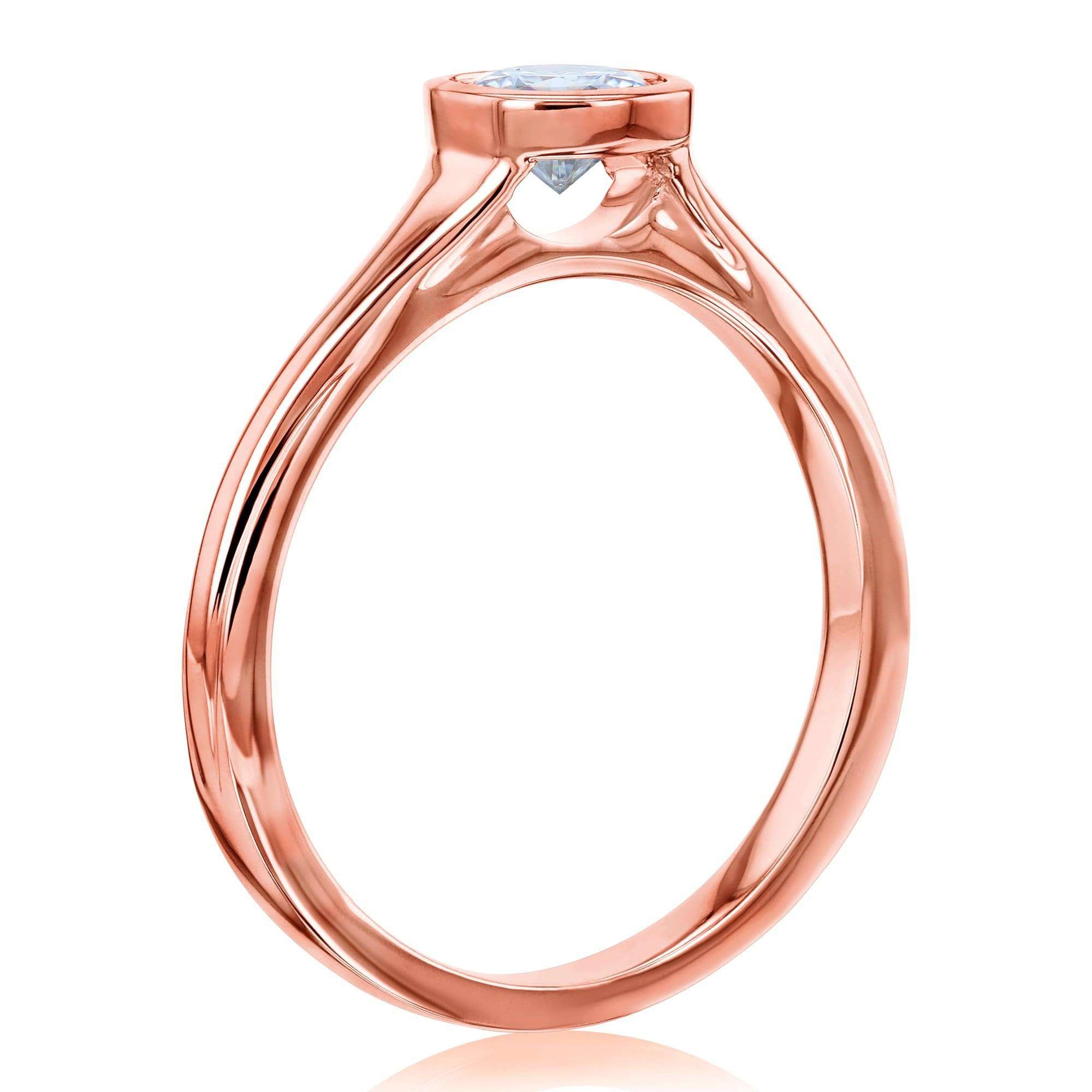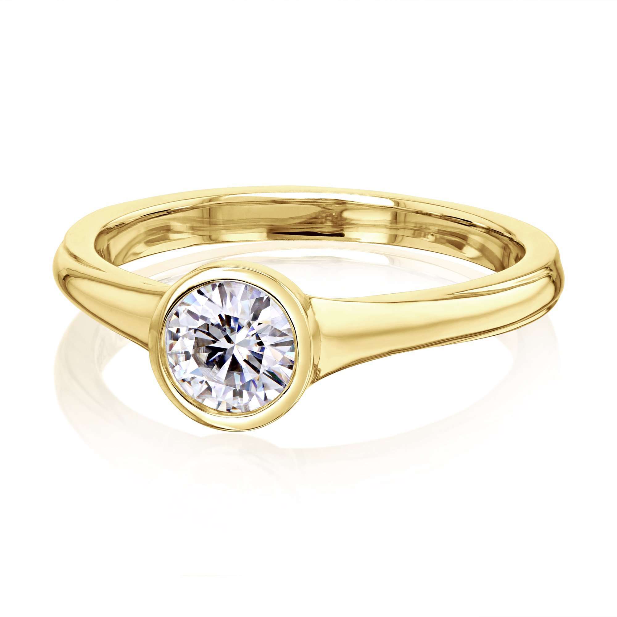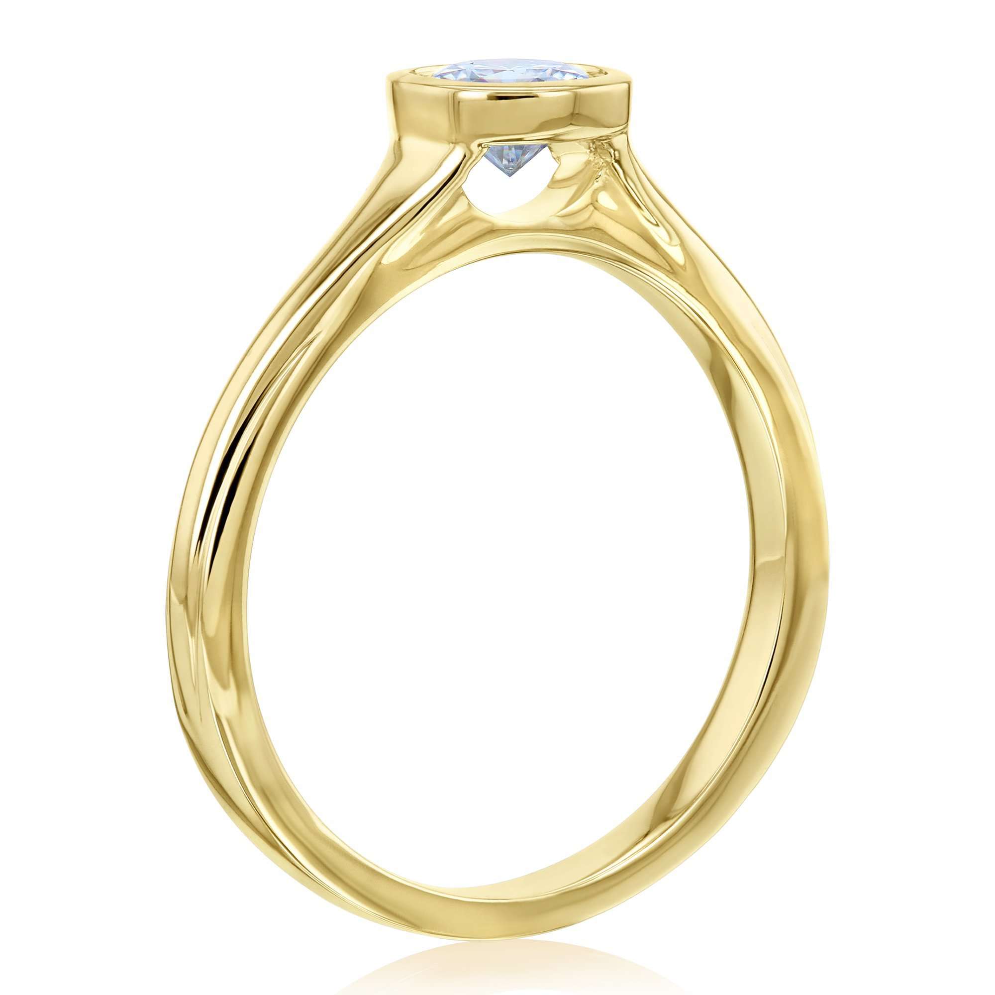 The snug bezel setting not only ensures your beautiful gemstone will never fall out, but also prevents any unwanted snagging on fabrics from any possible prongs. Standing at 5 mm off the finger, the low setting adds to the practicality of this refined engagement, or promise, ring.