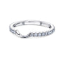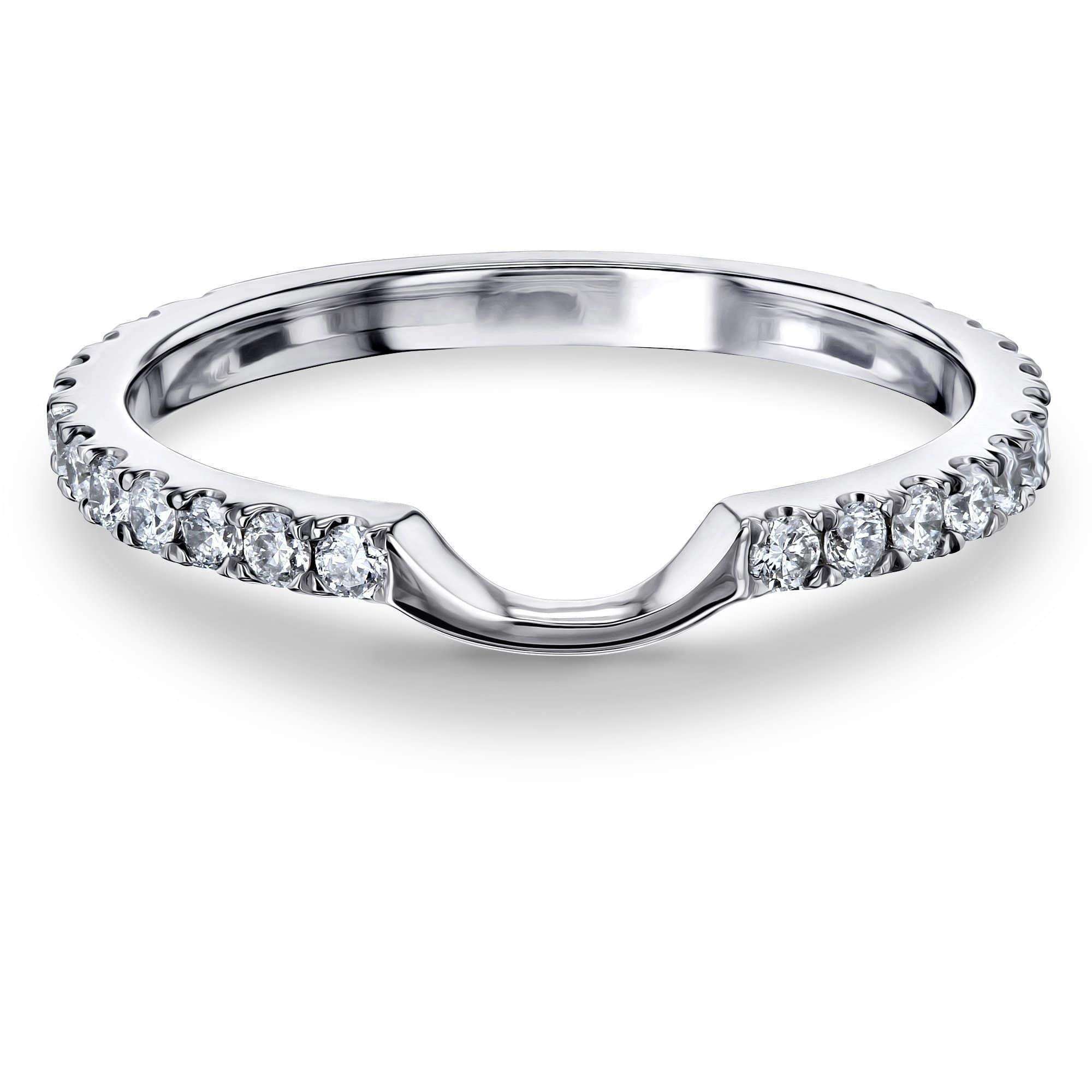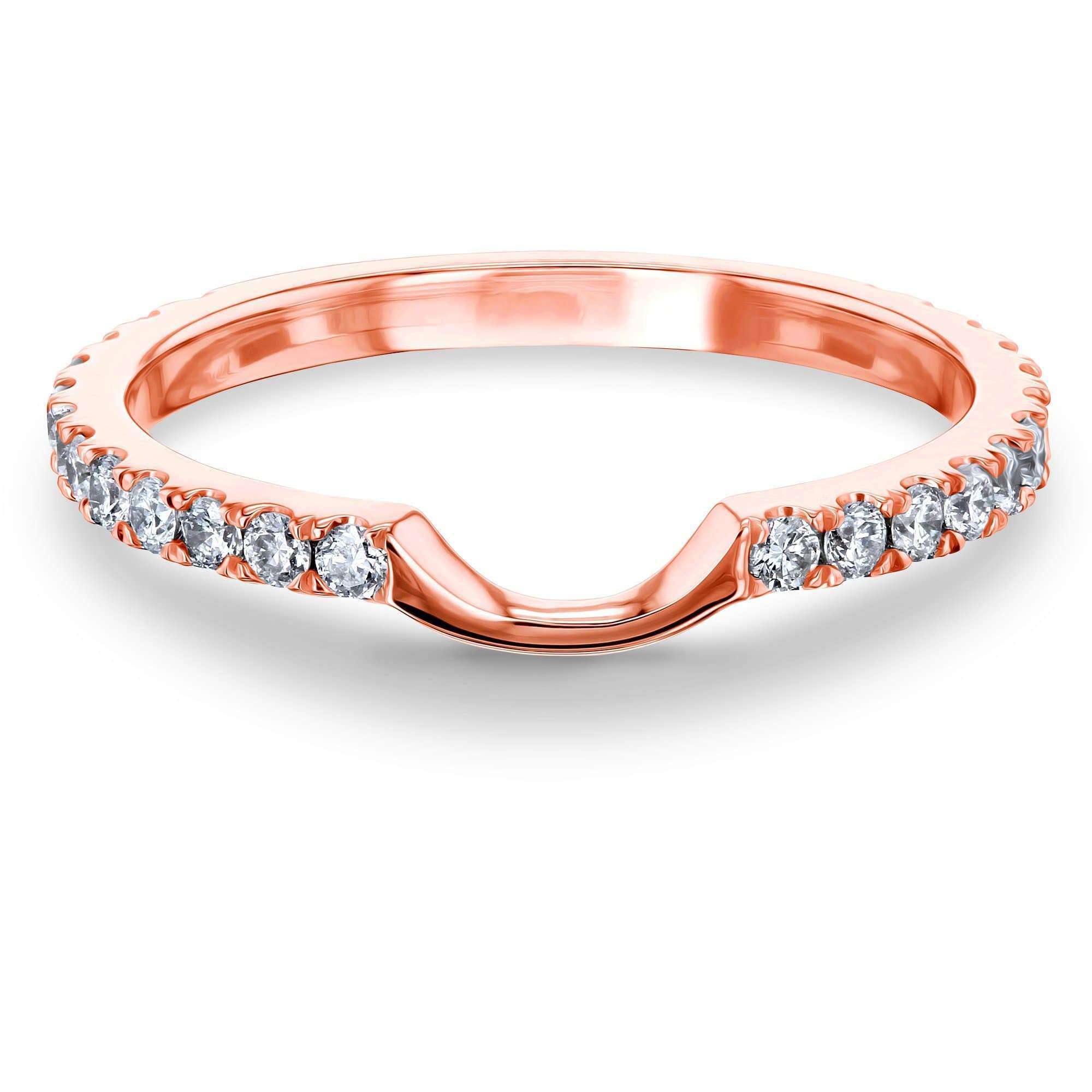 The diamond lined wedding band is designed to match only with specific Kobelli engagement rings with 62398 in the model number. The notched area reaches 5.4mm wide from corner to corner. It drops 1.75 mm deep into the groove. The curve situates underneath the center stone of the designated engagement ring allowing the diamond-lined band to pair flush against the engagement band.