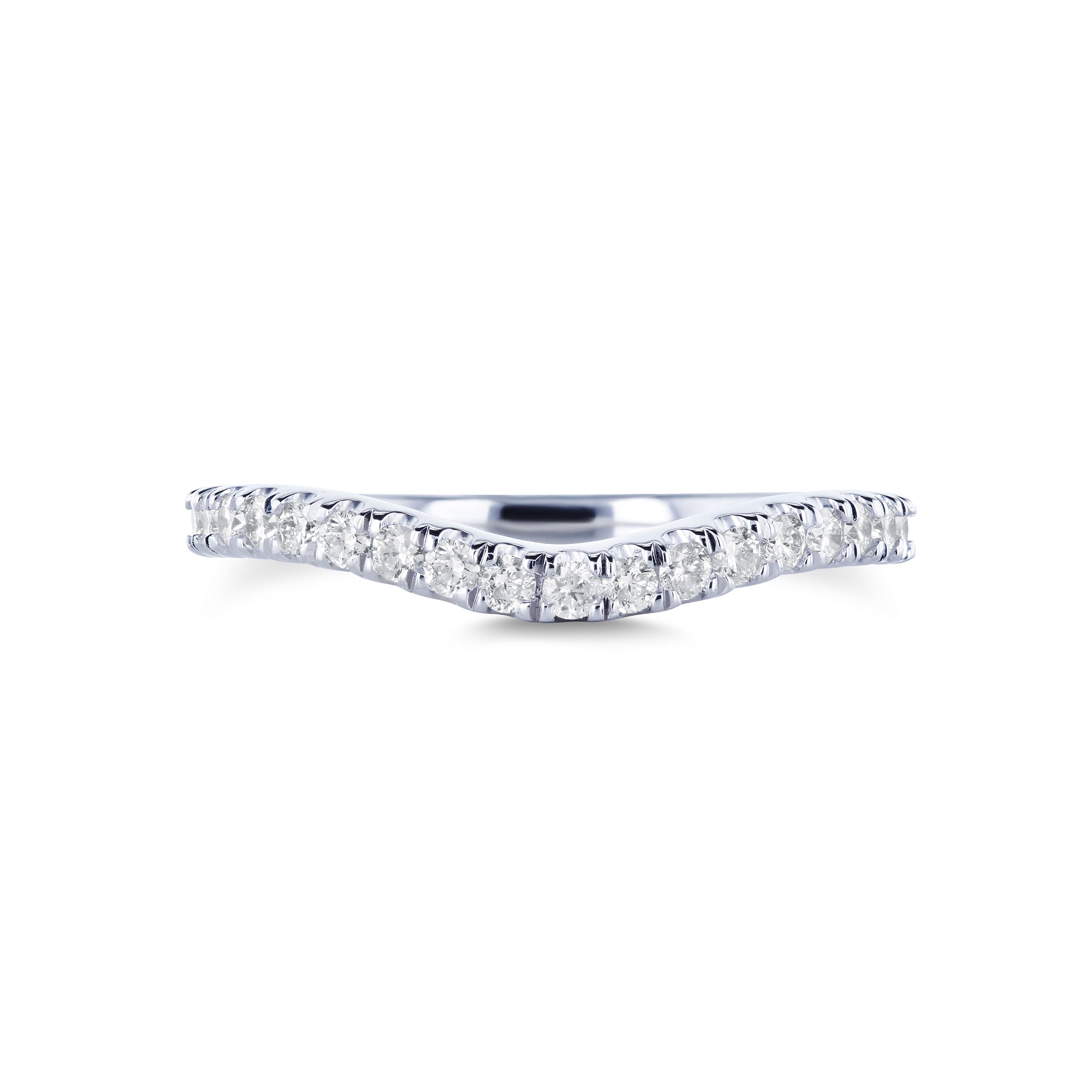 Shimmering lab-grown diamonds are set in a contoured gold band, designed to match with our Bold Cushion Halo Engagement Ring.