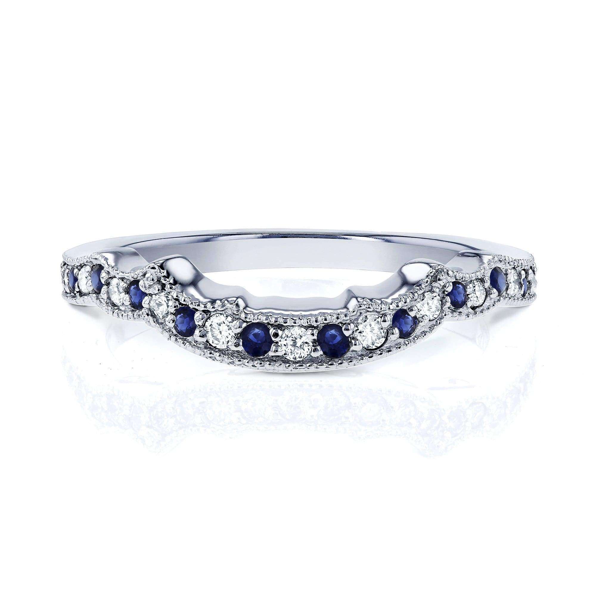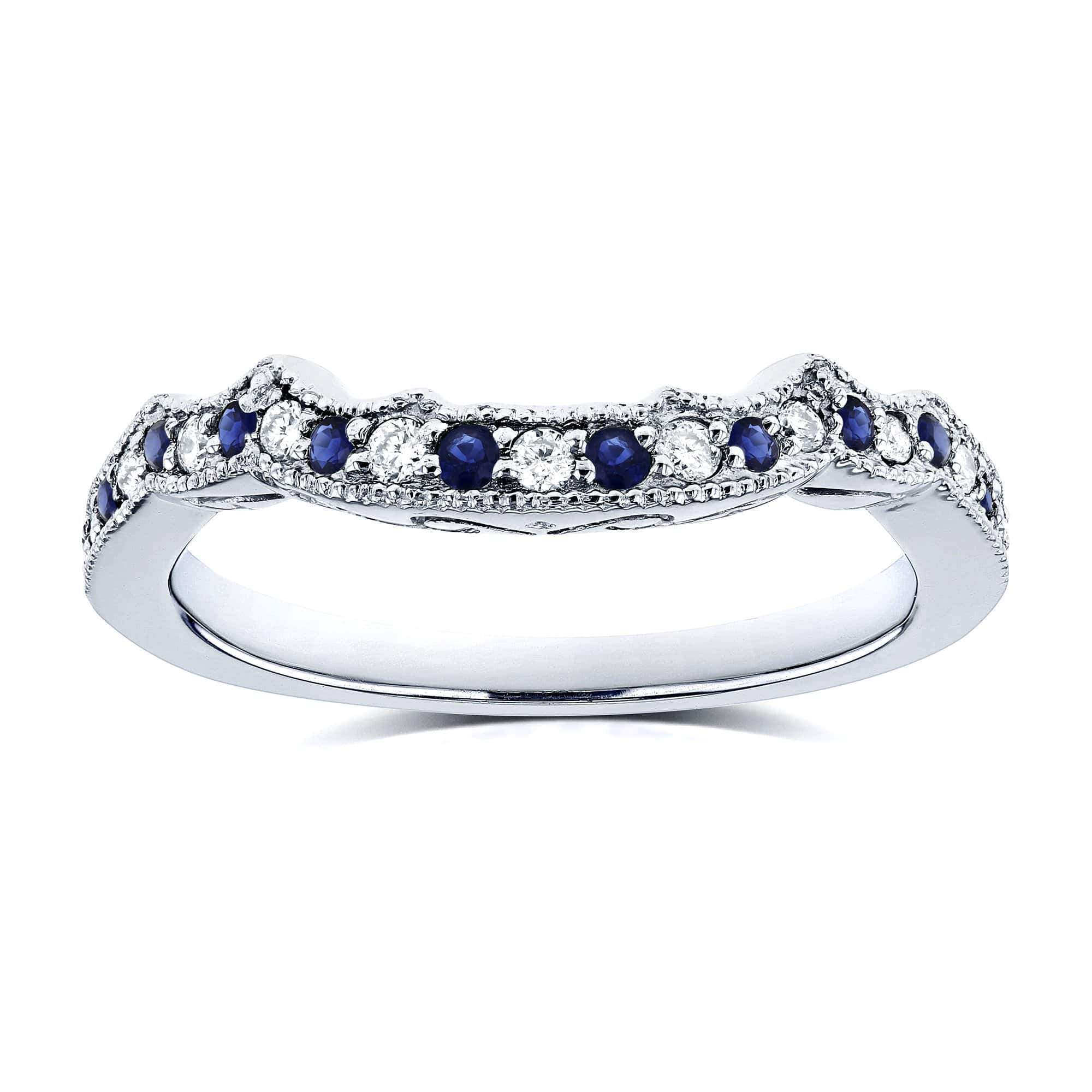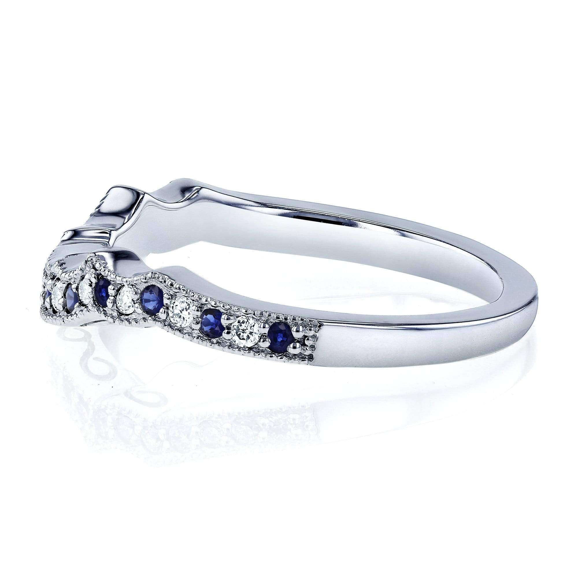 1/5ct TCW Sapphire and Diamond Contour Wedding Ring in 14k White Gold