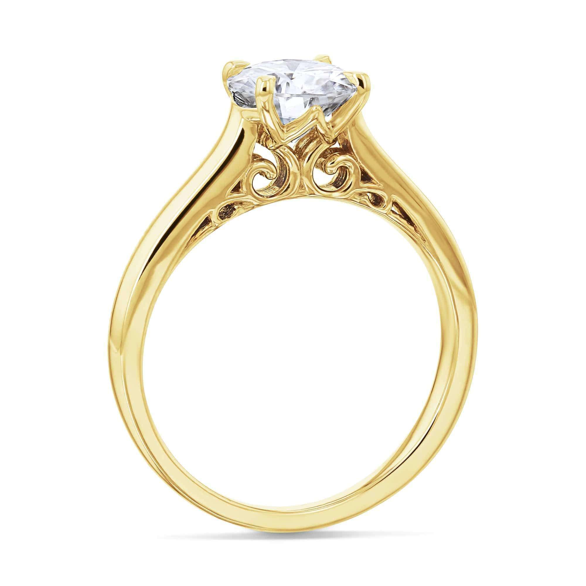 Decorative Volutes W-Head Prong Setting Solitaire Engagement Ring in 14k Gold