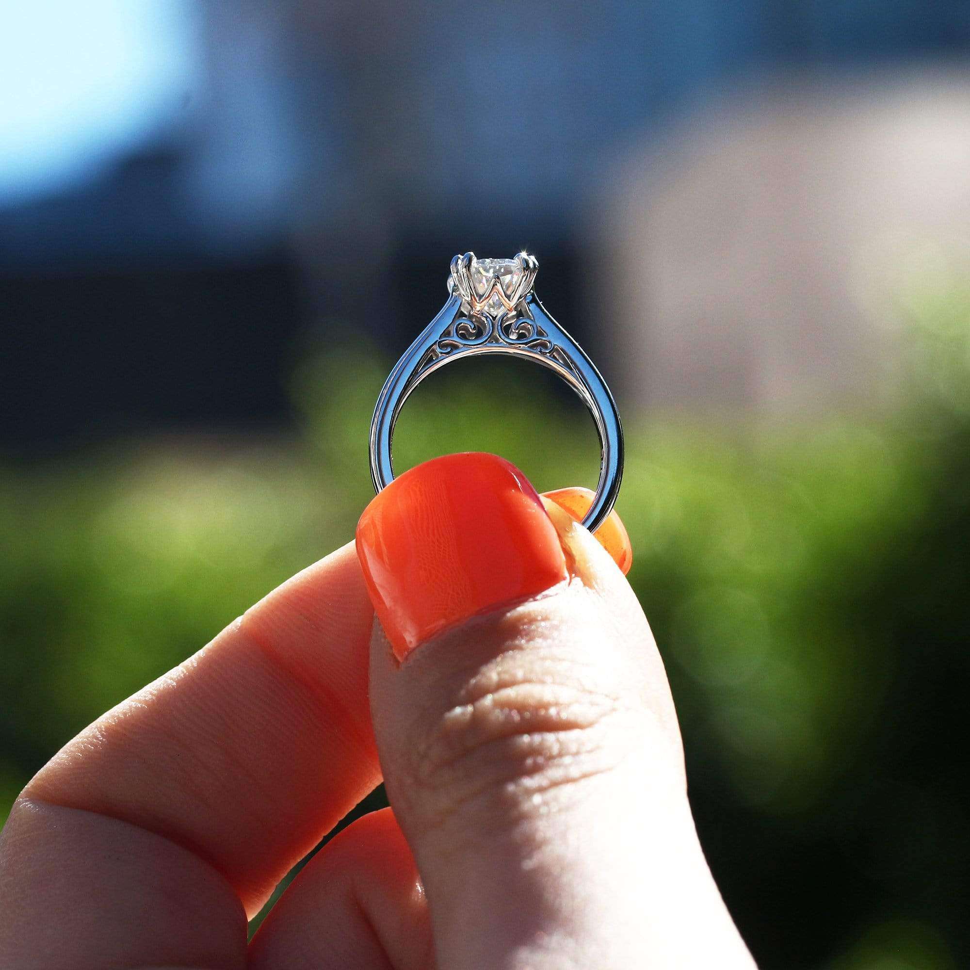 1 Carat Moissanite Solitaire Volutes Double Prong Ring