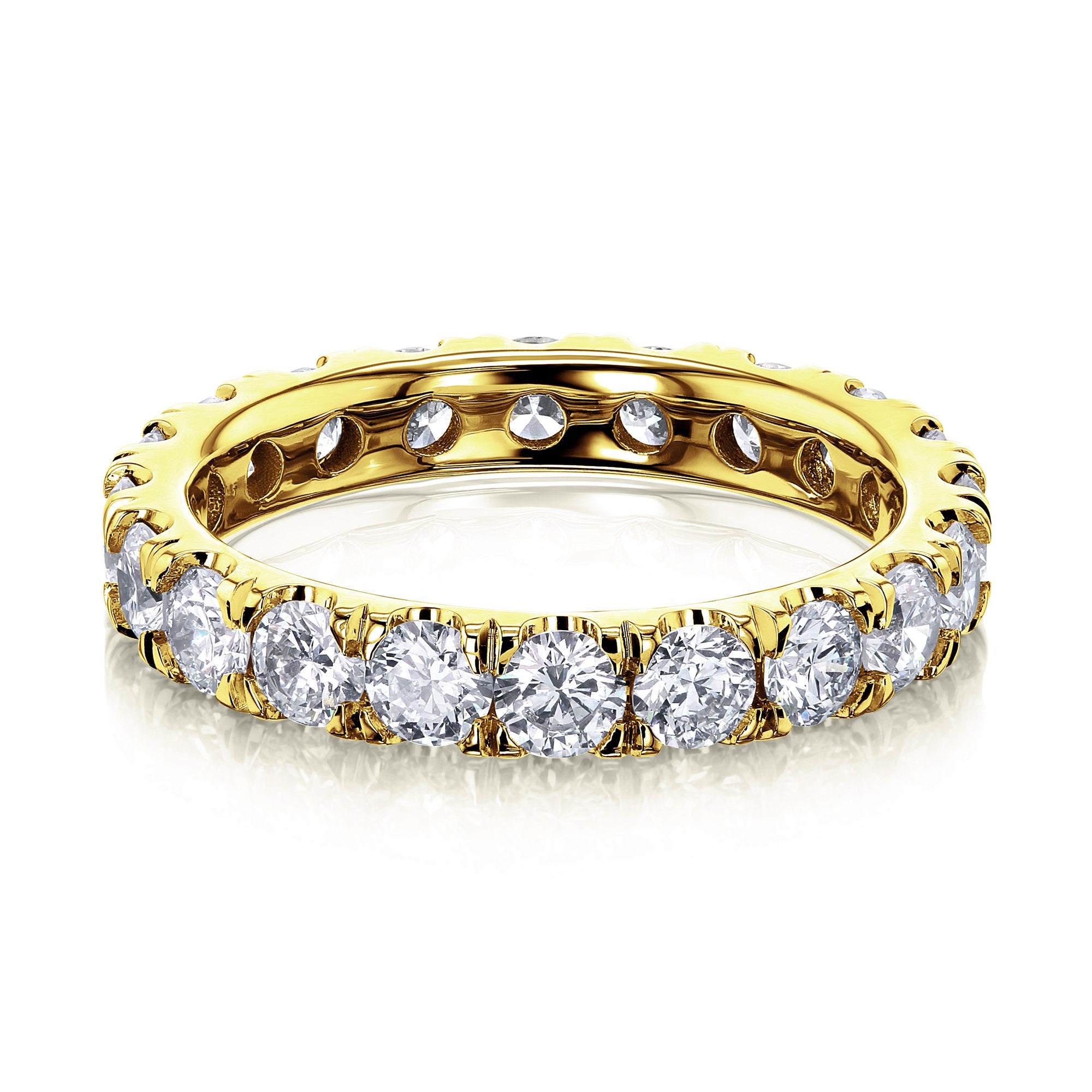 Lab grown diamonds encircle this solid gold band in u-split-prong settings for a glamorous sparkle that is out-shined by none.