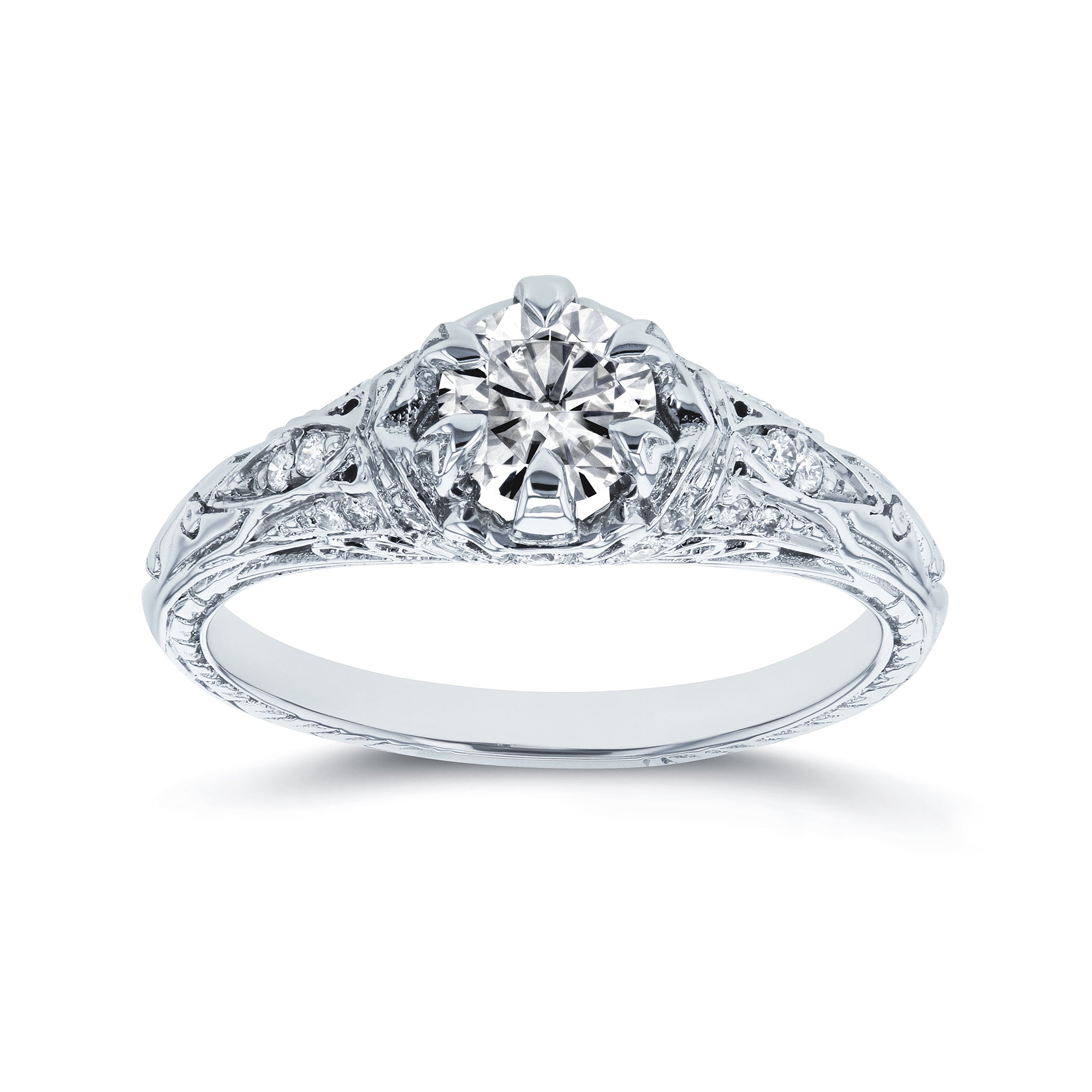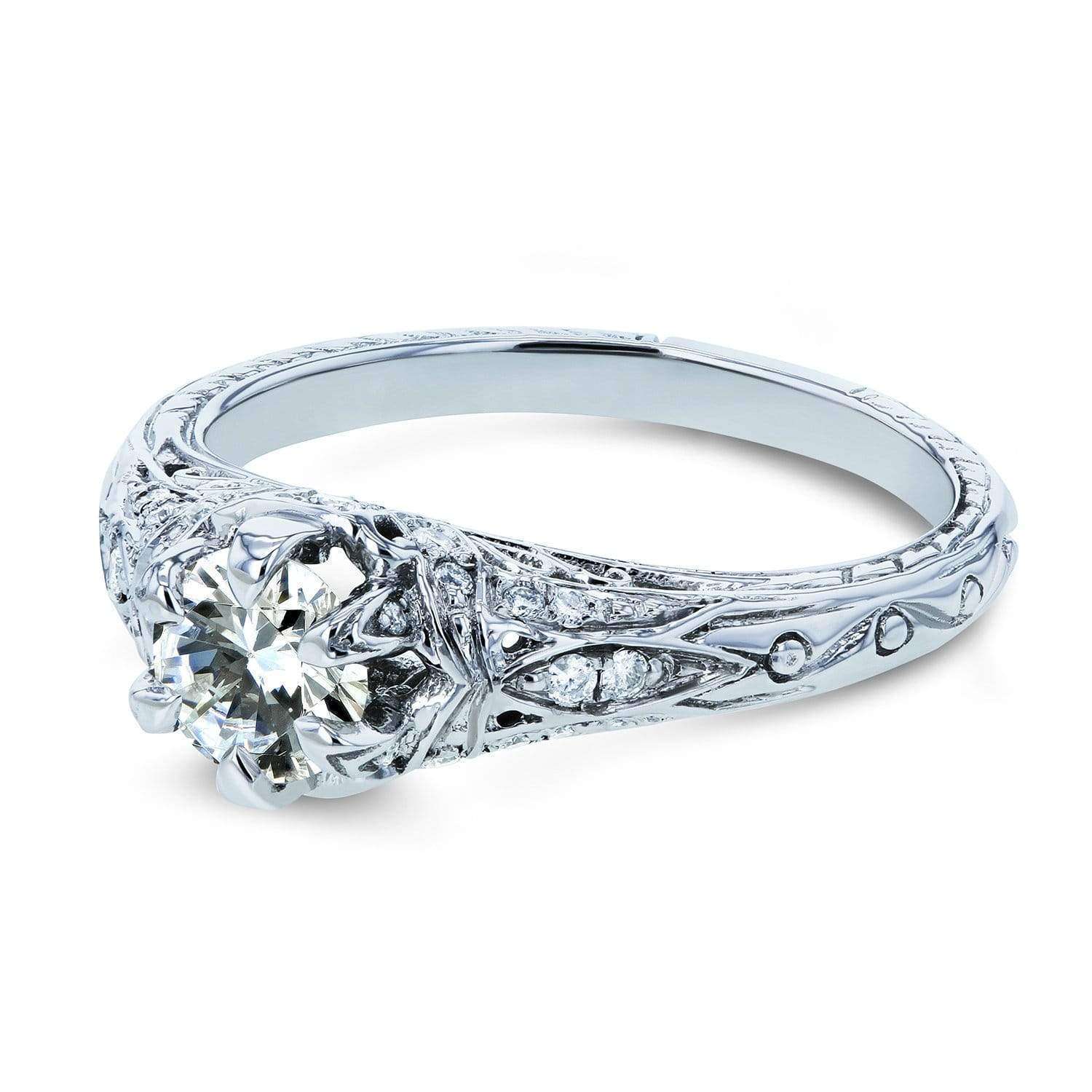 5/8ct.tw Moissanite and Diamond 6-Prong Ornate Antique Fashion Engagement Ring in 14k White Gold