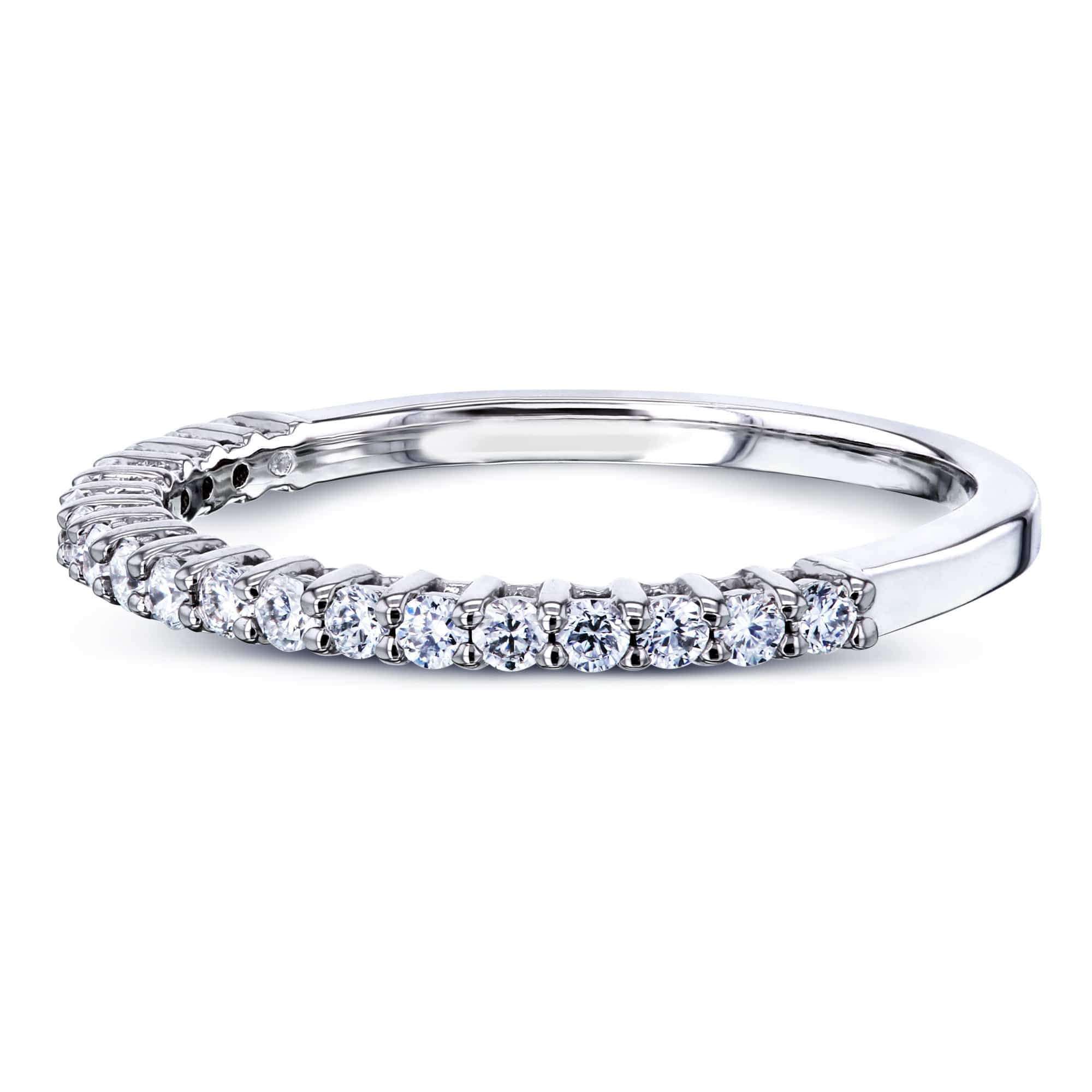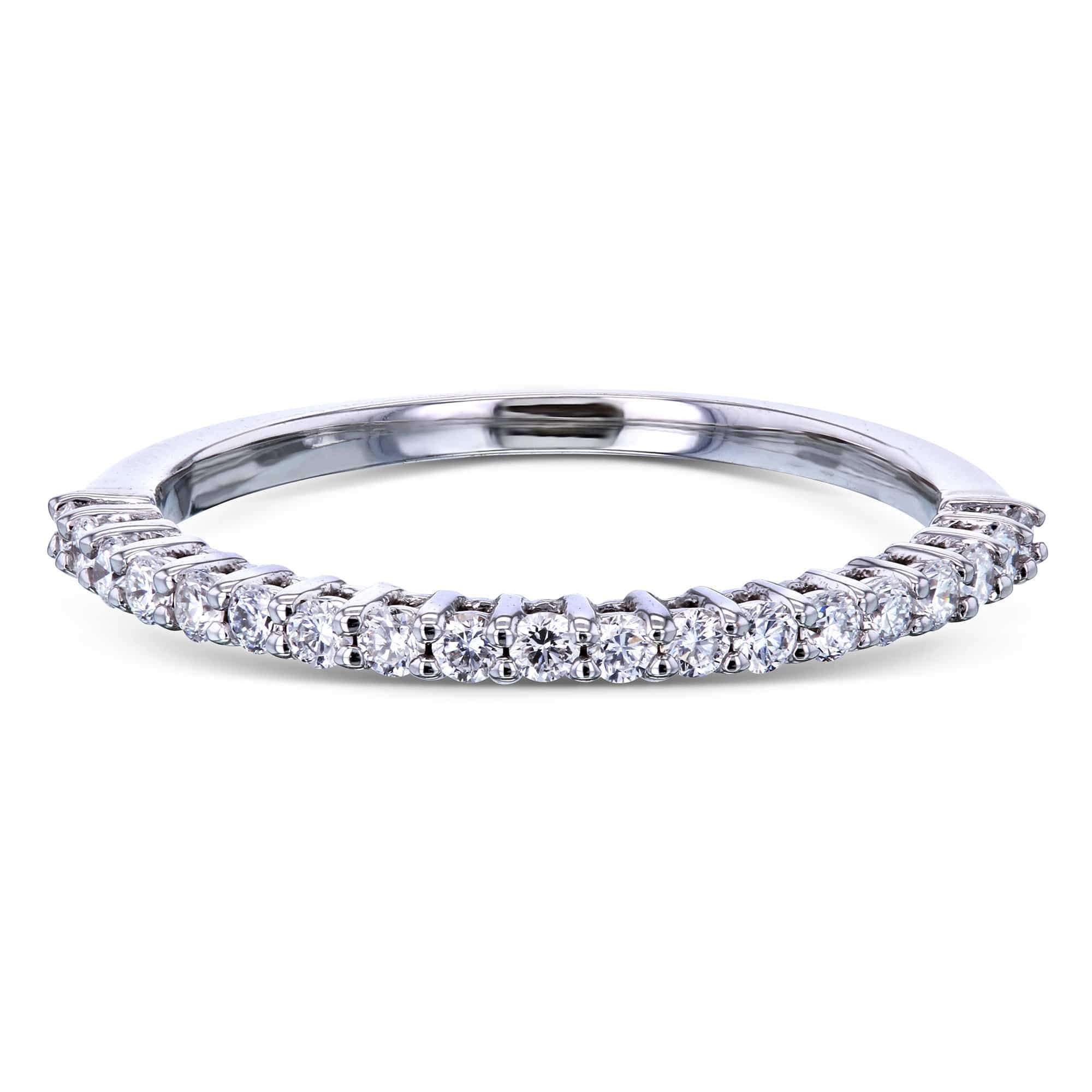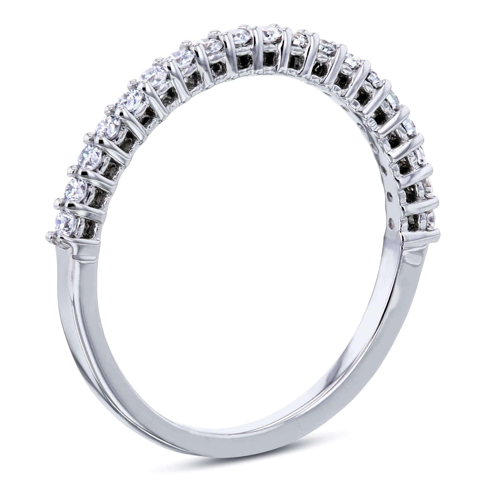 The timeless Kobelli Round Brilliant Semi-Eternity Ring wraps diamonds halfway around the band for a full row of sparkle across the face of the ring. Radiance is displayed on this ring using natural-grown diamonds and highly polished 14-karat gold for superior quality and craftsmanship. Sitting across the top of the band in a glittering line, the quarter-carat total weight is an ideal choice for matching an engagement ring without being overly flashy. The romantically simple design gives this ring a delicate sophistication.