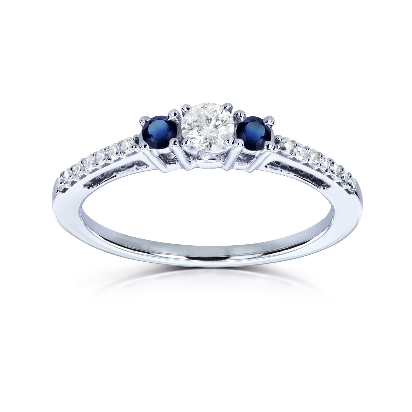 Three Stone Round Diamond and Sapphire Ring 1/4 Carat TW in 10k White Gold
