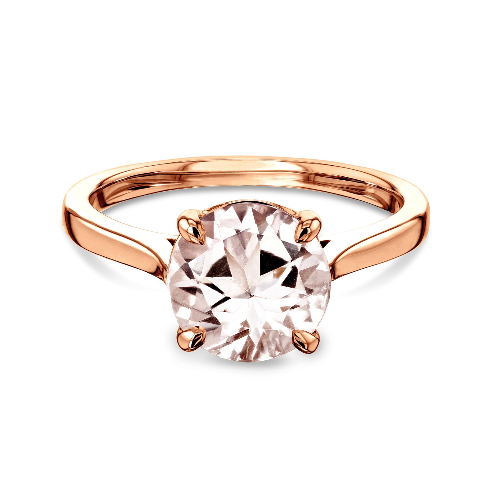 Our 8mm round solitaire boasts a beautifully subtle peachy pink gemstone that is none other than the highly praised morganite. With morganite being as increasingly popular as it is, you will quickly understand why this is the case, once you have one of your very own. Champagne tones and the rosy light peachy pink hue are hard not to love.