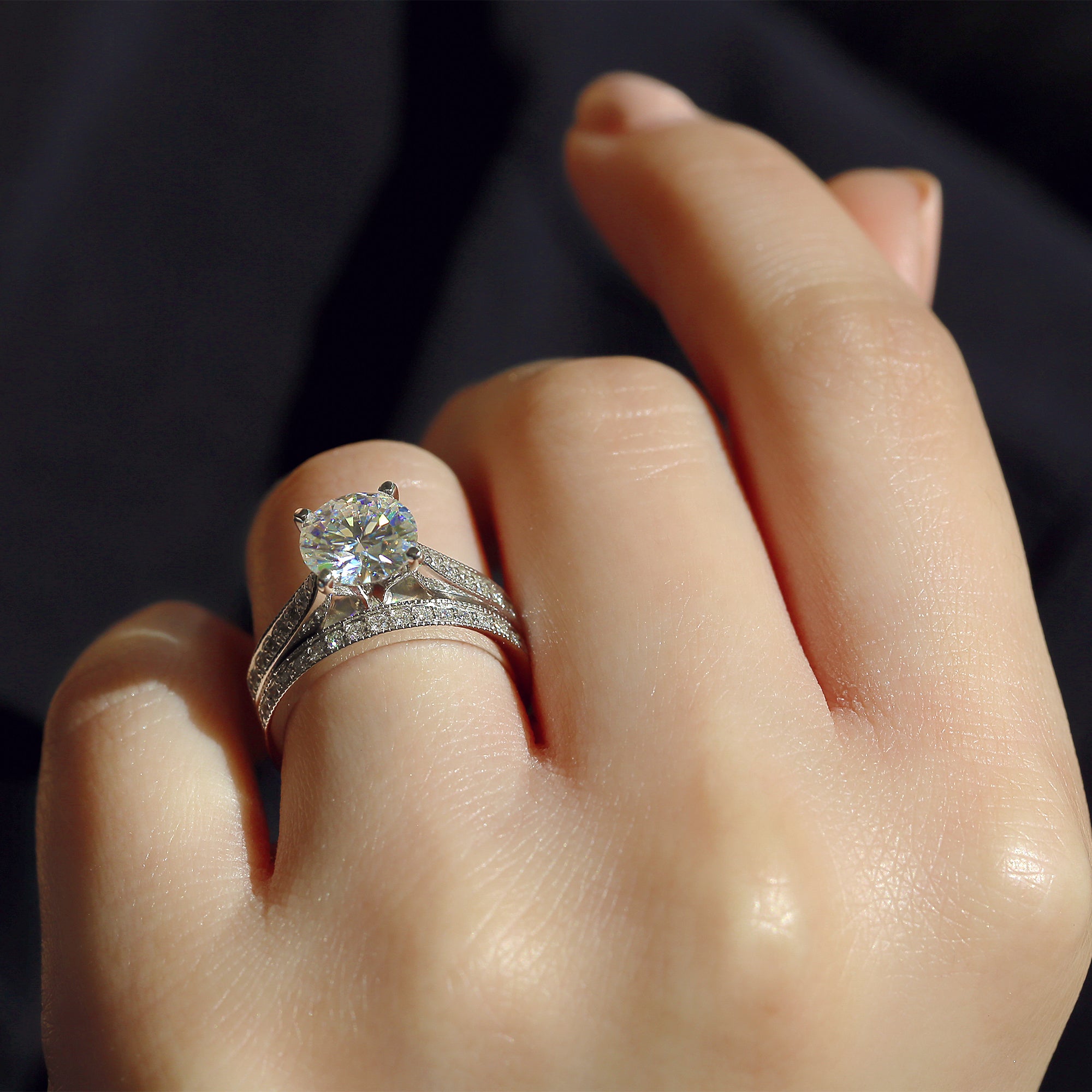 - One 8mm Round Brilliant-cut Moissanite (1.90ct DEW)
