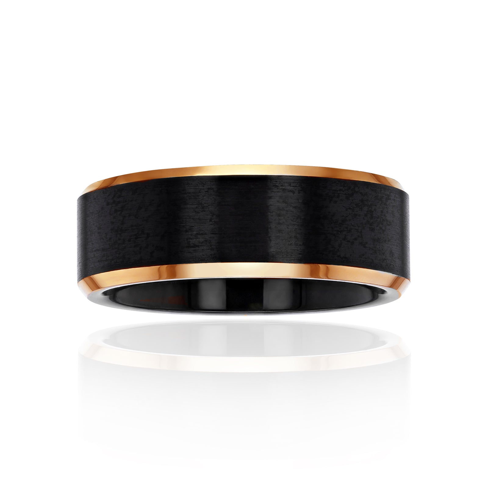 8mm Two-Tone Black Satin Finish with Rose Gold Edge