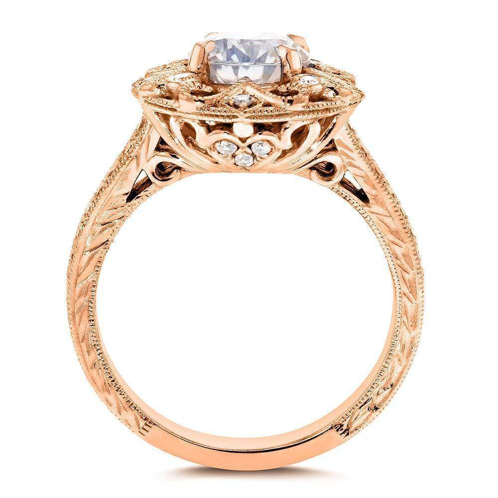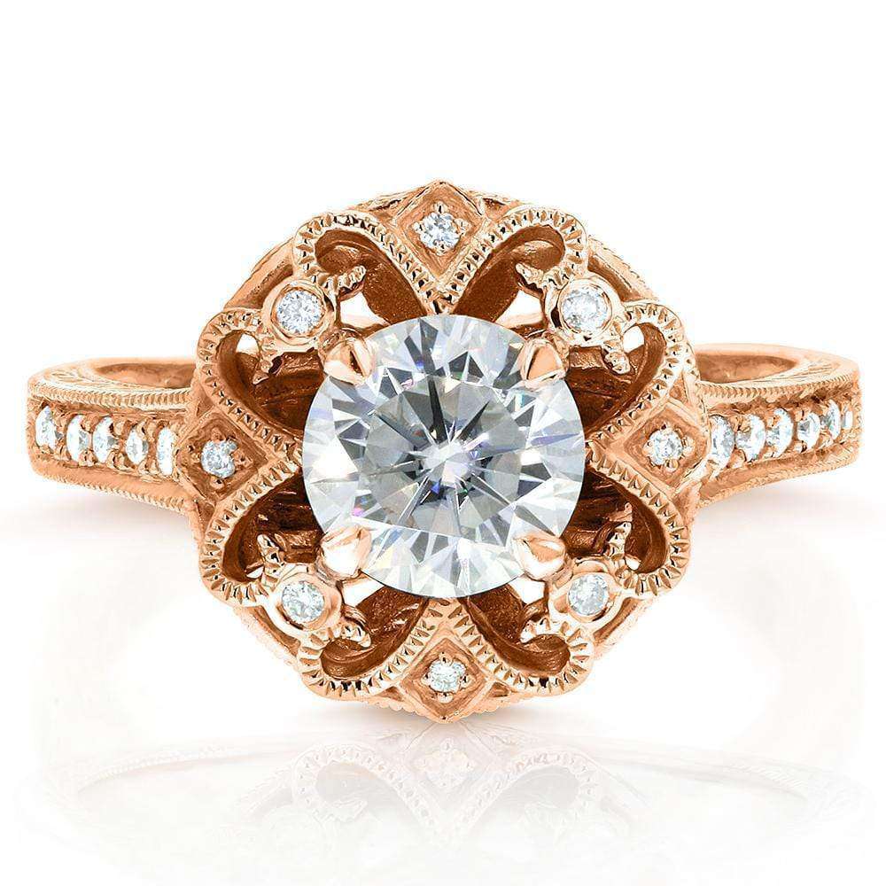 Antique Round Moissanite Engagement Ring with Diamond 1 1/5 CTW 14k Rose Gold
