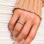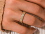 Each diamond is sectioned between shared-channel settings for a modern aesthetic. Leading each gold bar is a U-shaped curve connecting one to the next. This flowing metalwork provides for a comfortable fit along your finger as it easily glides and stays where it needs to be.