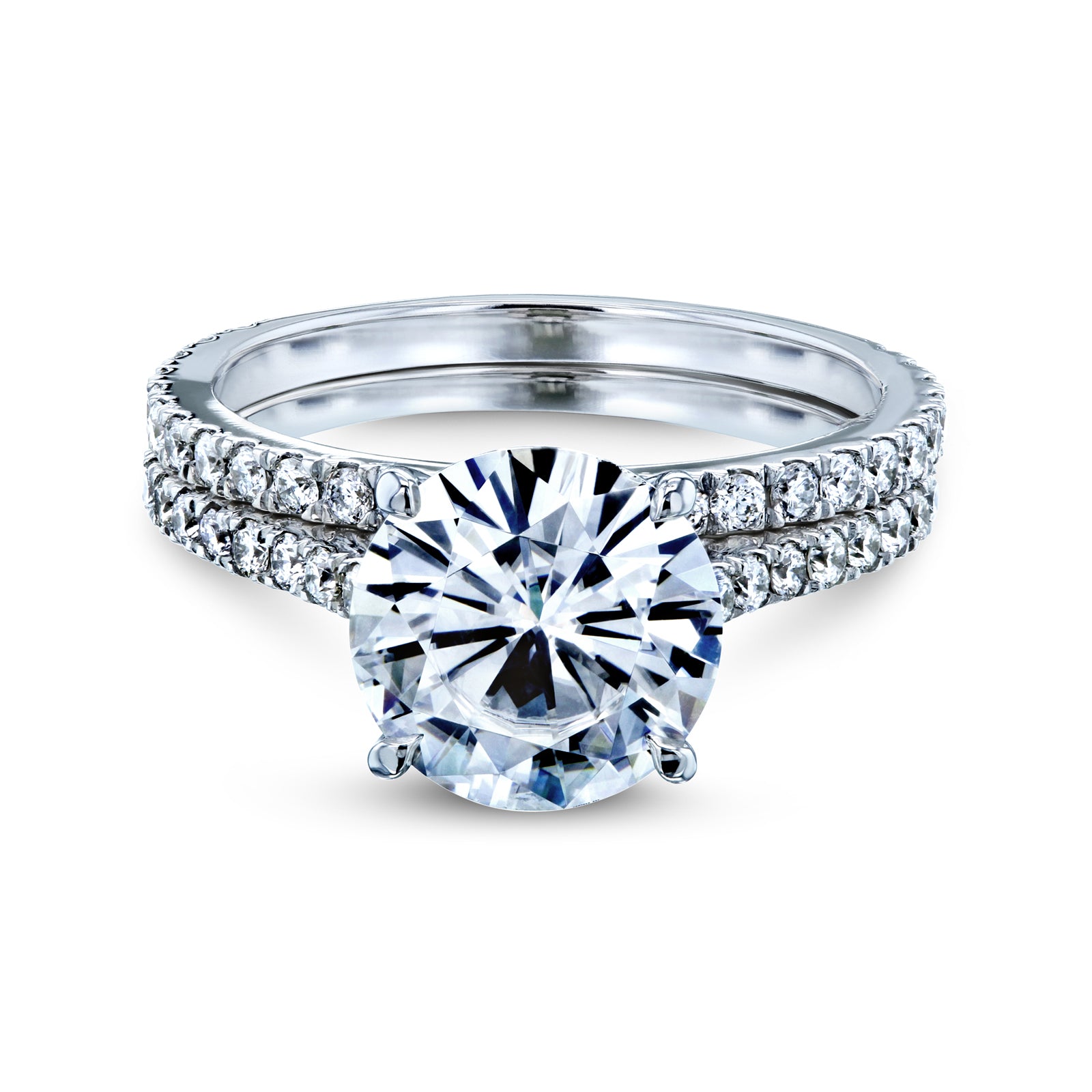2.70 Carat Main Stone -- The 9mm moissanite is a large round brilliant-cut man-made gemstone. The brilliant unclouded facets and sizable diameter showcases a stunning spectacle that may easily surpass even diamonds in brilliance.