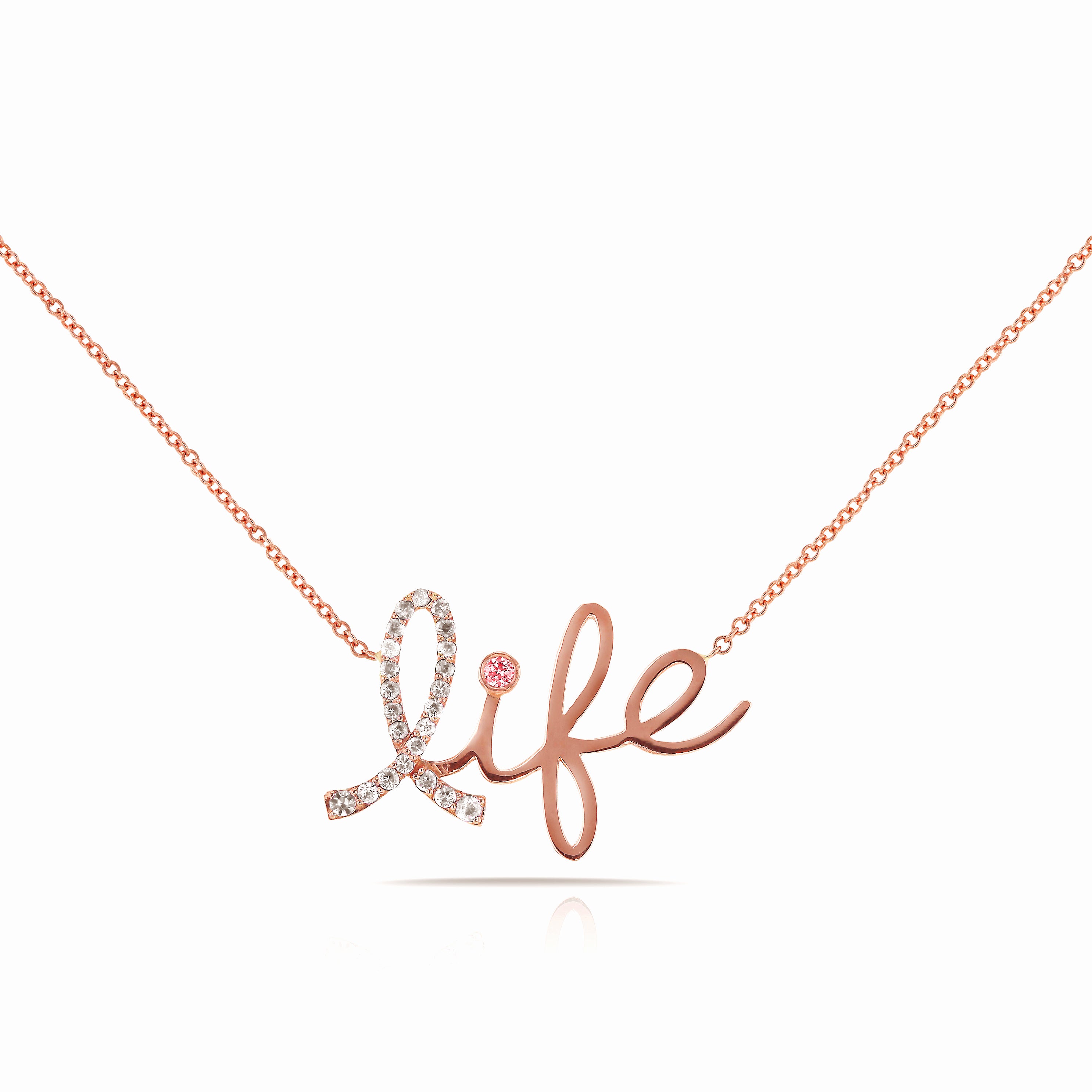 BCA Diamond & Pink Sapphire "Life" Necklace 1/6 Carat (ctw) in 14k Rose Gold (16" Chain)