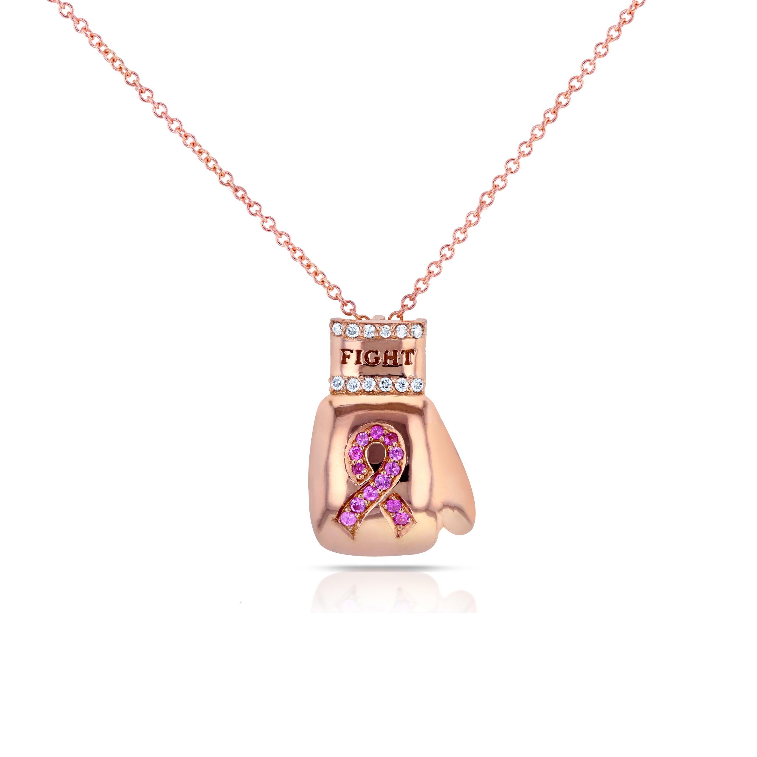 BCA Pink Sapphire & Diamond "Fight" Breast Cancer Awareness Pendant 14k Rose Gold (16" Chain)