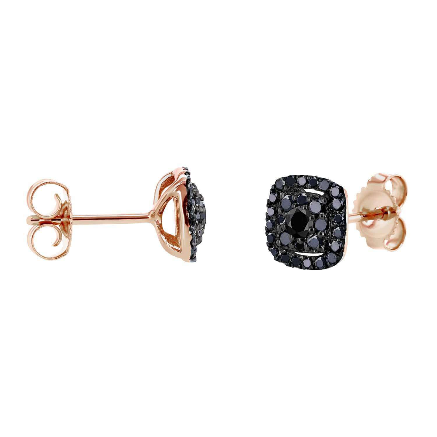 Black Diamond Halo Cluster Stud Earrings 1/3 CTW 14k Black and Rose Gold