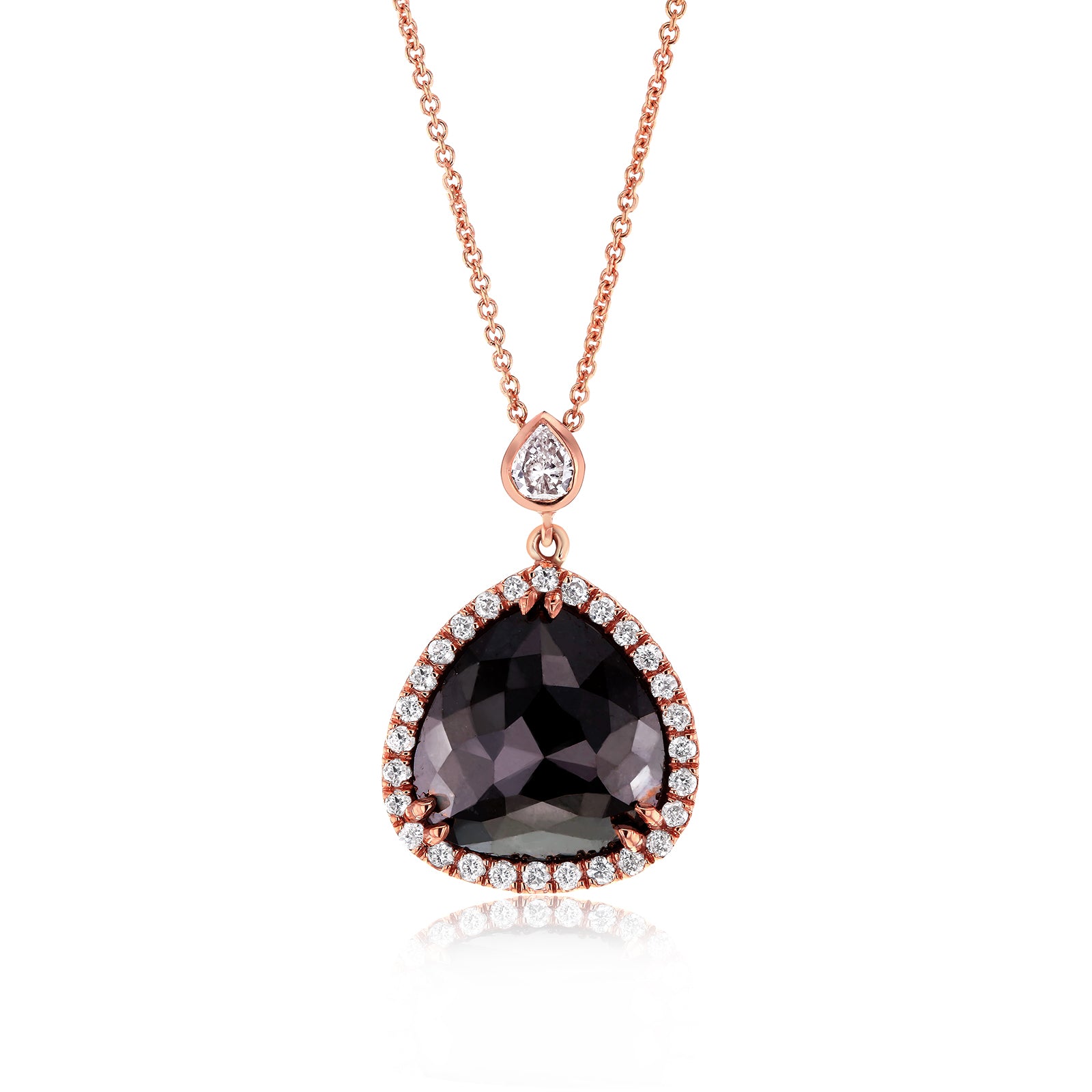 Pear Shaped Rose-cut Black & White Diamond Halo Style Pendant 5 CTW in 14k Rose Gold