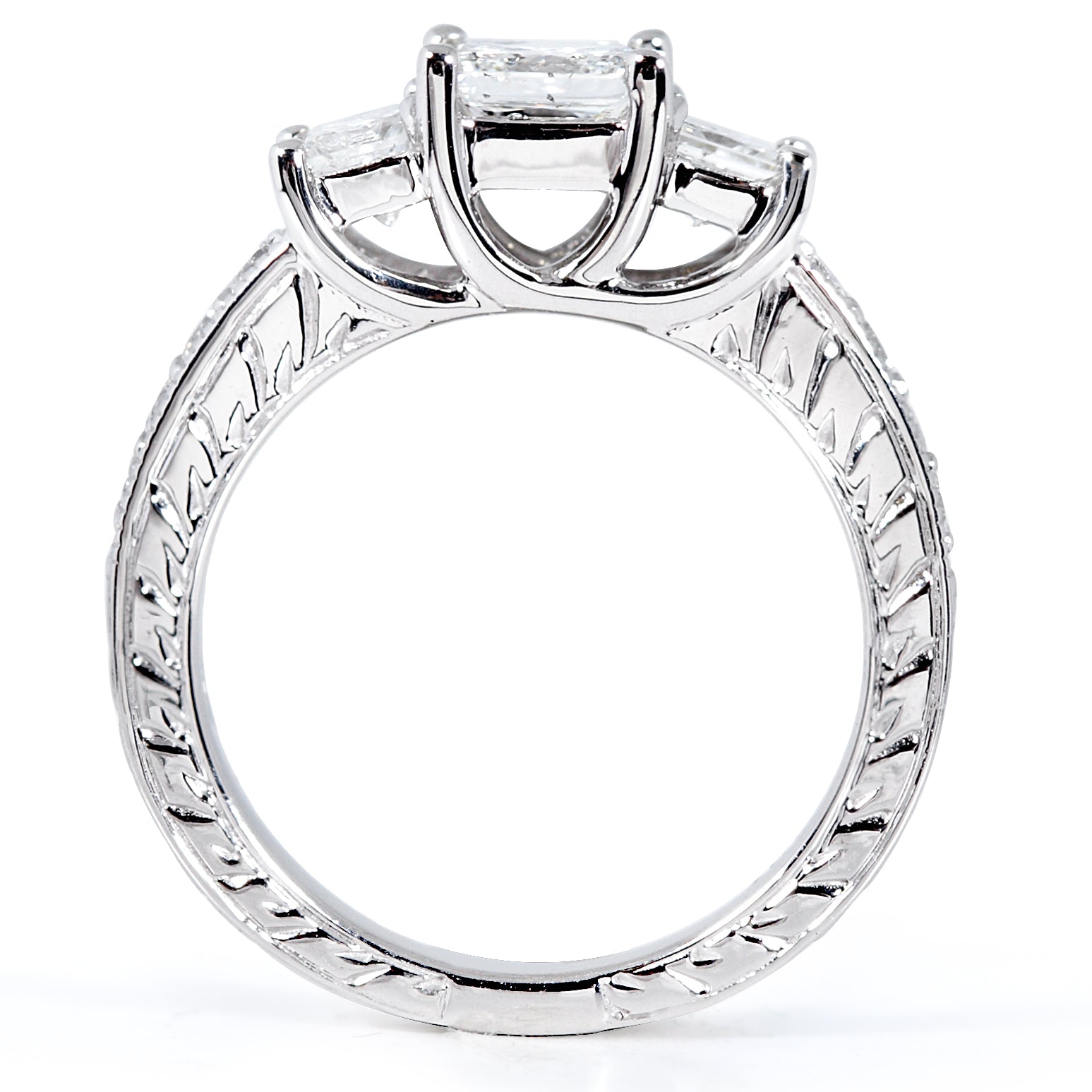 Black and White Diamond Three Stone Princess-cut Wedding Set 1 3/5 carats (ctw) in 14K White Gold