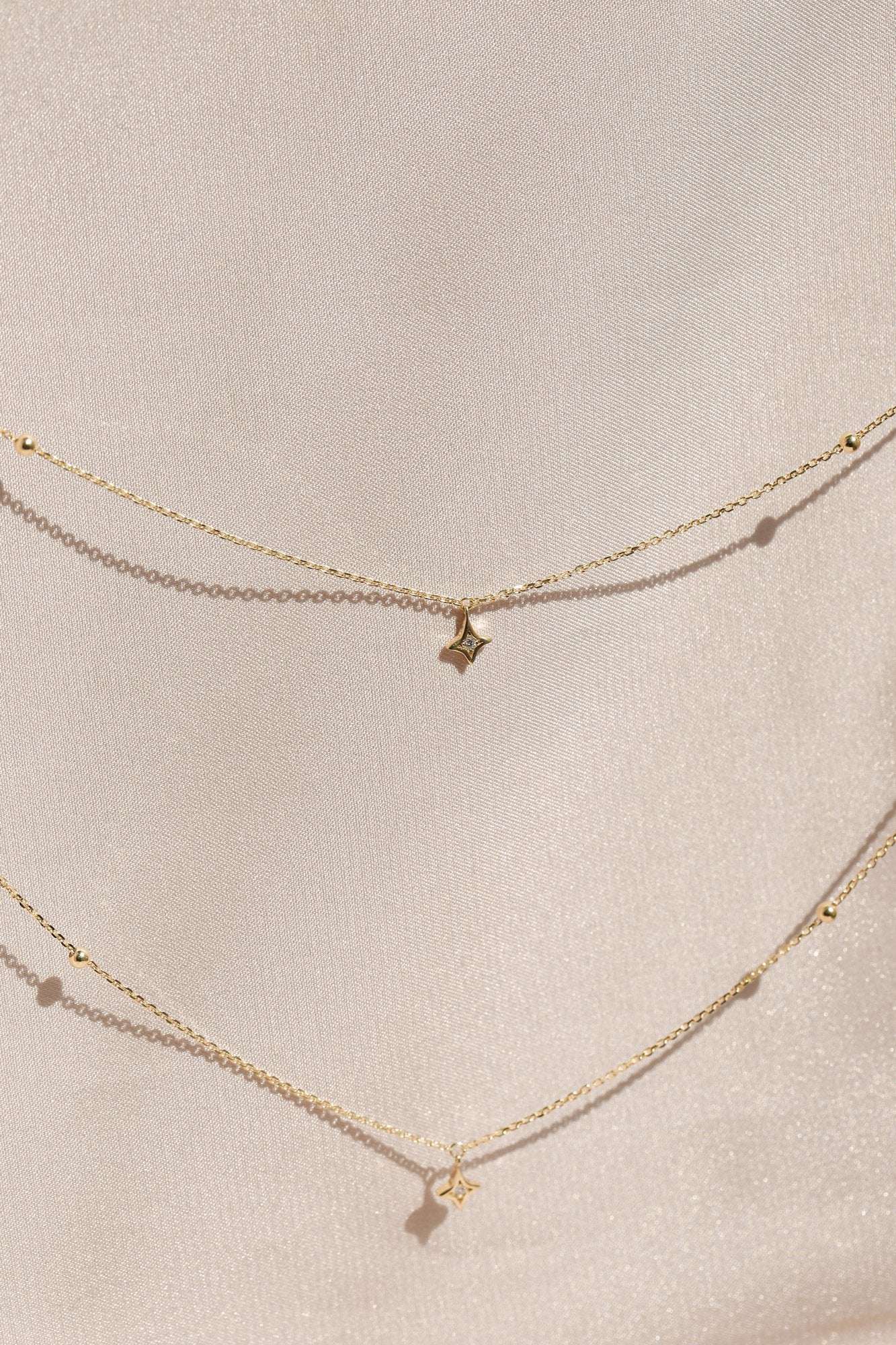 Channel your inner bohemian princess with our new duet layer necklace featuring charming diamond-set stars in an adjustable chain. Crafted in solid 14-karat yellow gold, neither filled nor plated, this fun little number is durable and lightweight enough to wear all day and all night long.