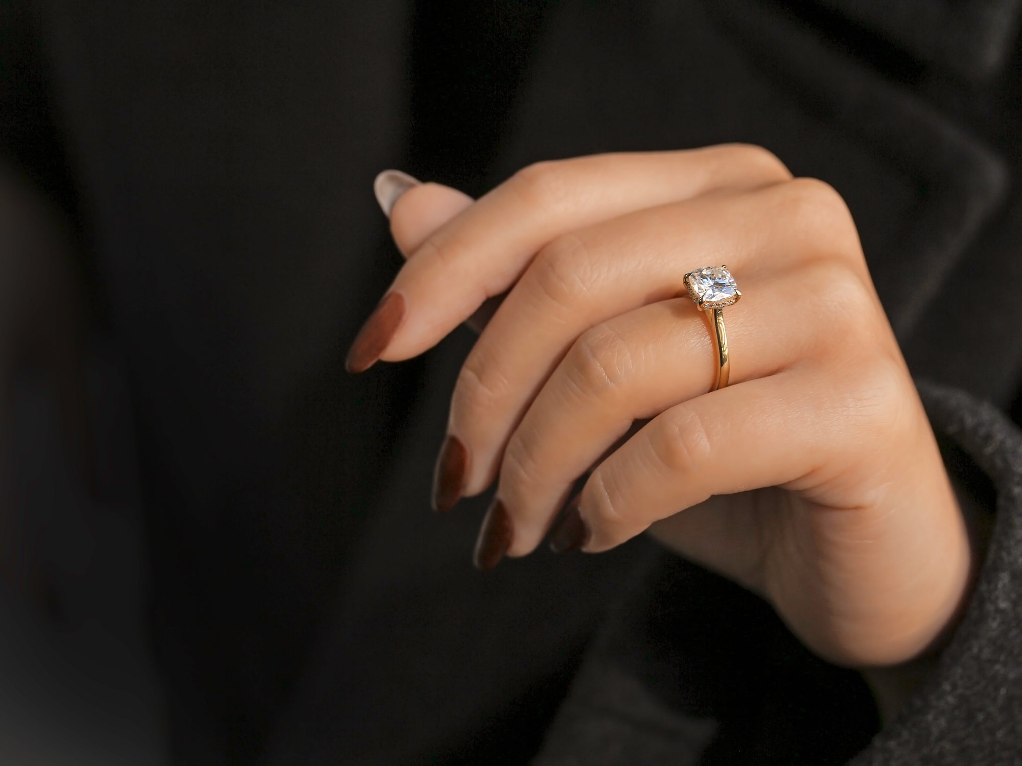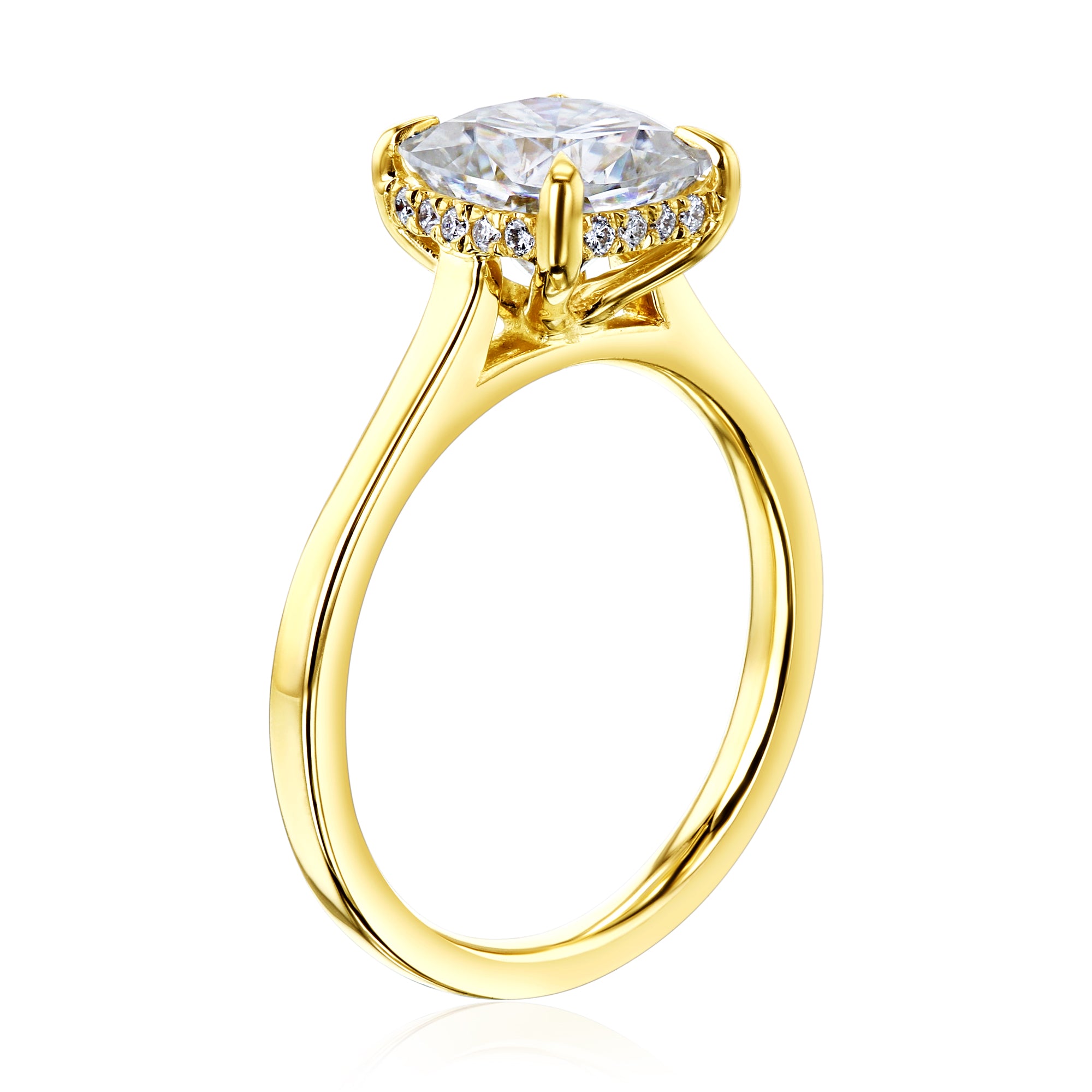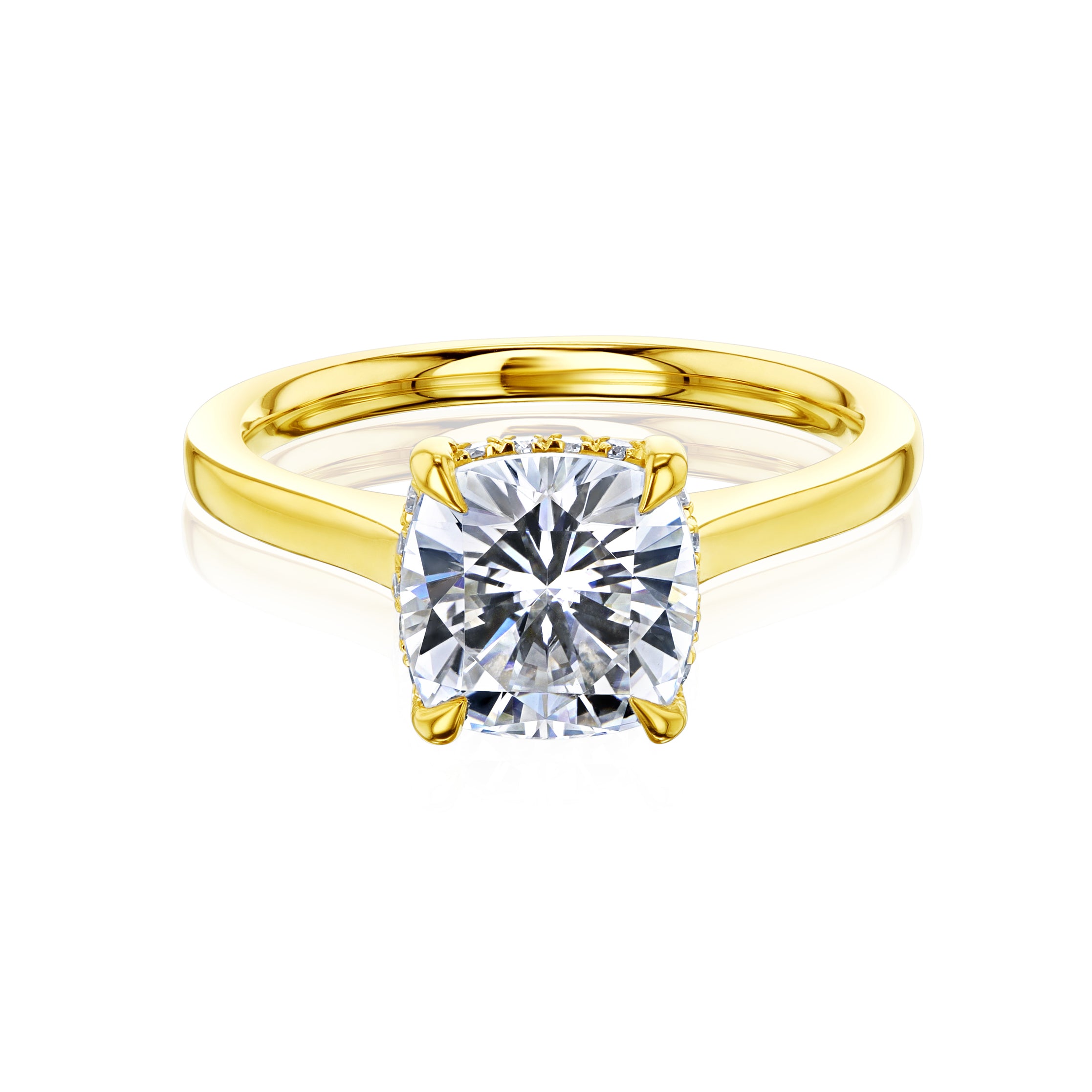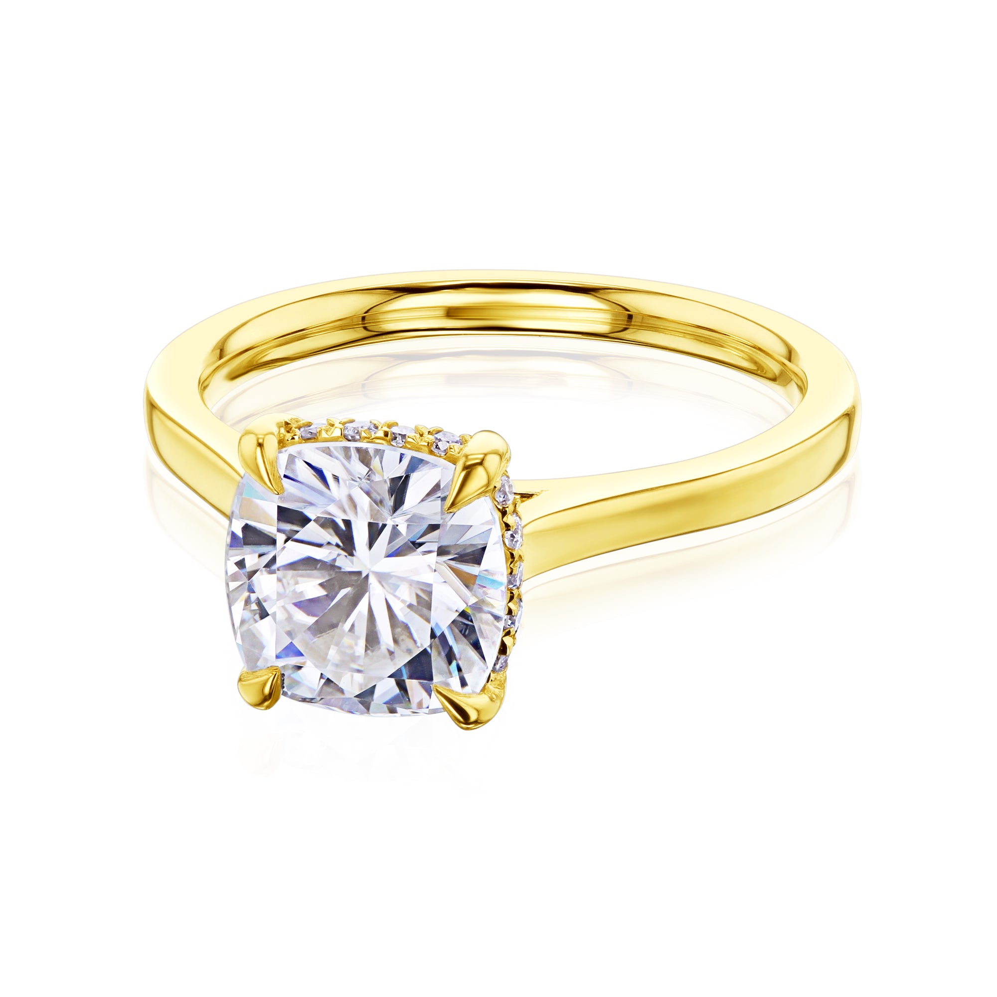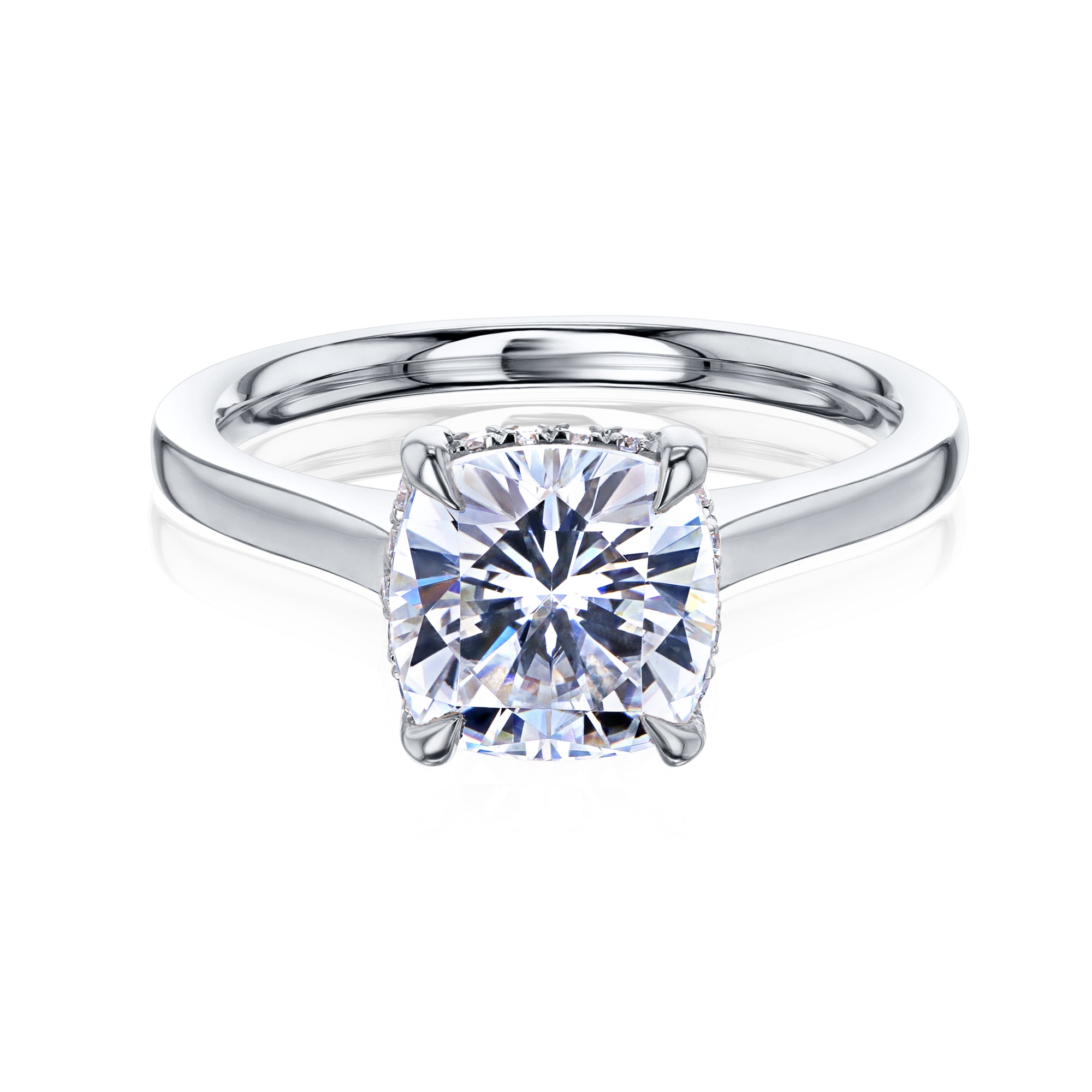 Special moments deserve an exceptional piece that symbolizes promise and commitment. We, at Kobelli, know exactly how to make your day memorable. Our Carrie 2-carat Moissanite Cushion Engagement Ring is quintessential with its vintage cushion-cut center stone that radiates along with 18 round diamond side stones and a hidden halo. This ring is a perfect way to show your infinite love above all else.