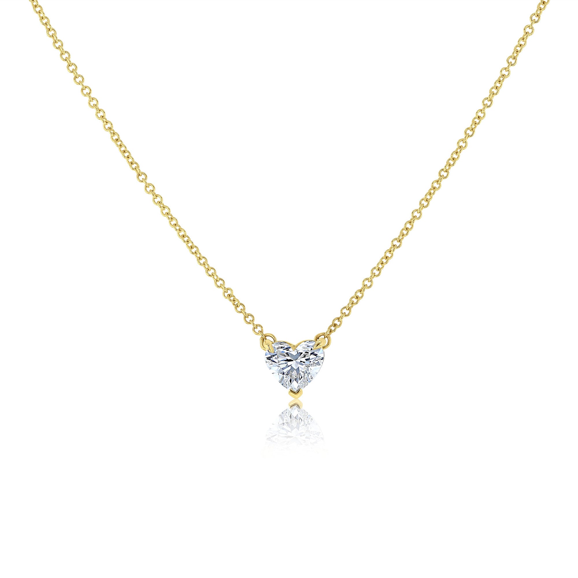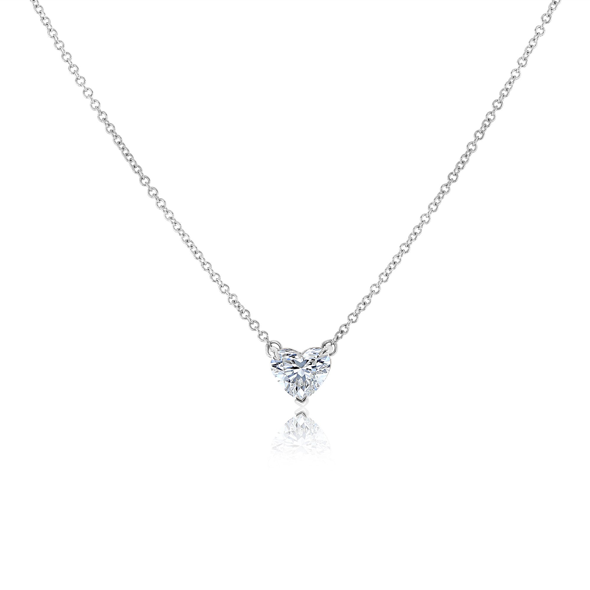 A single heart shaped brilliant-cut lab grown diamond hangs gracefully on this solitaire necklace. The adoring pendant comes attached to a cable chain.