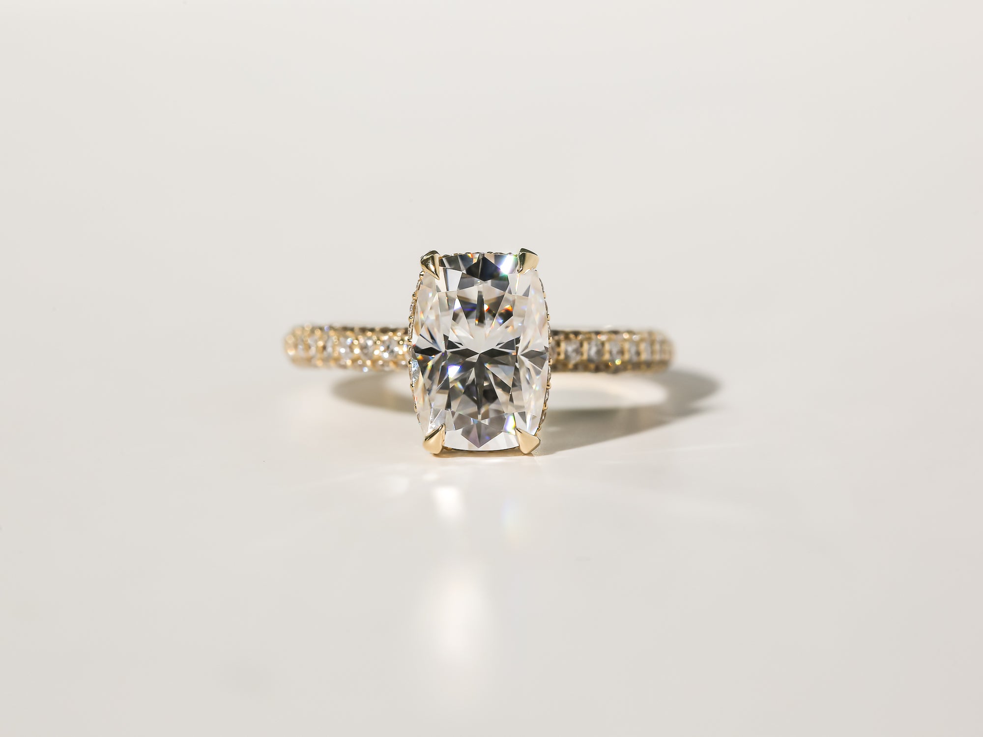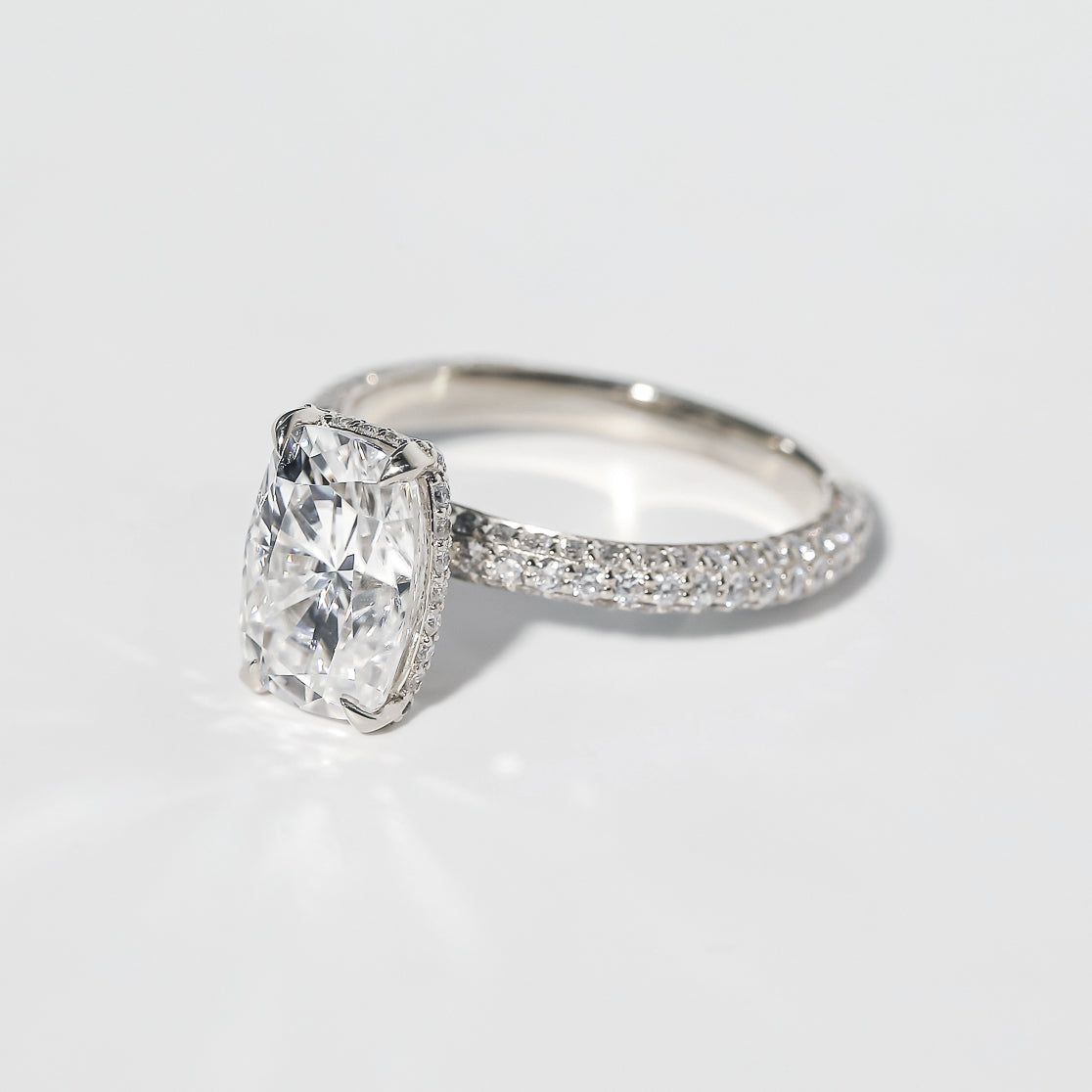 4.15ct.tw Elongated Cushion Brilliant Moissanite & Lab Diamond-Coated Engagement Ring