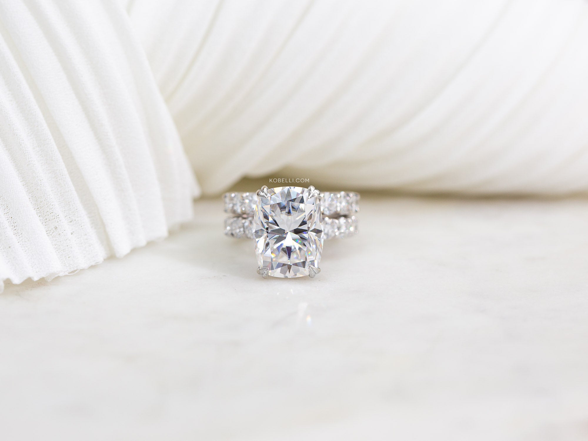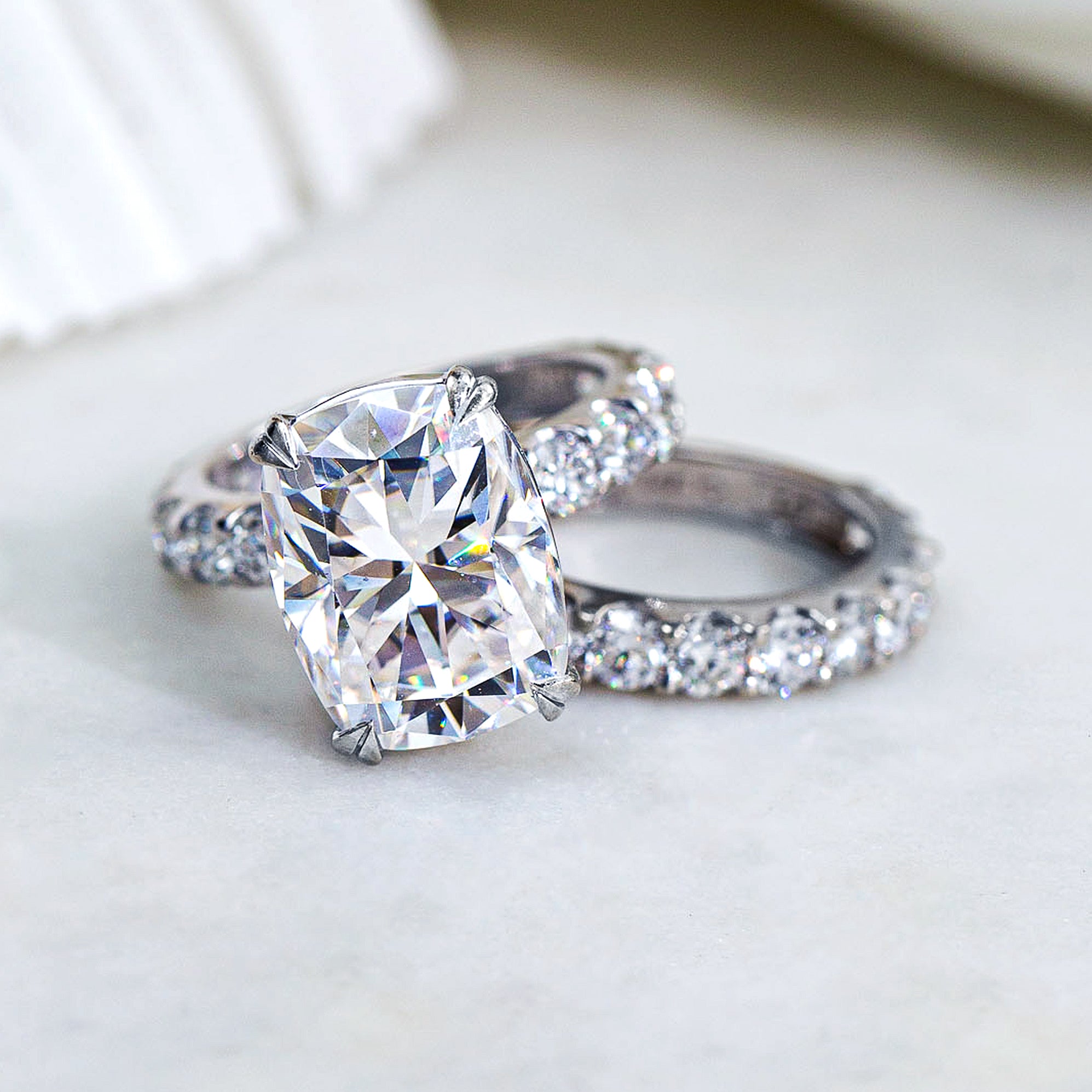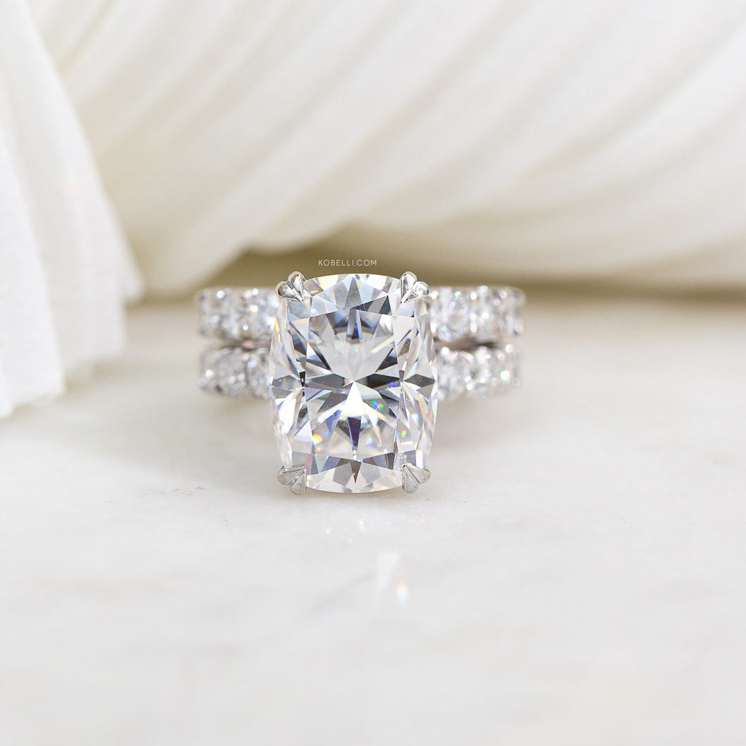 Elongated Cushion Moissanite & Lab Grown Diamond Bridal Rings