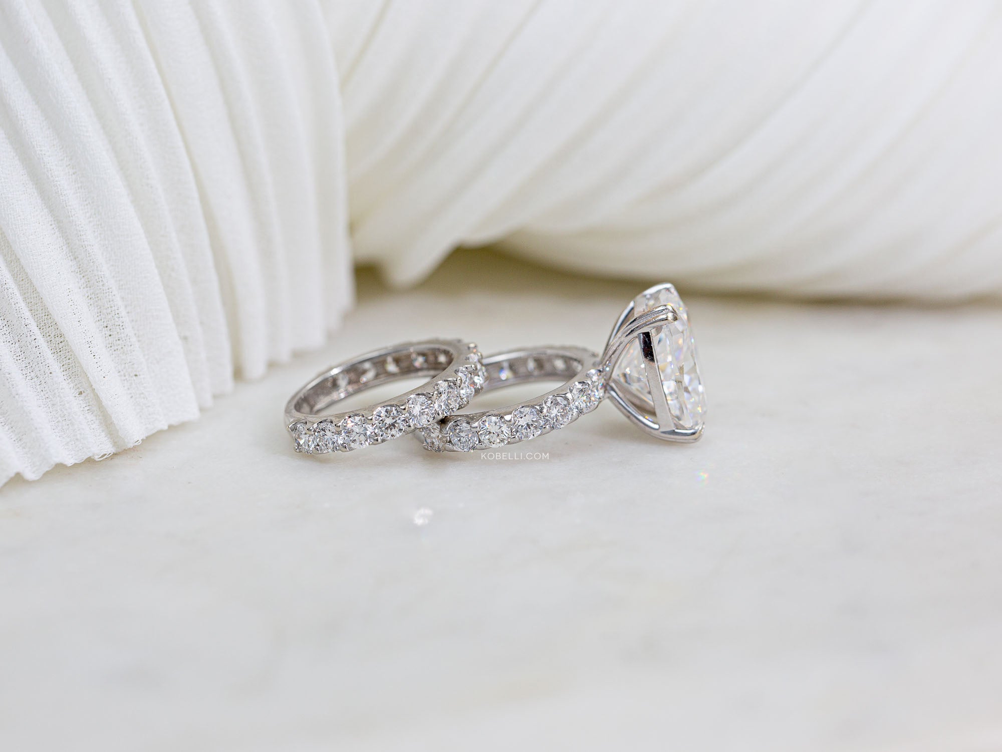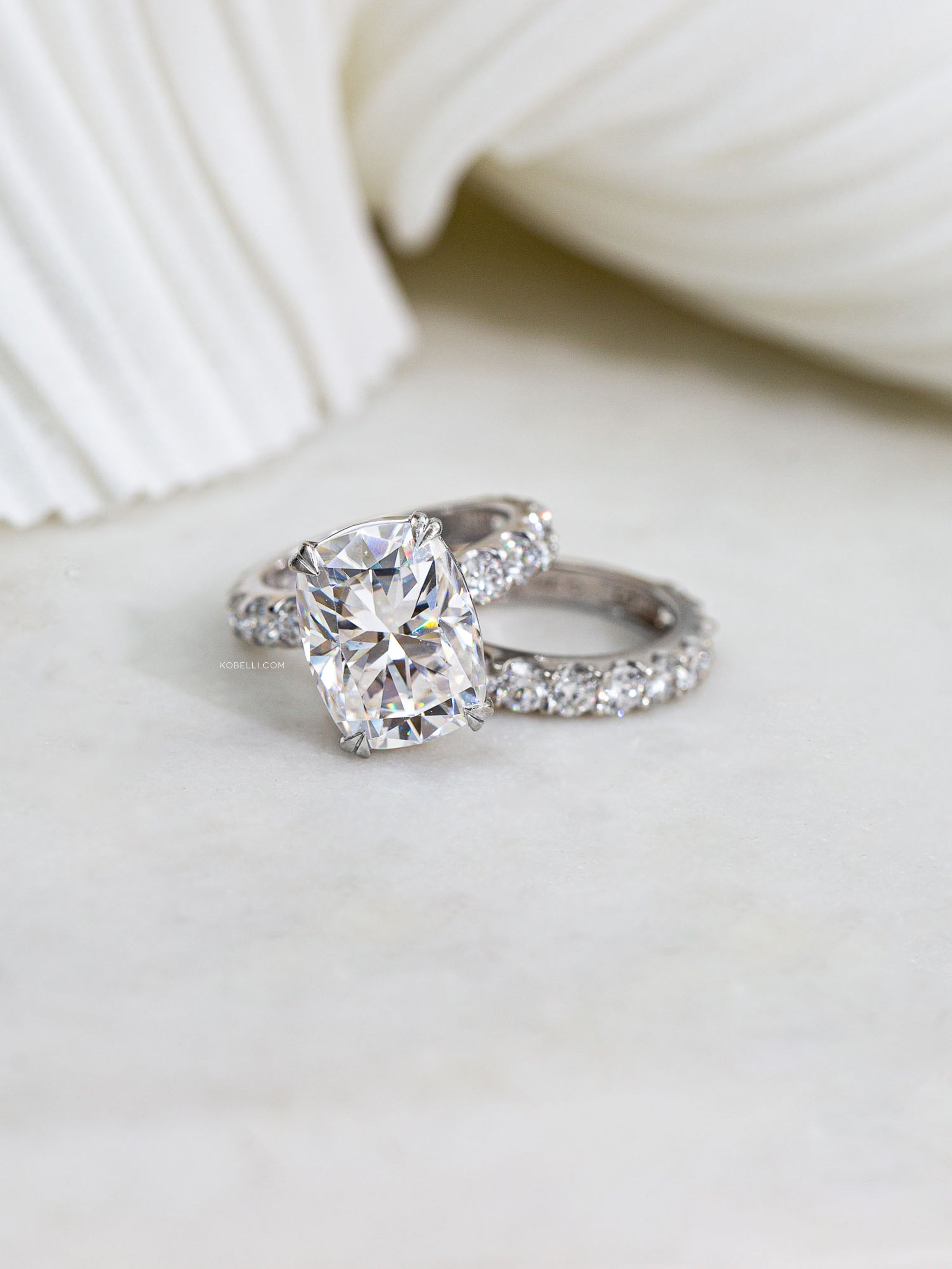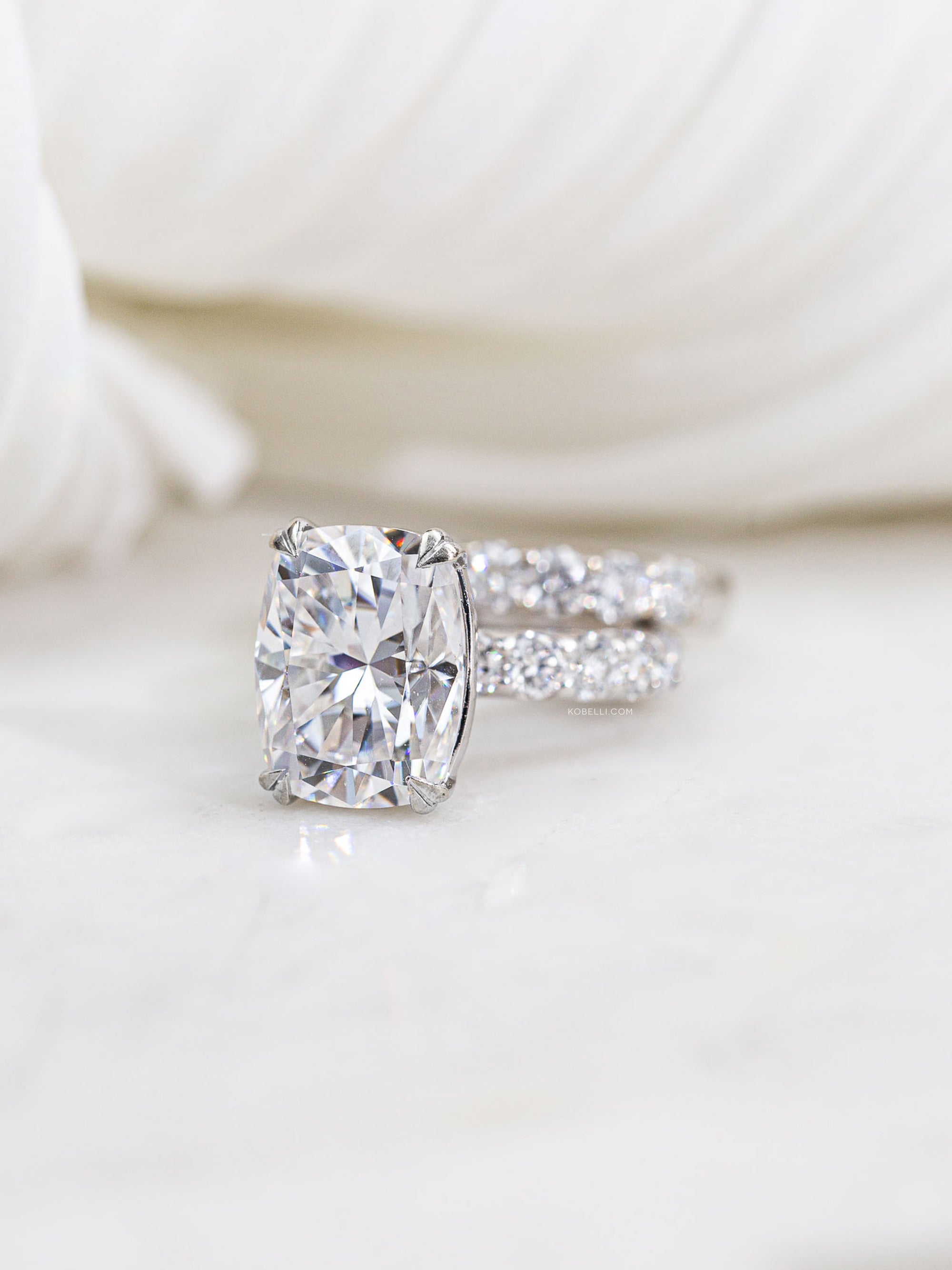 Elongated Cushion Moissanite & Lab Grown Diamond Bridal Rings