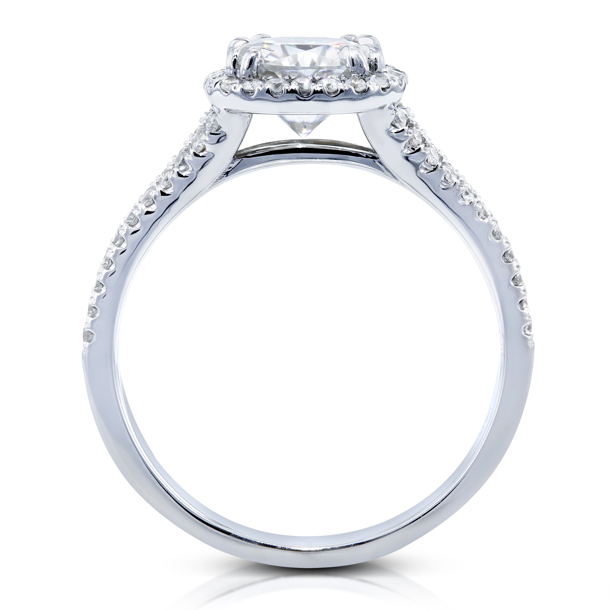 Cushion Moissanite Engagement Ring with Split Shank Halo Diamond 2 1/2 CTW 14k Gold