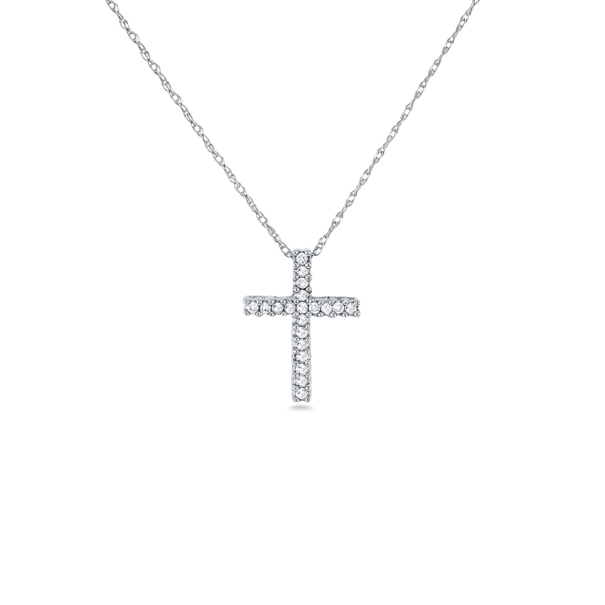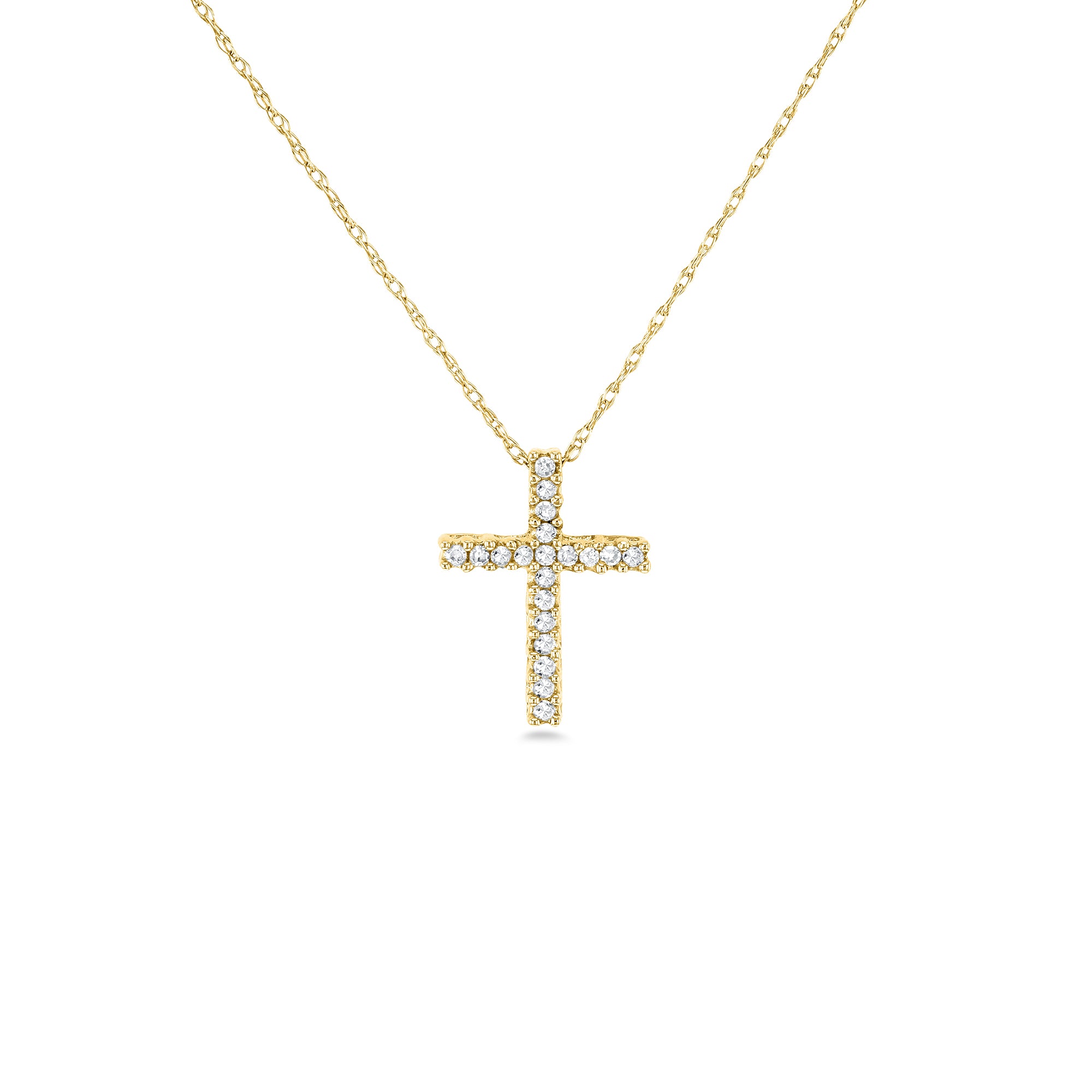 Shared Prong-set Diamond Studded Cross Pendant 1/10 Carat TDW in 10k Gold (18 Inch Chain)