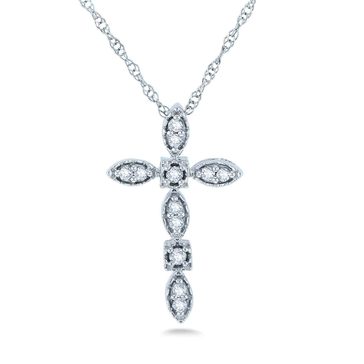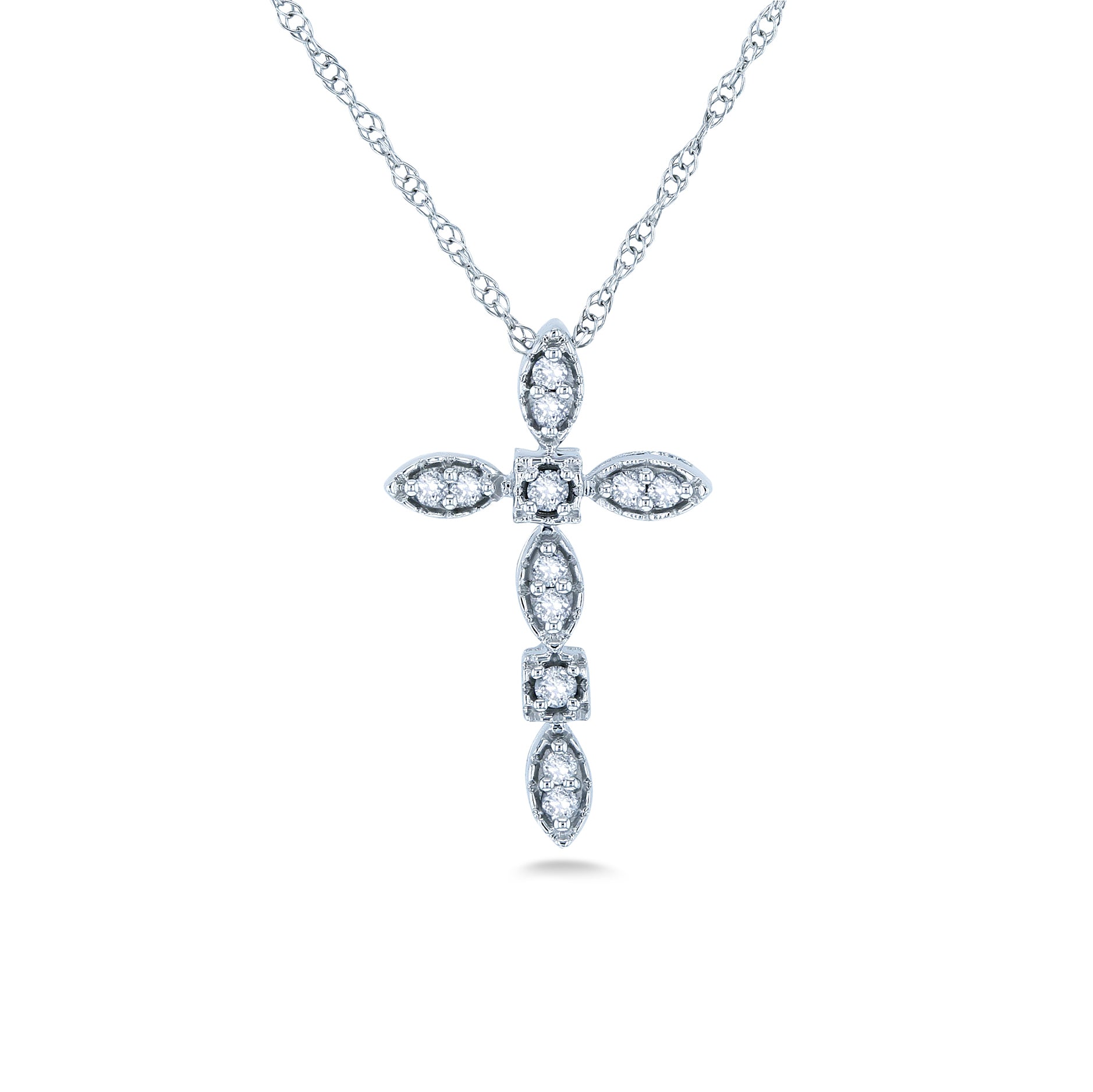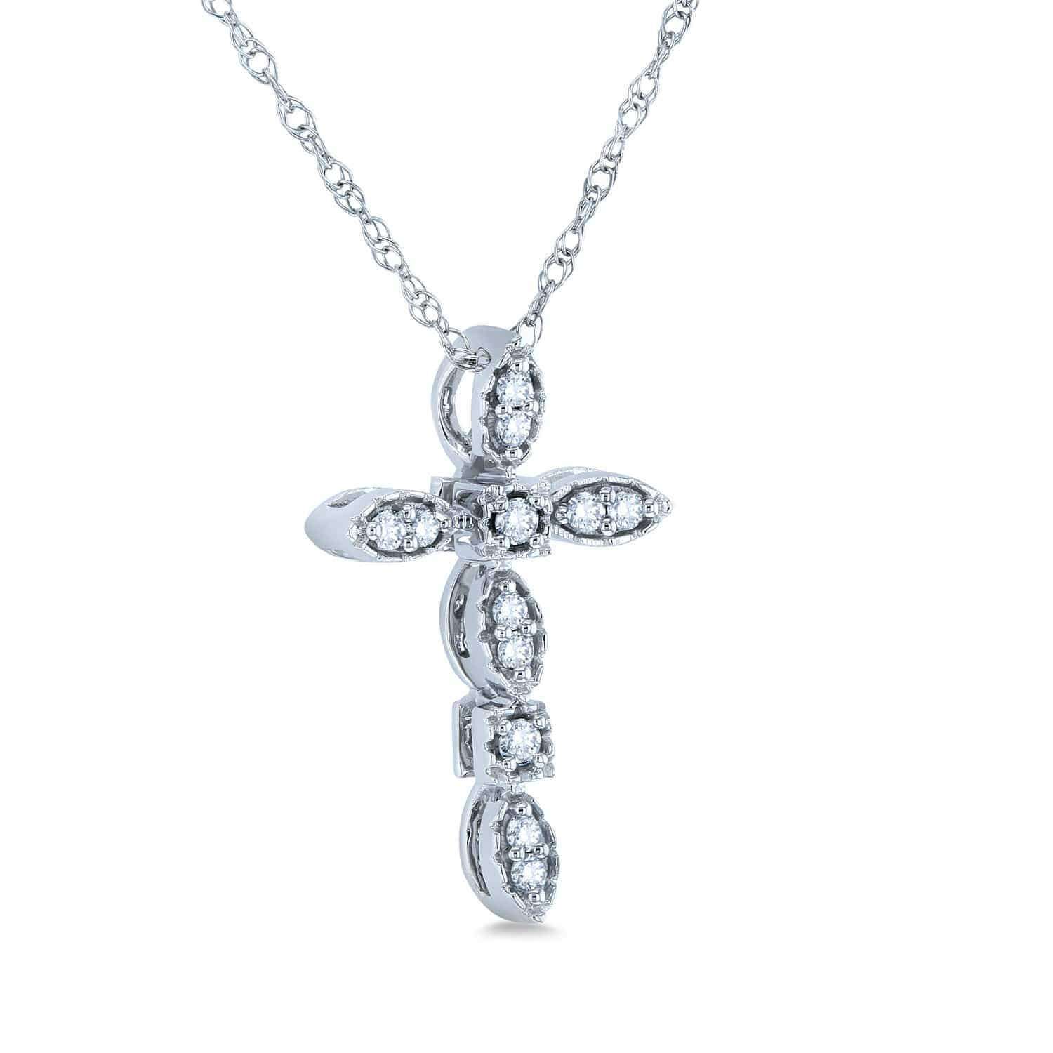 Diamond Cross Pendant and Chain 1/10ct TCW in 10k White Gold