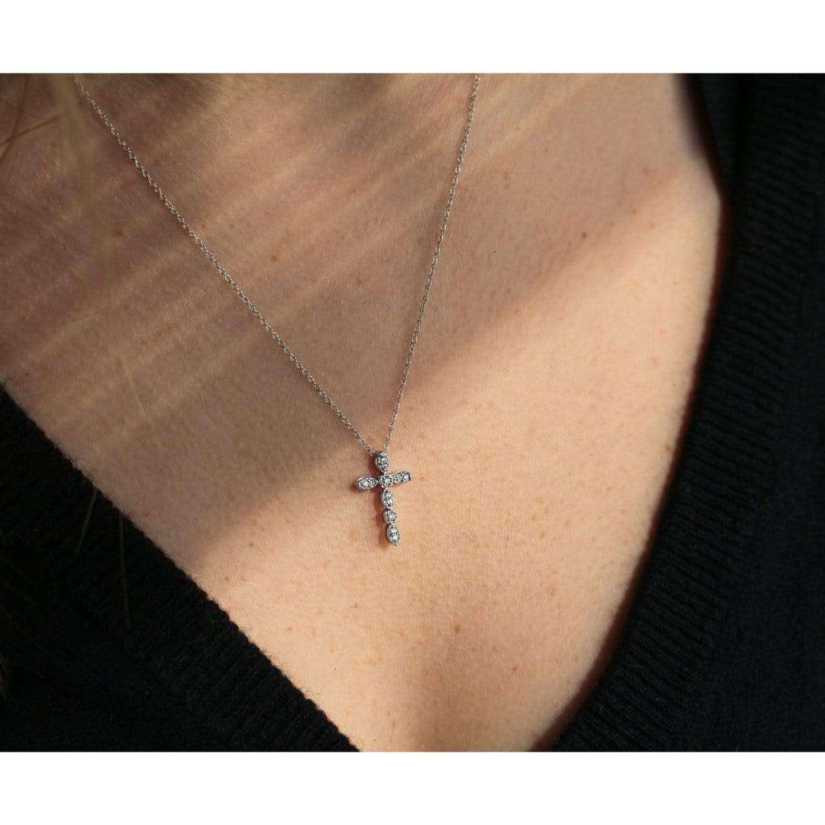 0.1 Carat Natural Diamond Scalloped Cross Necklace