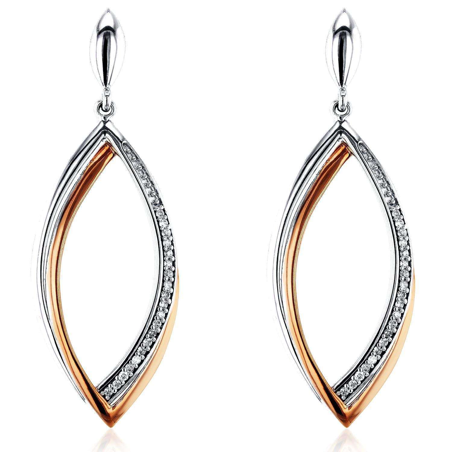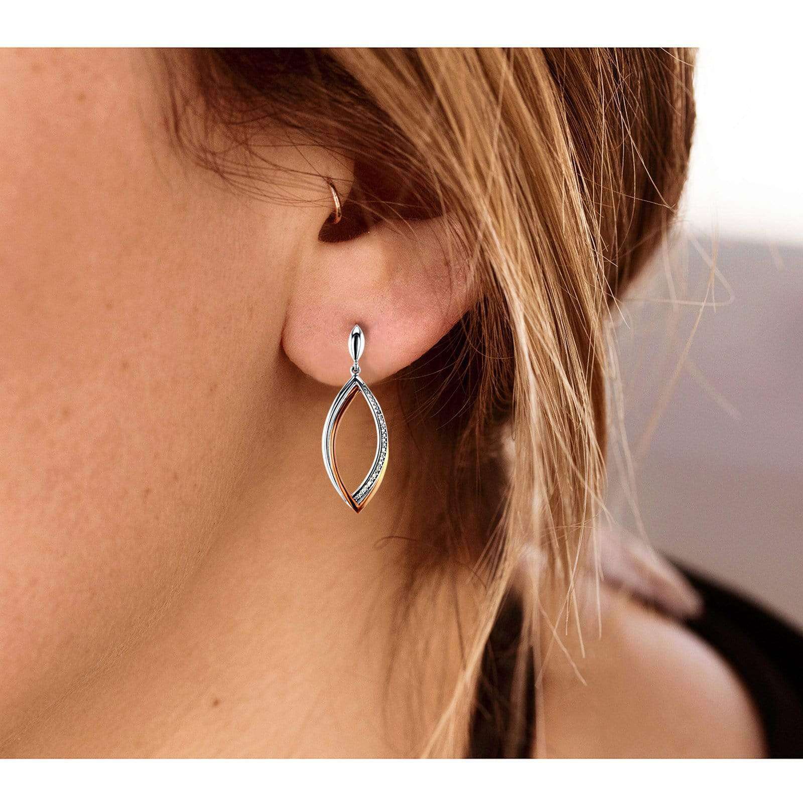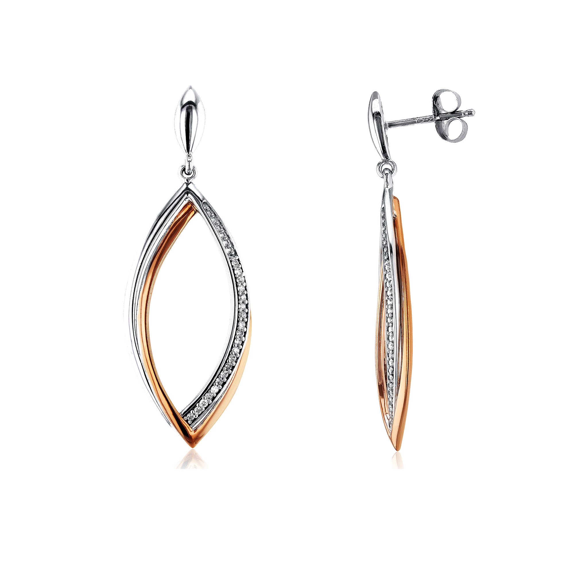 Diamond Leaf Edge Dangle Earrings 1/10 CTW in 10K Rose and White Gold