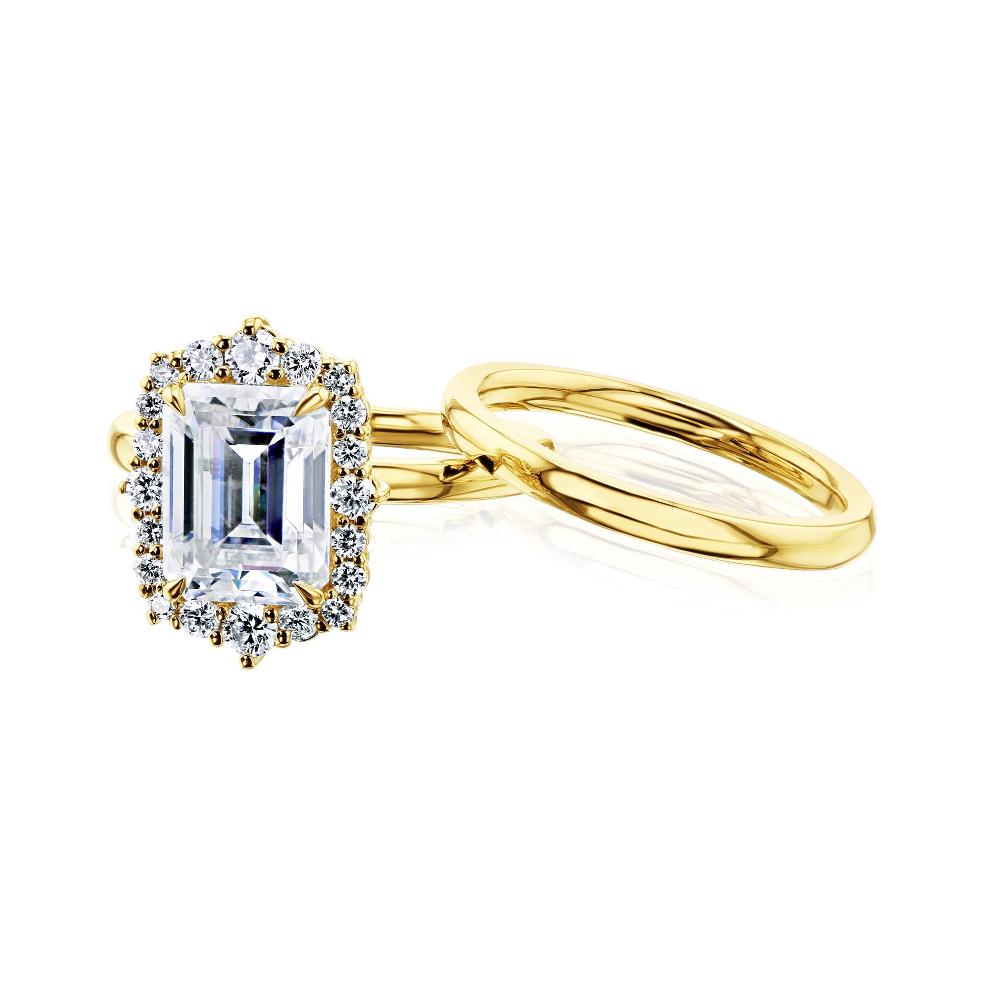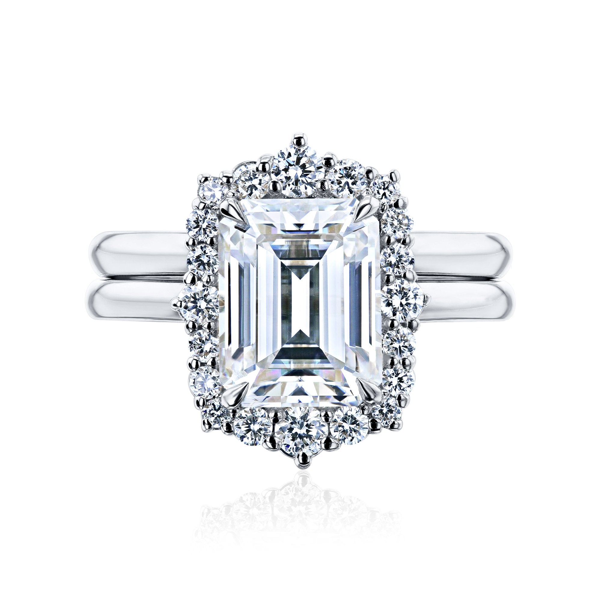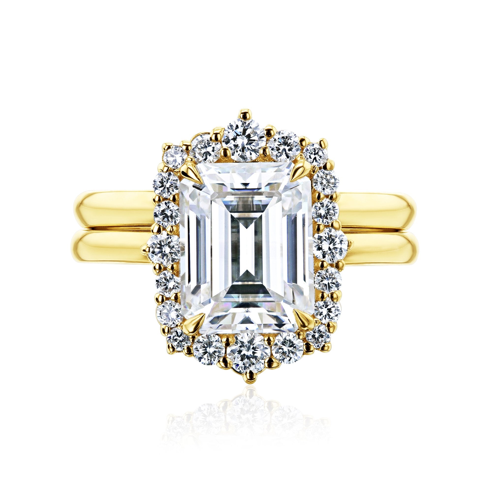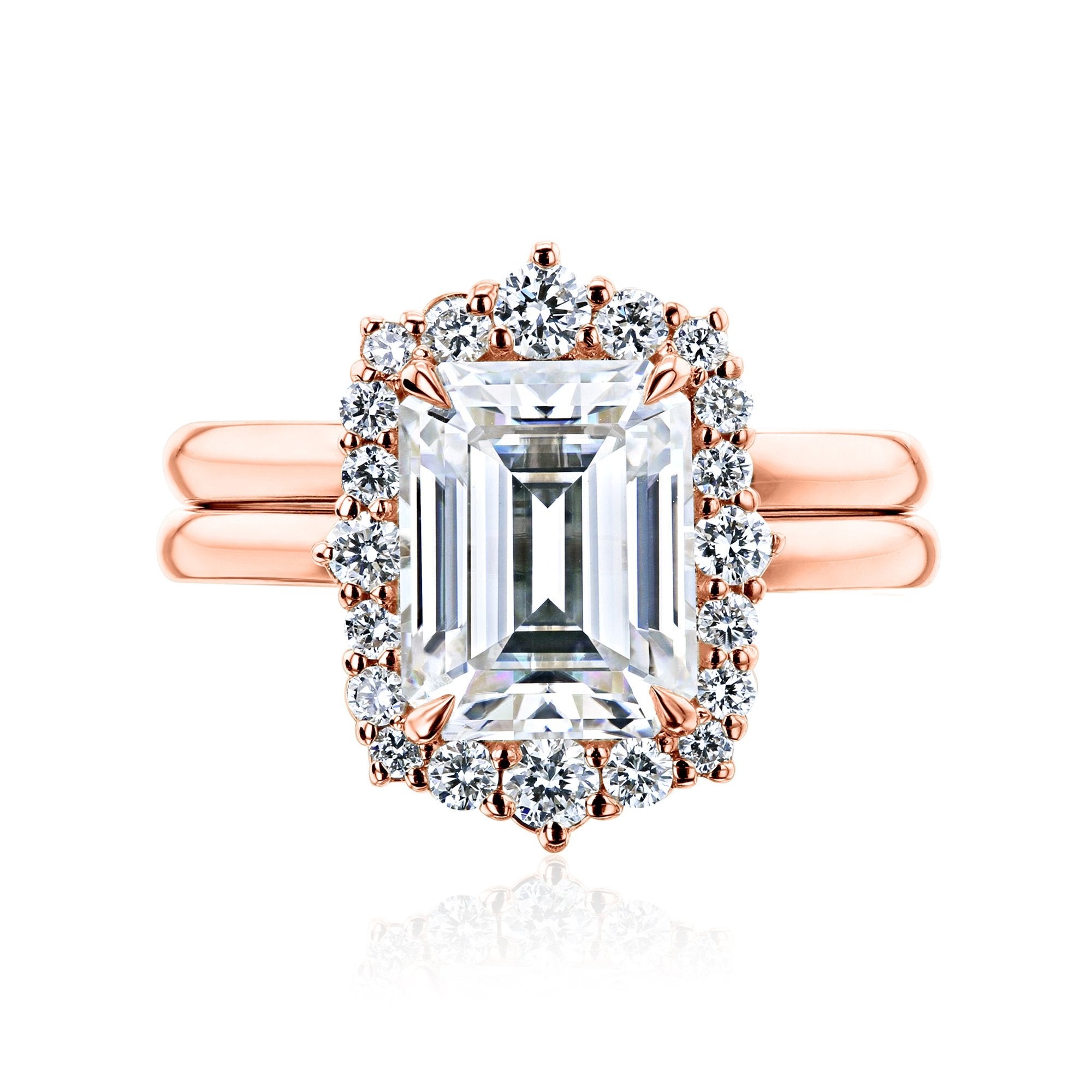 Elizabeth Bridal Set - Emerald Moissanite with Lab-Grown Diamond Halo Two-Piece Bridal Set