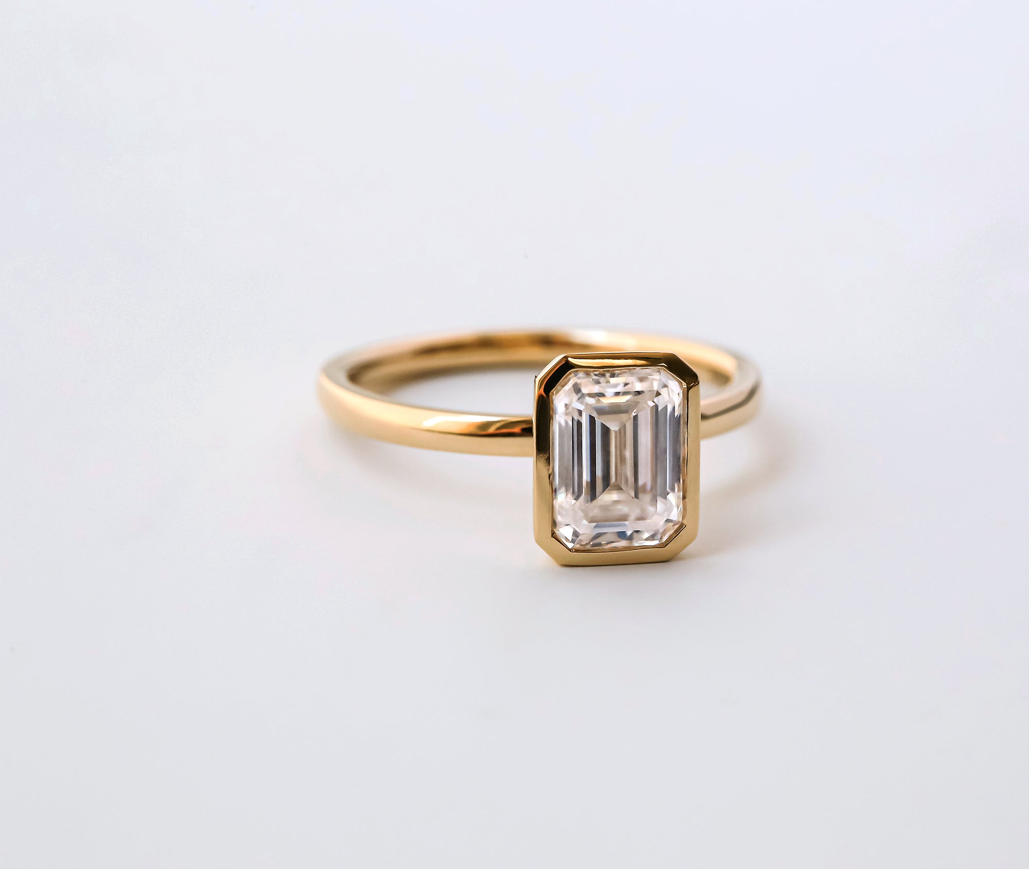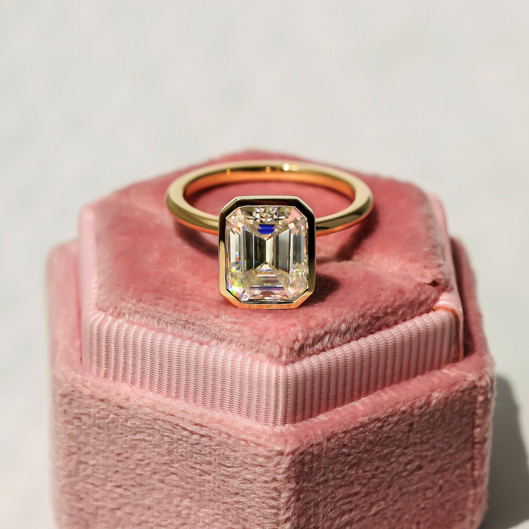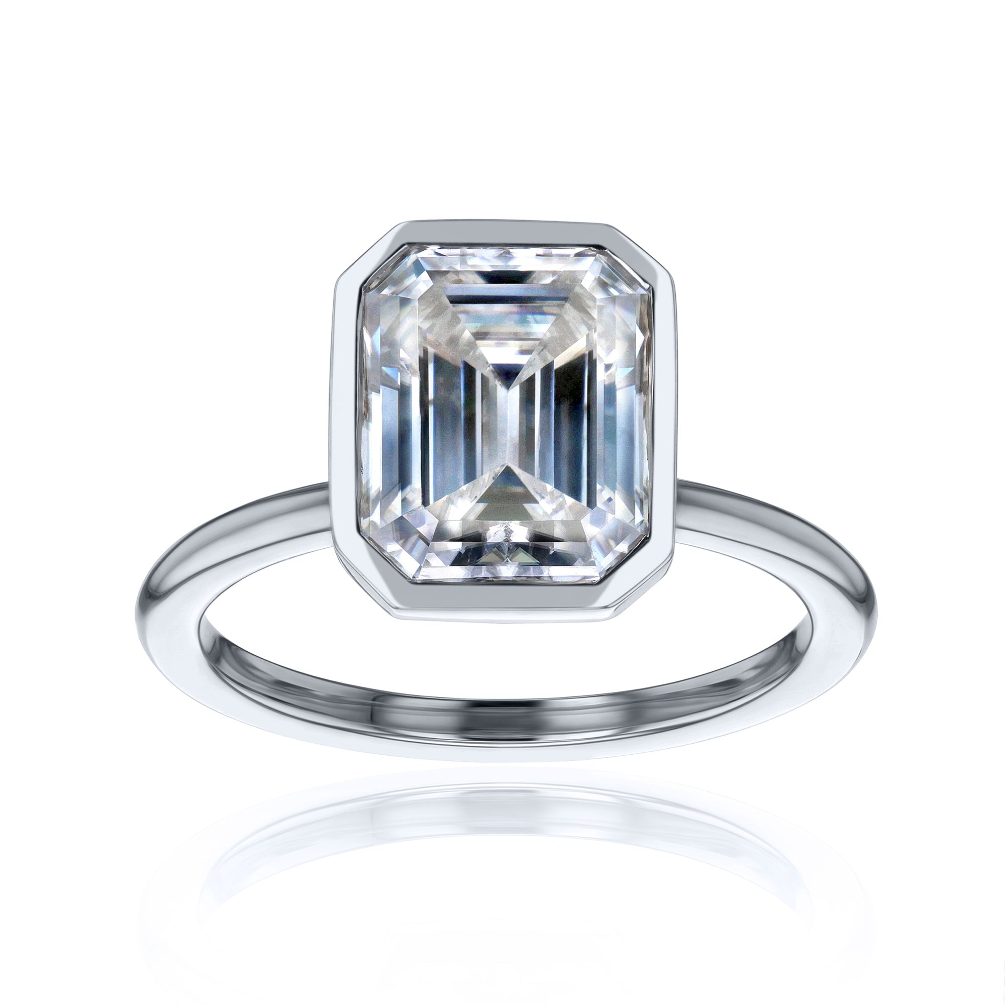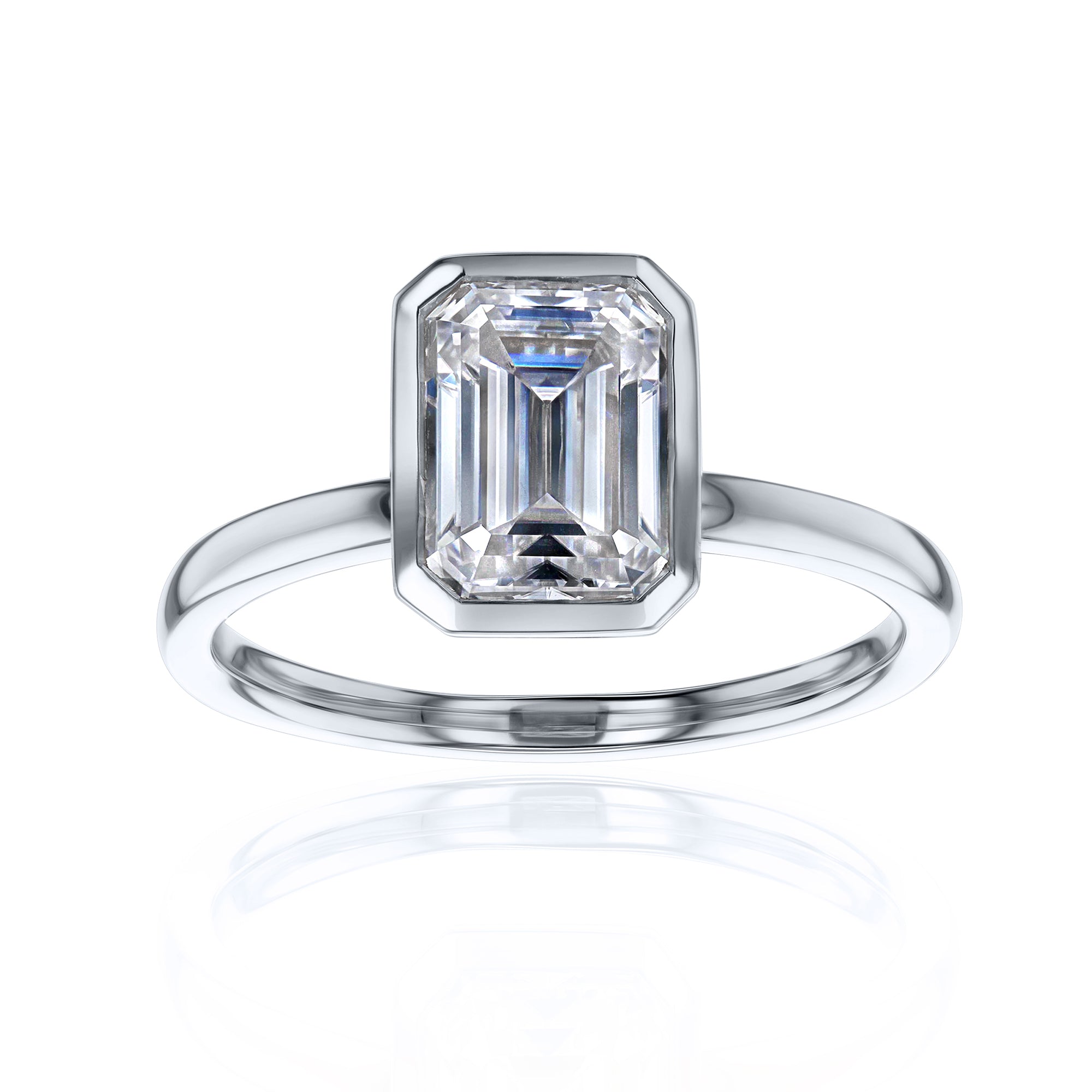 Lab Grown Diamond Solitaire Emerald Bezel Ring