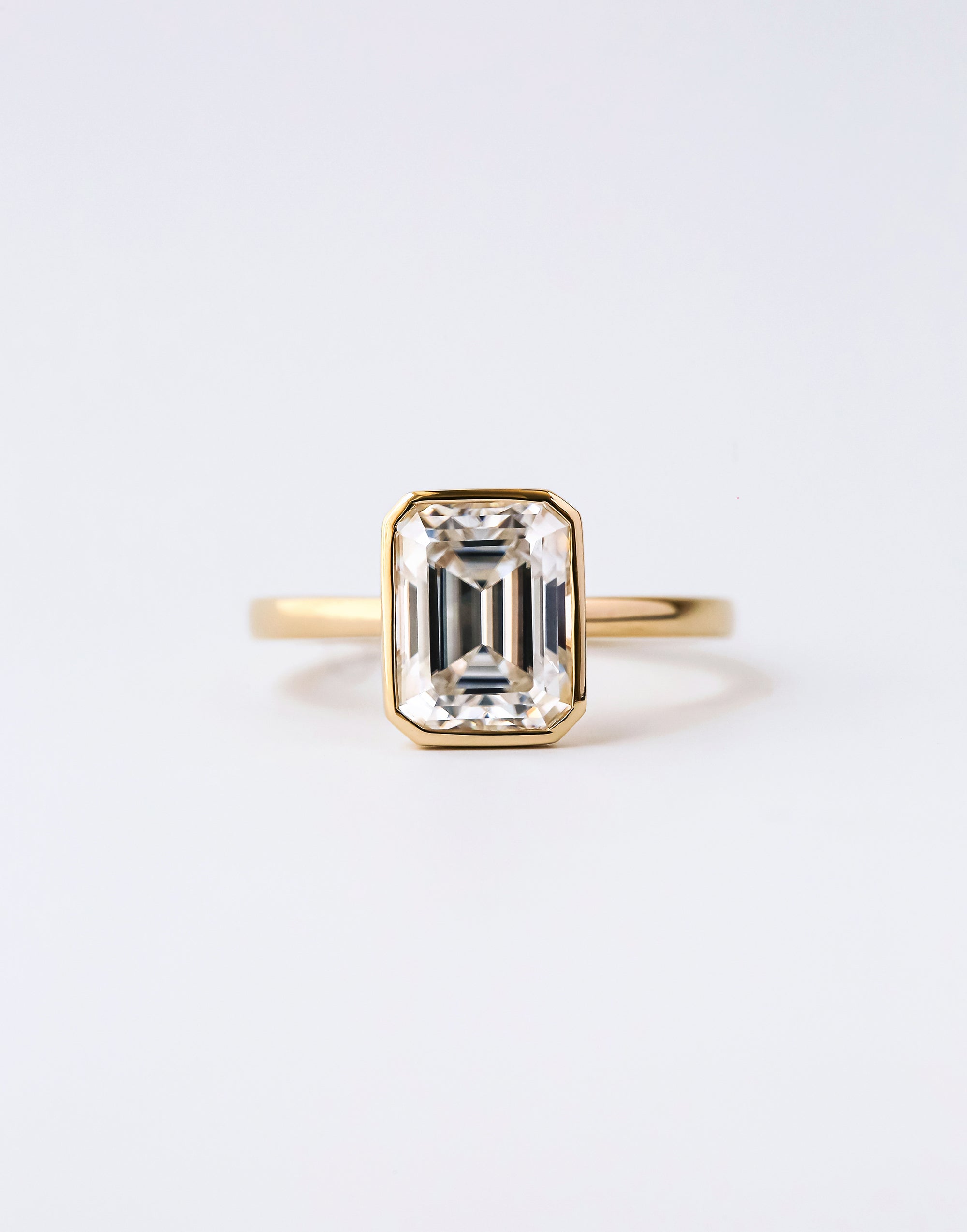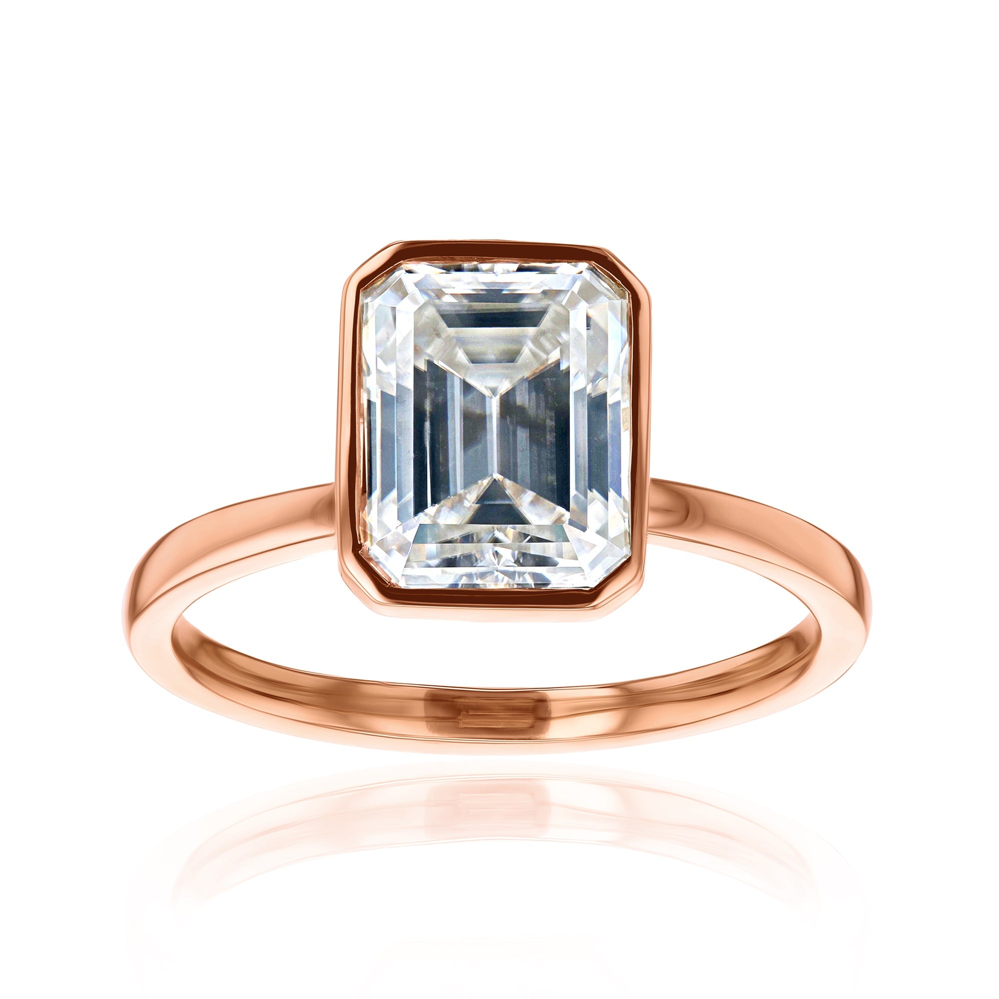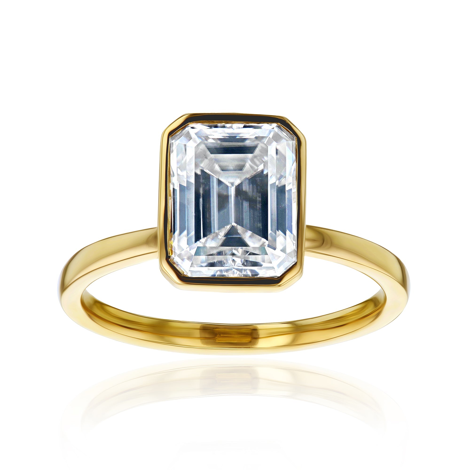 Lab Grown Diamond Solitaire Emerald Bezel Ring