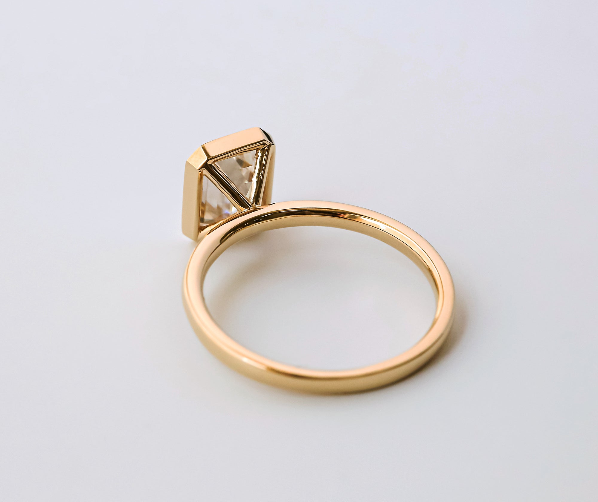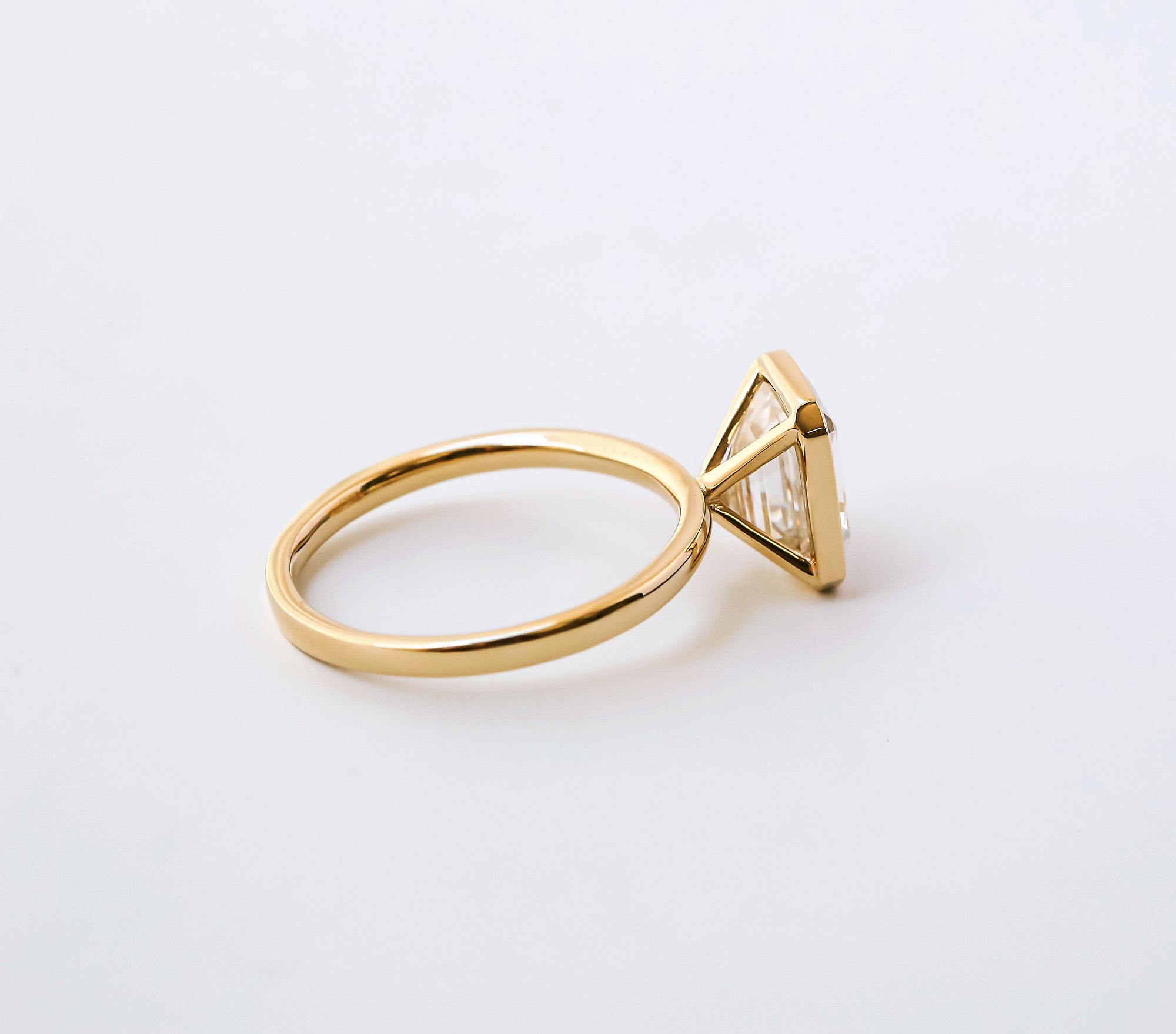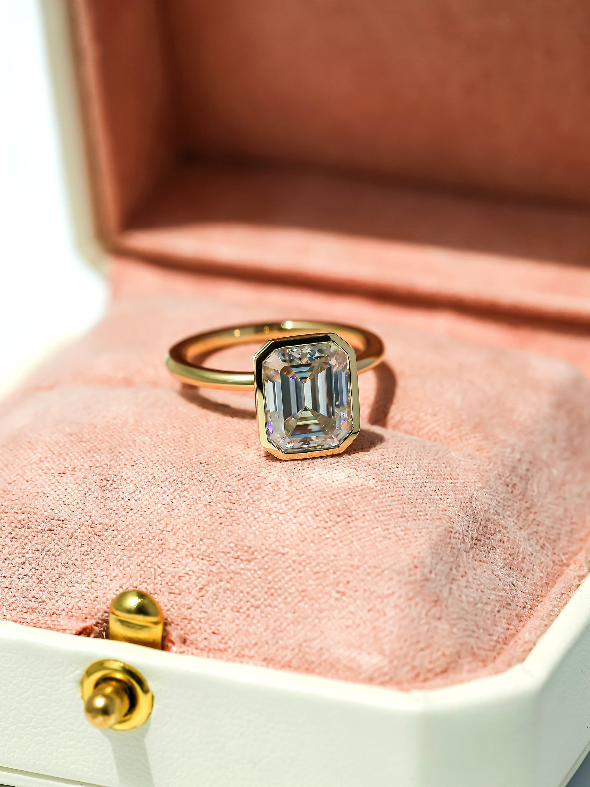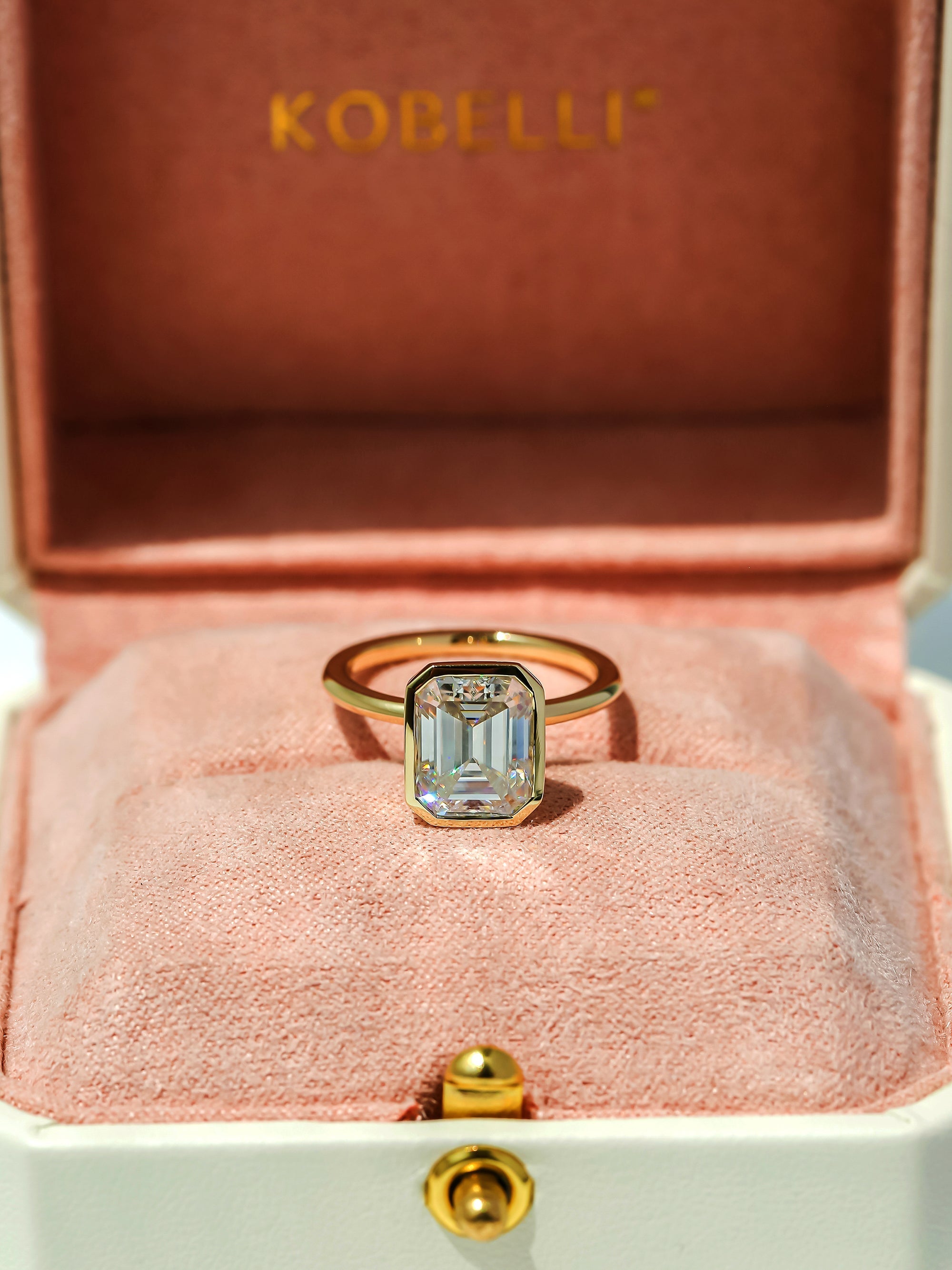 Lab Grown Diamond Solitaire Emerald Bezel Ring