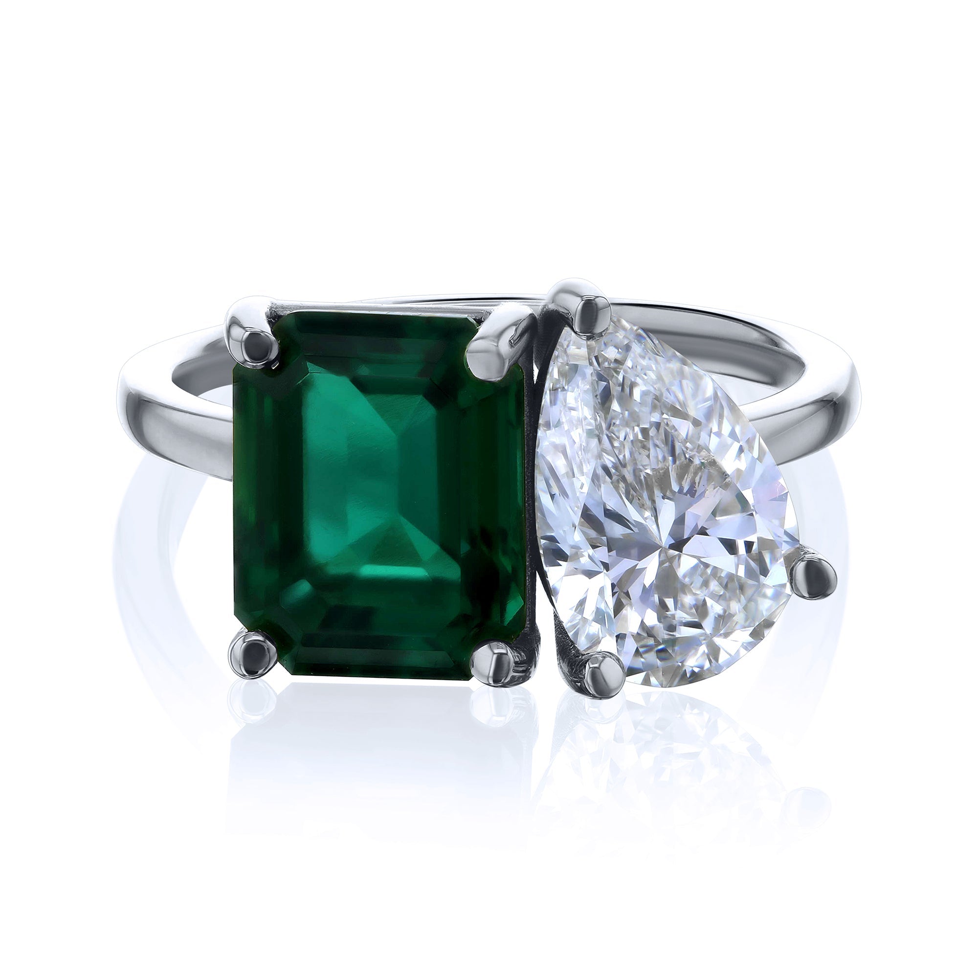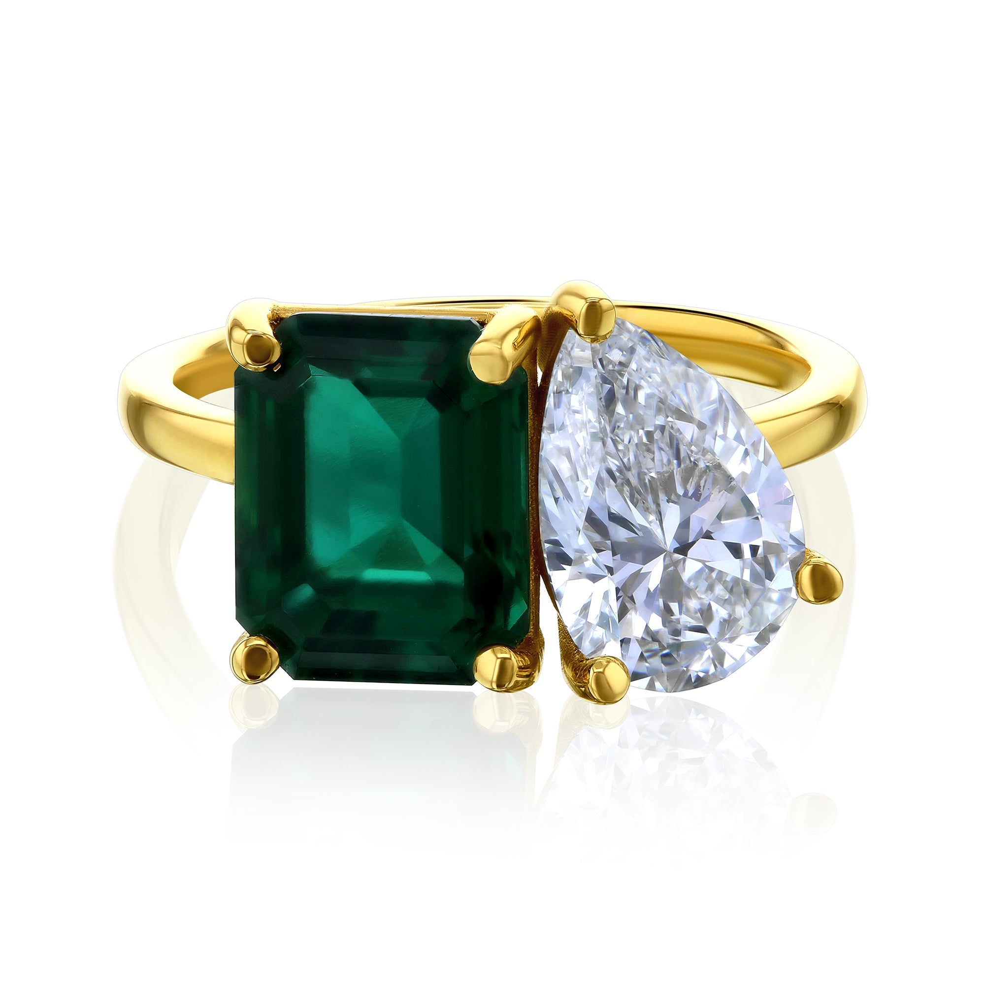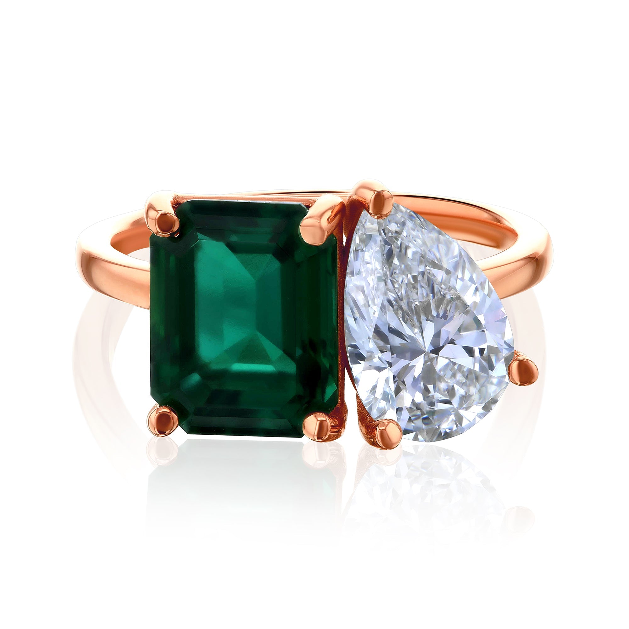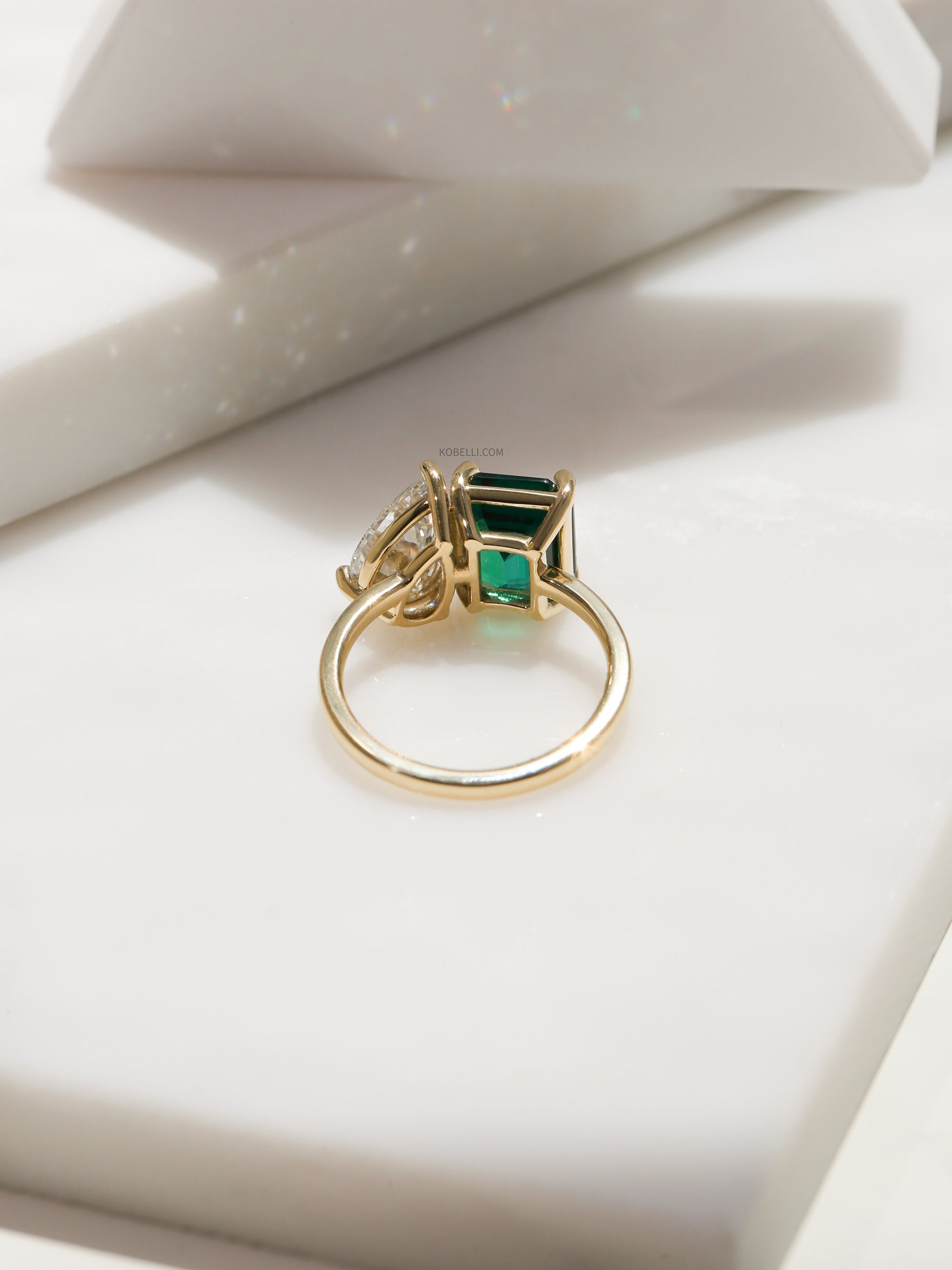 Lab Grown Diamond & Deep Green Emerald Empress Ring
