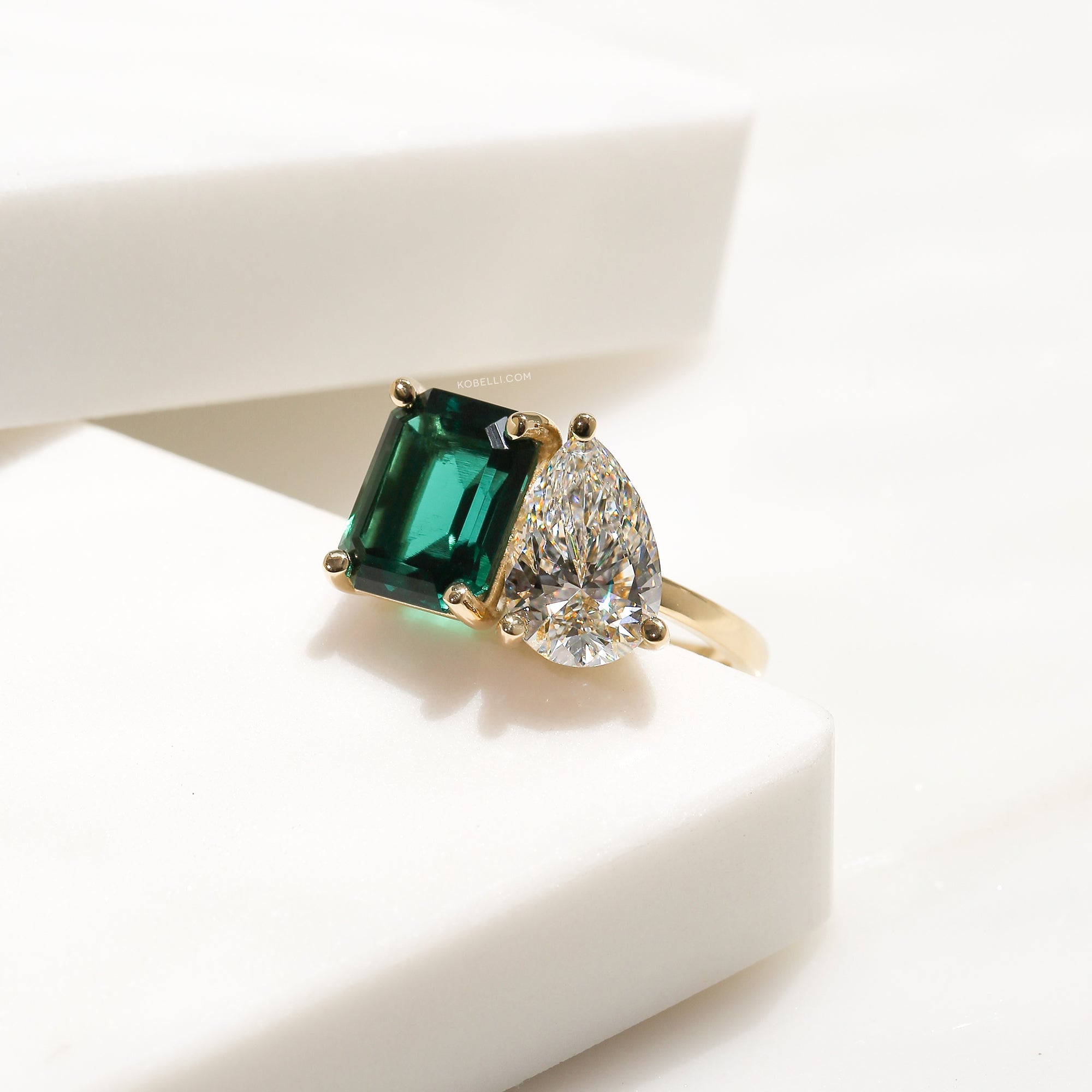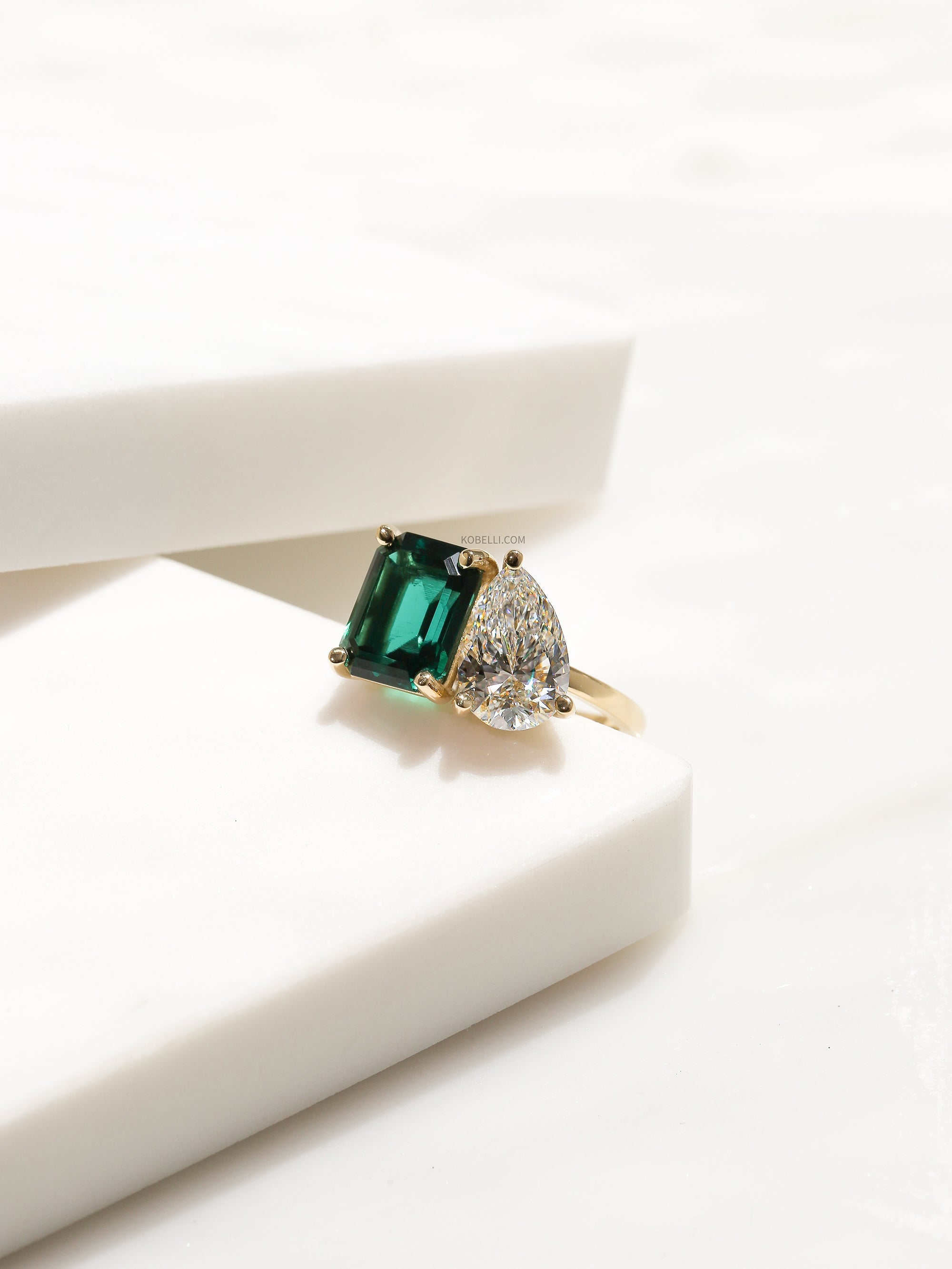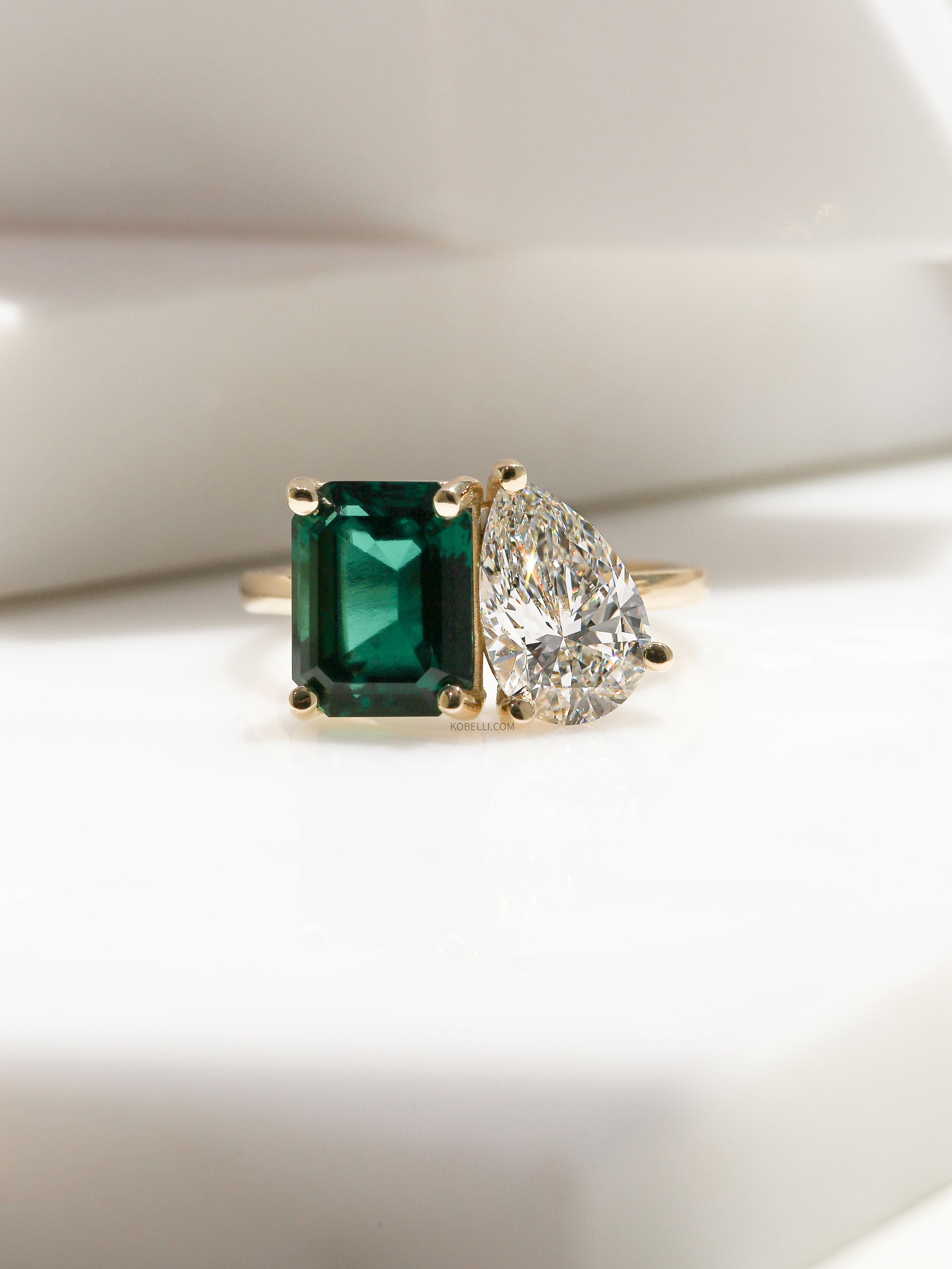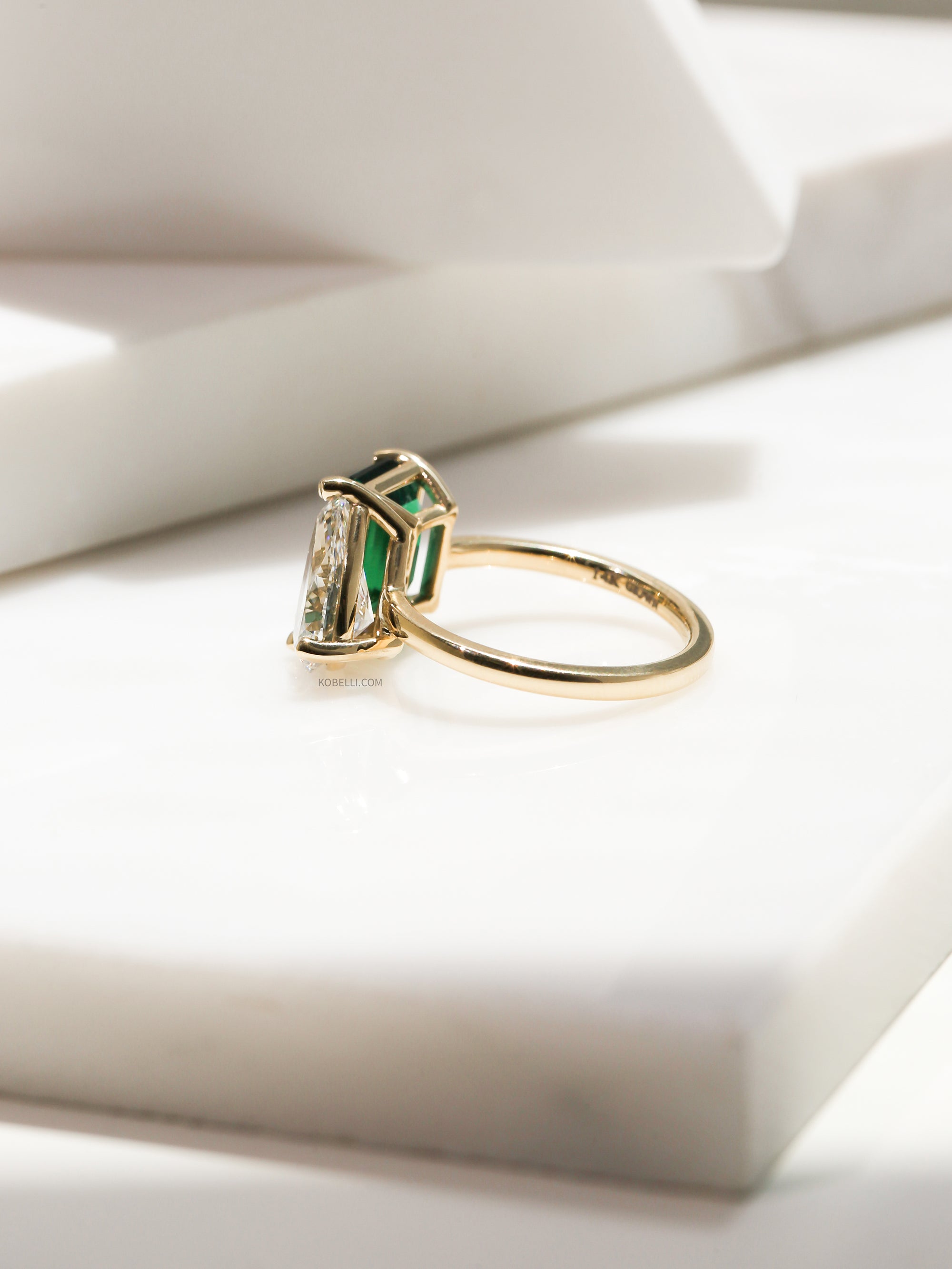Lab Grown Diamond & Deep Green Emerald Empress Ring