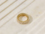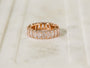 An endless stream of emerald-cut diamonds lines this solid gold ring in beautiful unison. Each diamond is cut to 5x3 mm and grown in a controlled lab setting for superior results.