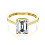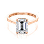 Minimal, bold, and daring, our Erin Emerald Moissanite Engagement Ring is a true beauty to behold. The 2.45-carat emerald-cut center stone has high clarity resting in four talon prongs in an elegant cathedral setting and a hidden halo that never go out of style. The metal is a 14K solid gold band that displays simplicity and charm. The gallery rail and bridge hold 32 beautiful diamond side stones, adding brilliance to this comfort-fit engagement ring.