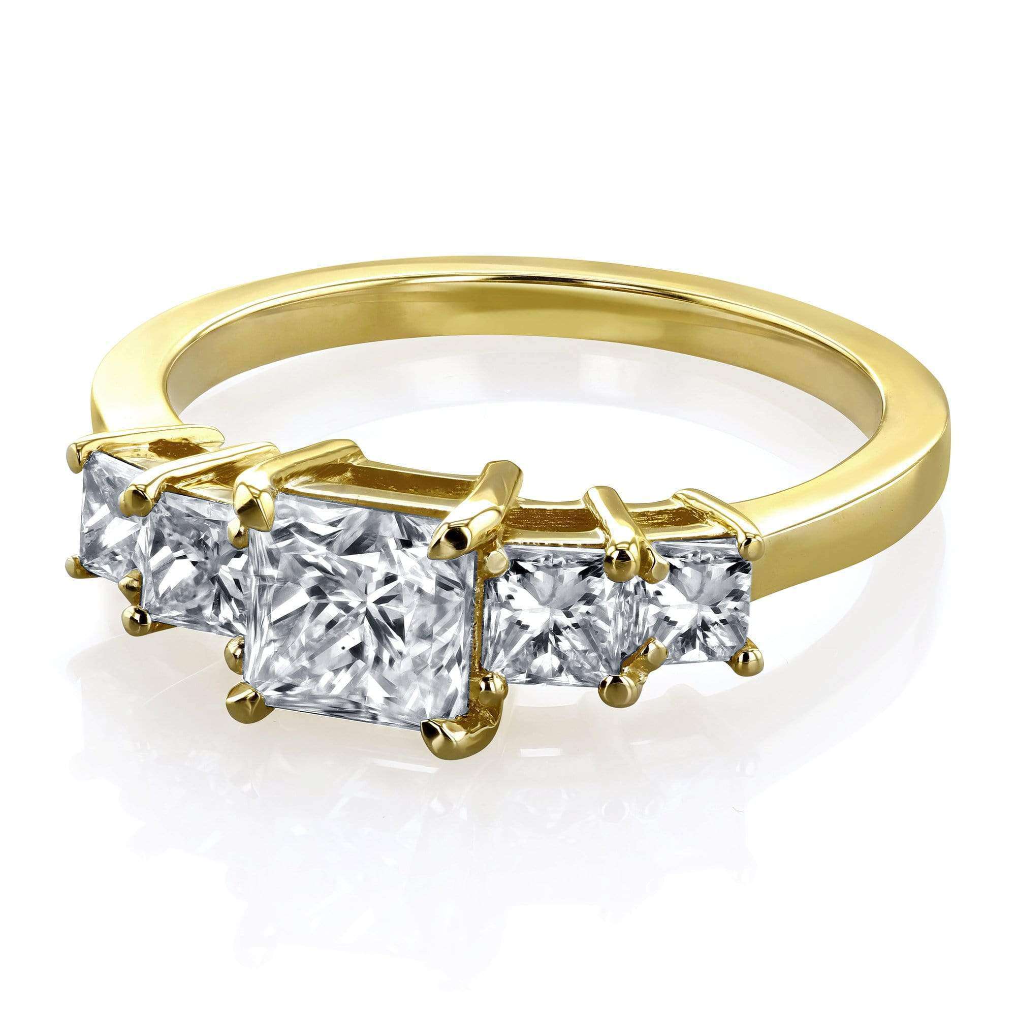 EGL Certified 14k Yellow Gold Five Stone Diamond Engagement Ring - Size 6.5